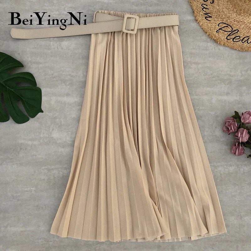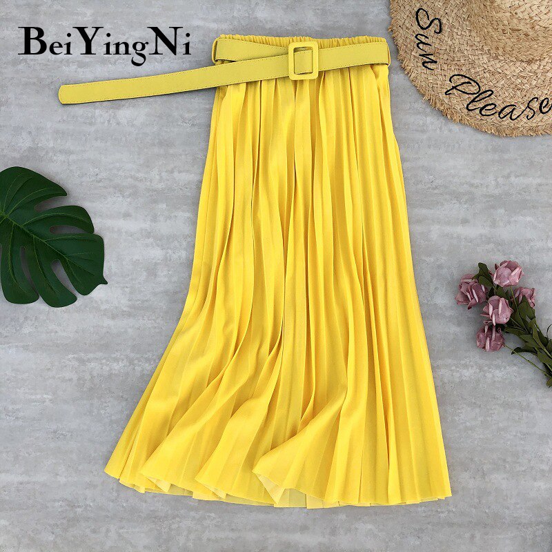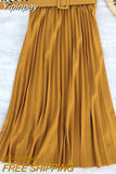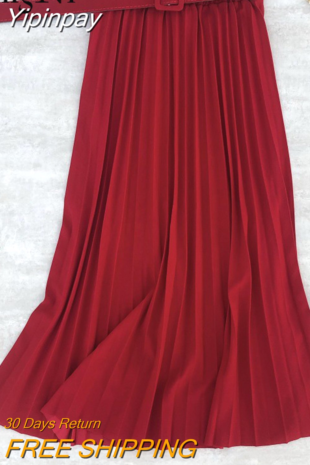 Yipinpay 2023 Autumn Summer Women Skirt Midi With Belt Pleated Female Skirts Casual Luxury Korean Faldas Ladies Saias Chic Jupe