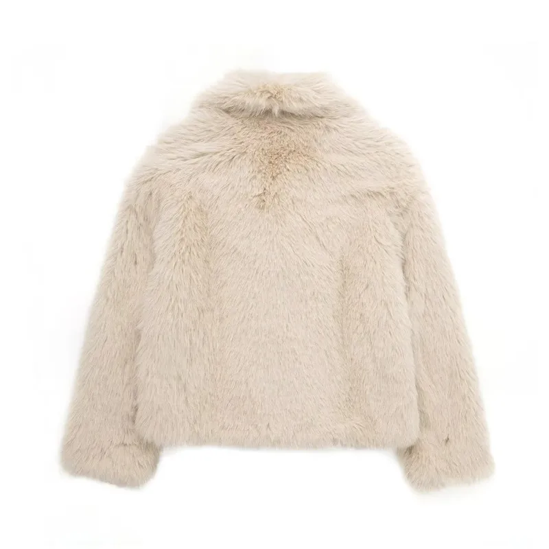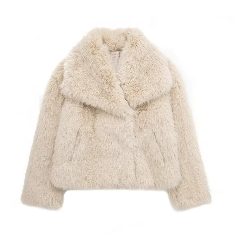 Yipinpay 2023 Faux Fur Coat Women Cropped Fluffy Jacket For Women Beige Winter Women's Cold Coat Long Sleeve Warm Heavy Jackets