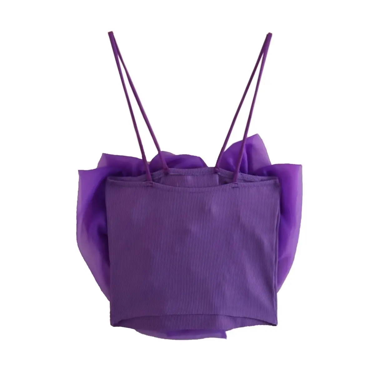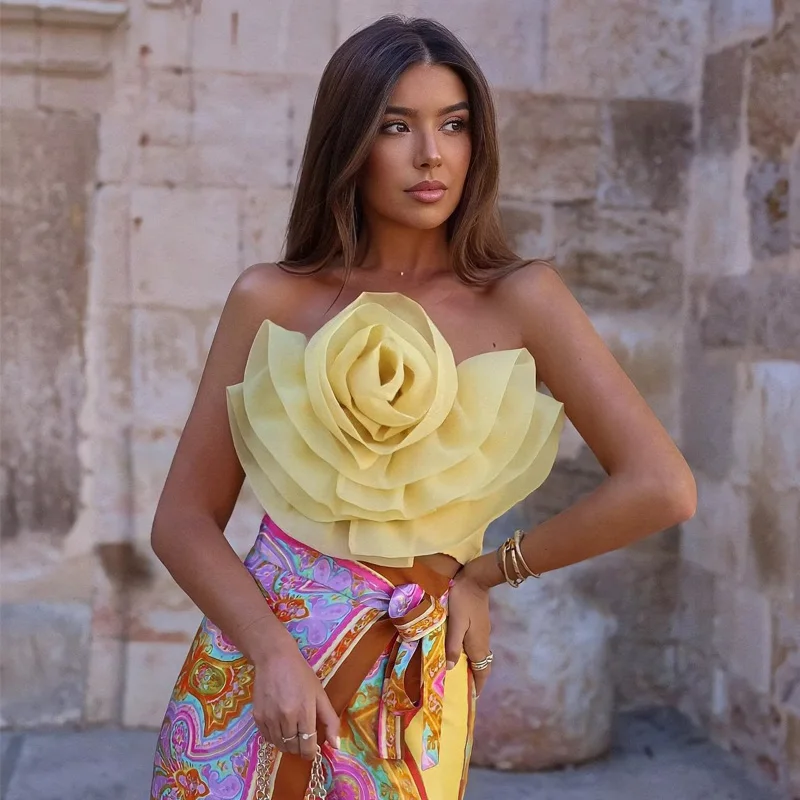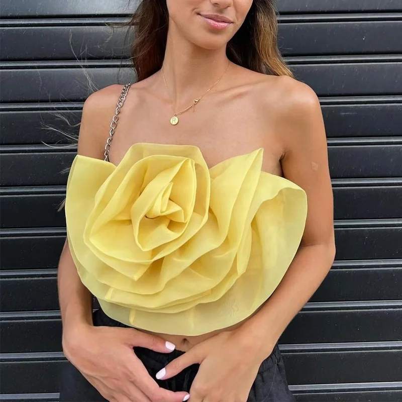 Yipinpay 2023 Flower Corset Top Female Off Shoulder Crop Tops For Women Organza Backless Summer Sexy Tops Woman Sleeveless Tank Top