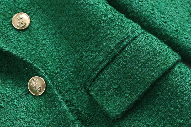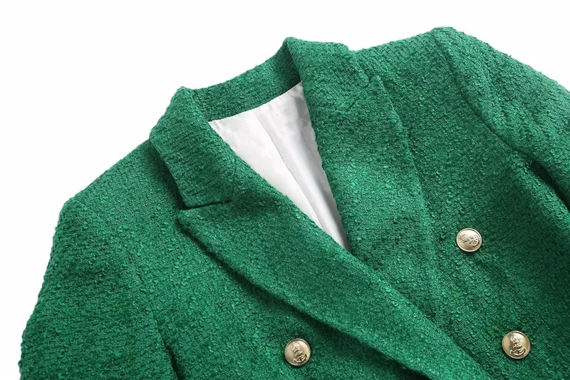Yipinpay 2023 Green Long Blazer Woman Tweed Blazer Women Double Breasted Elegant Womens Jackets Long Sleeve Women's Spring Jacket