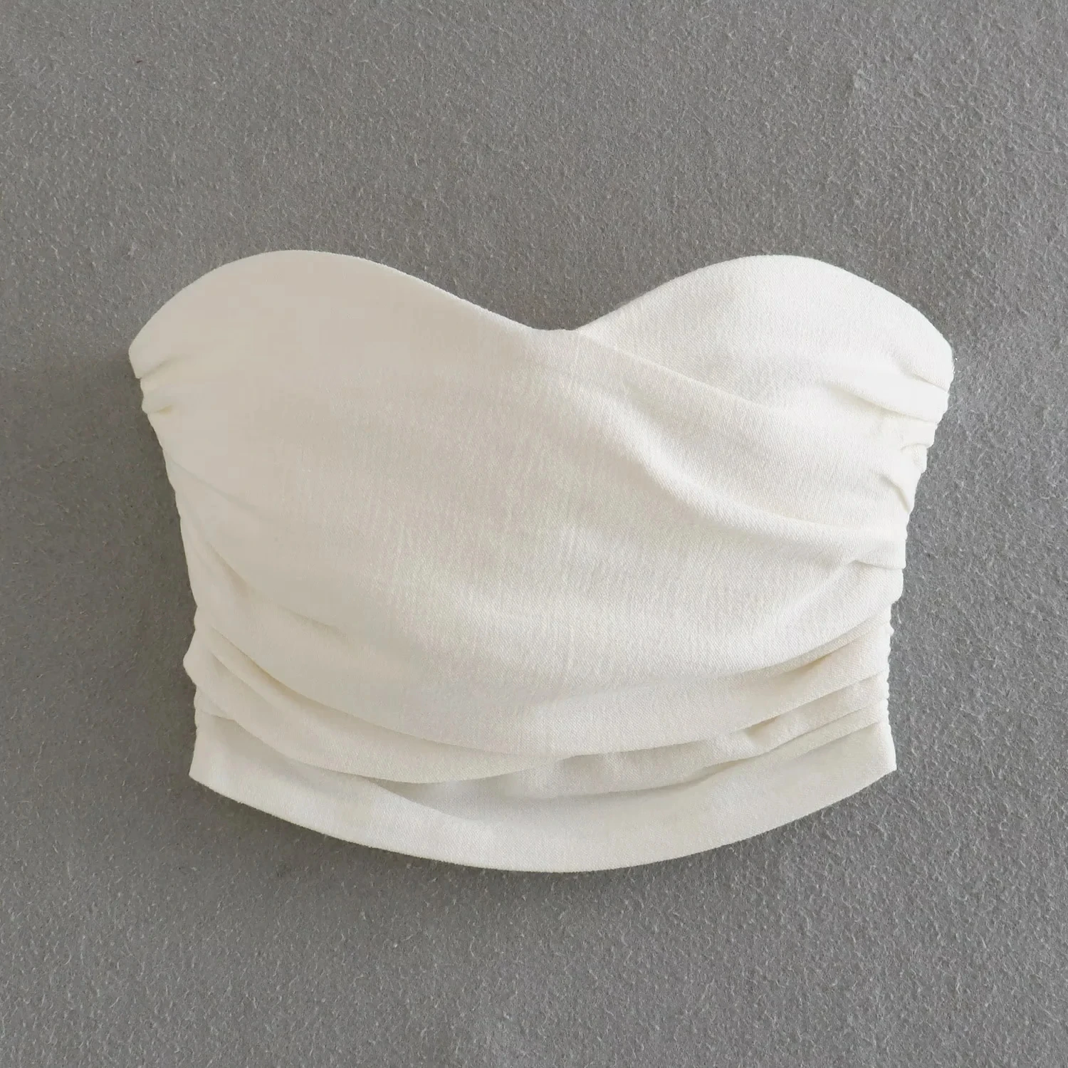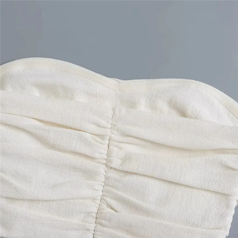 Yipinpay 2023 Off Shoulder Corset Tops For Women Pleated Crop Top Female Backless Sleeveless Bustier Top Woman Sexy Summer Tops