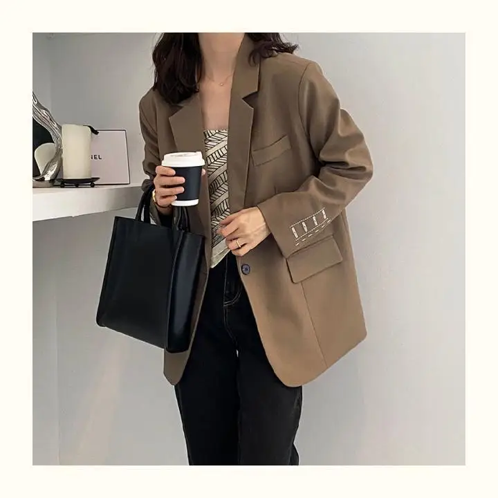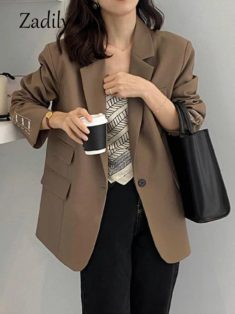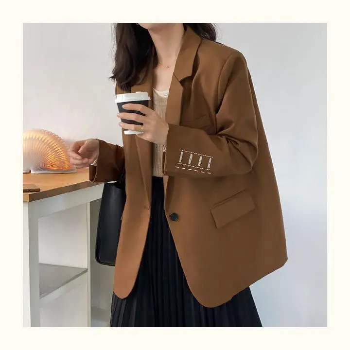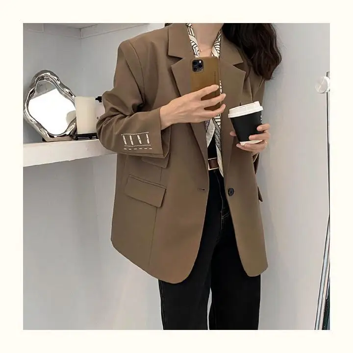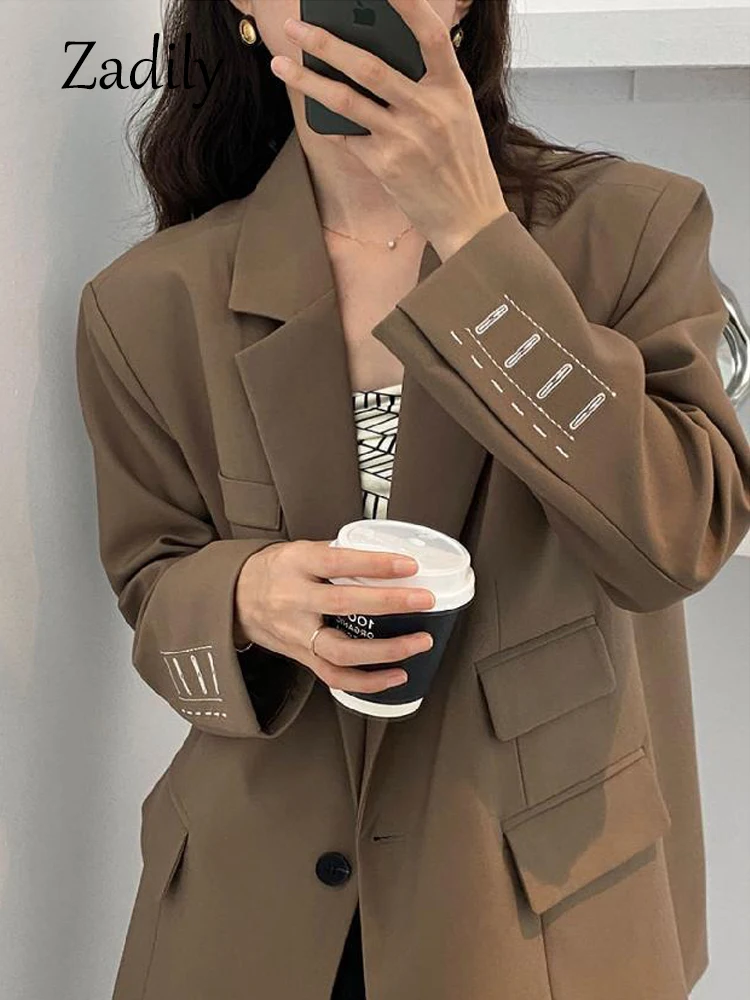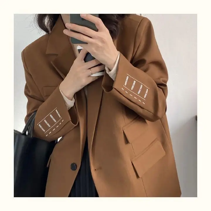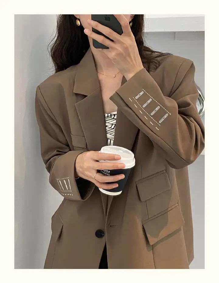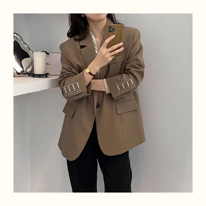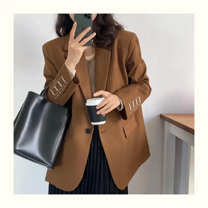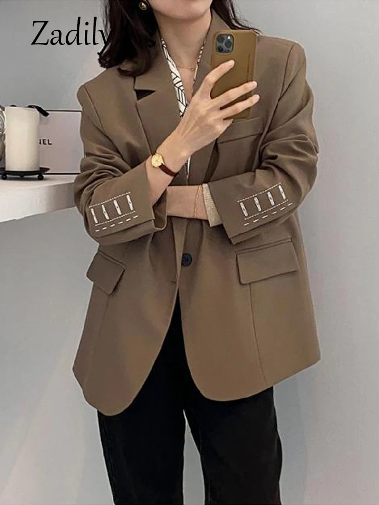 Yipinpay 2023 Autumn Long Sleeve Embroidery Women Blazer Office Lady Solid Suit Blazers Work Winter Female Loose Clothing Coat