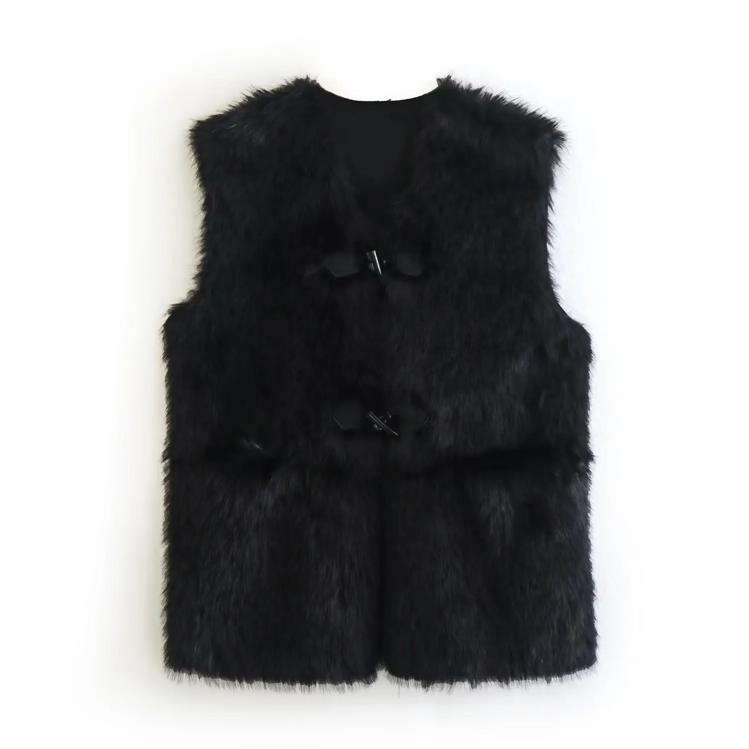 Yipinpay 2023 Winter Women Faux Fur-effect Vest Thicked Warm Single Breasted Sleeveless Jacket Coat Ladies Solid Vest Outwear Tops