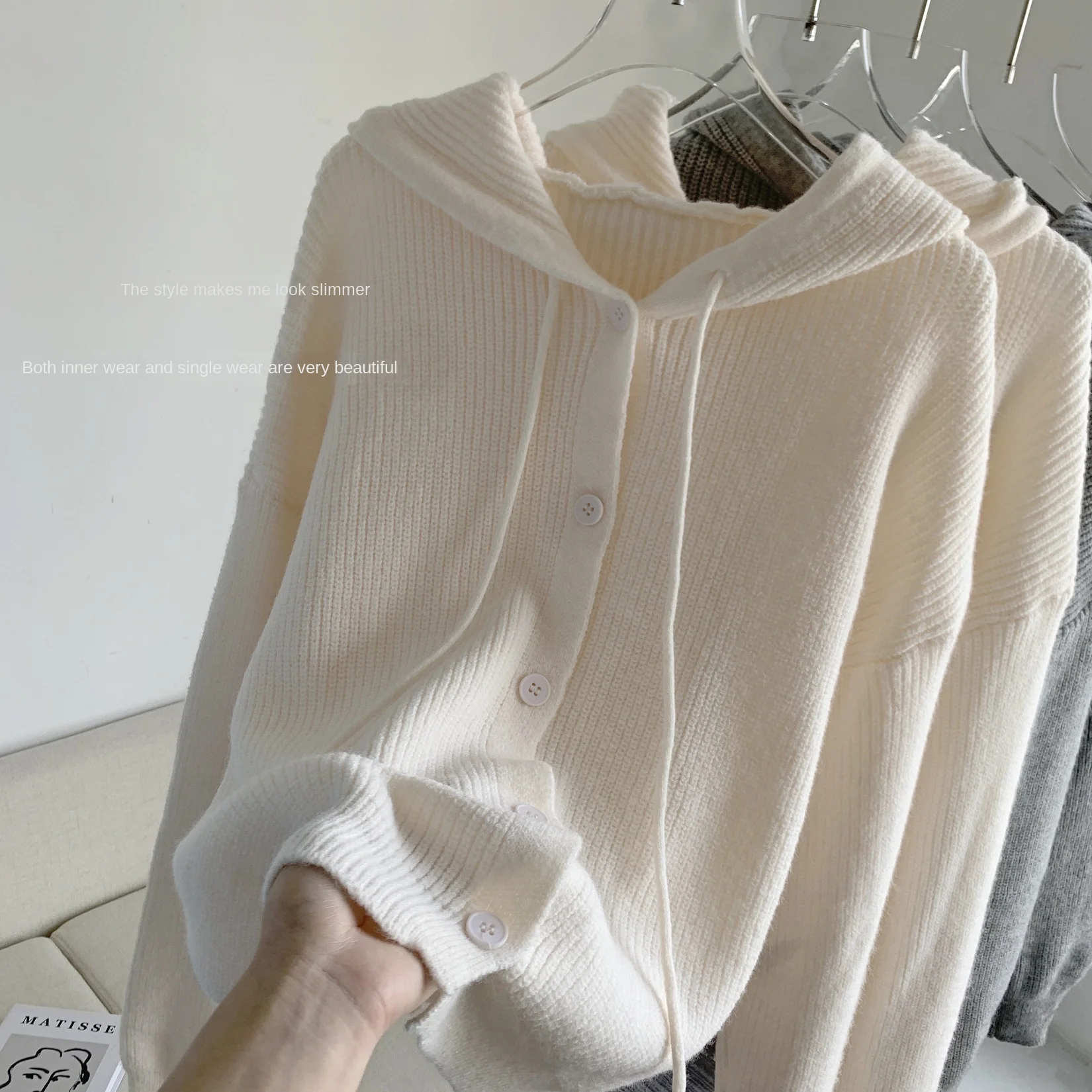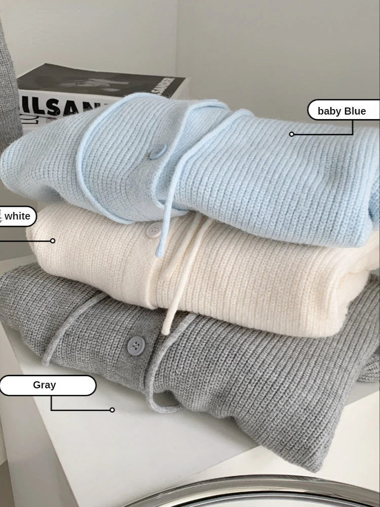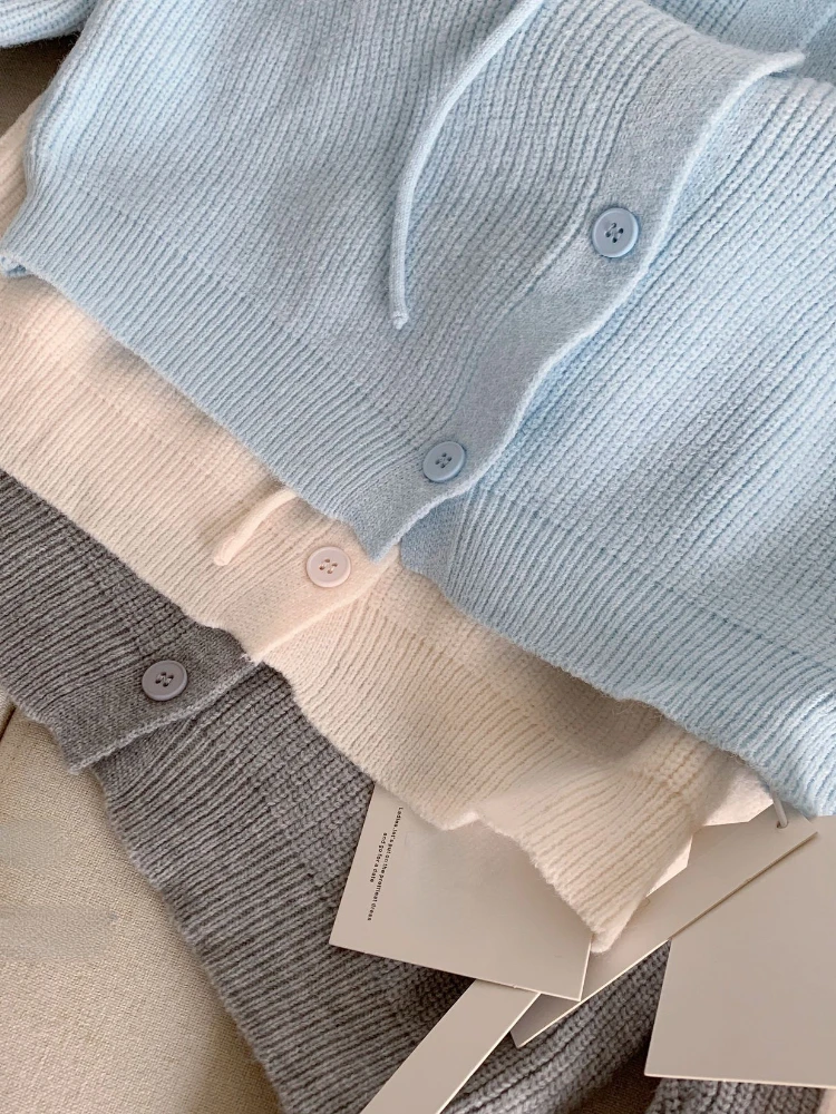 Yipinpay Autumer Winter Baggy Knitted Cardigan Long Sleeve Hoodies Femeal Sweater Coat Soft Casual Women Korean Light Color Clothing