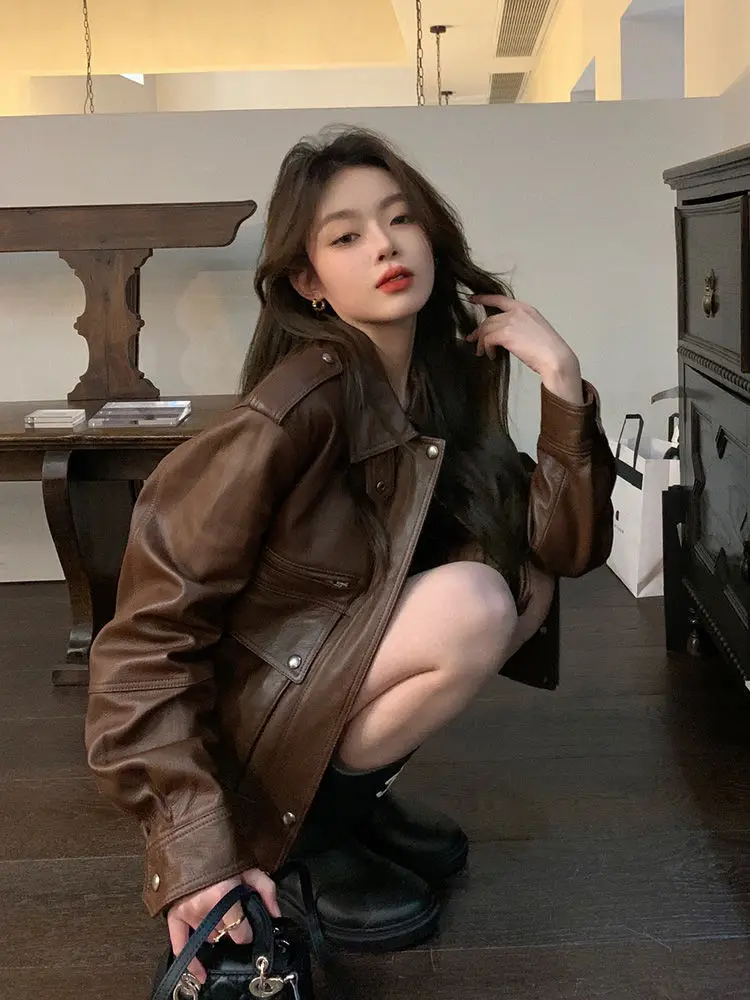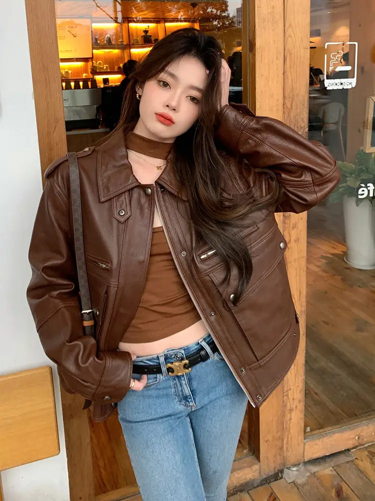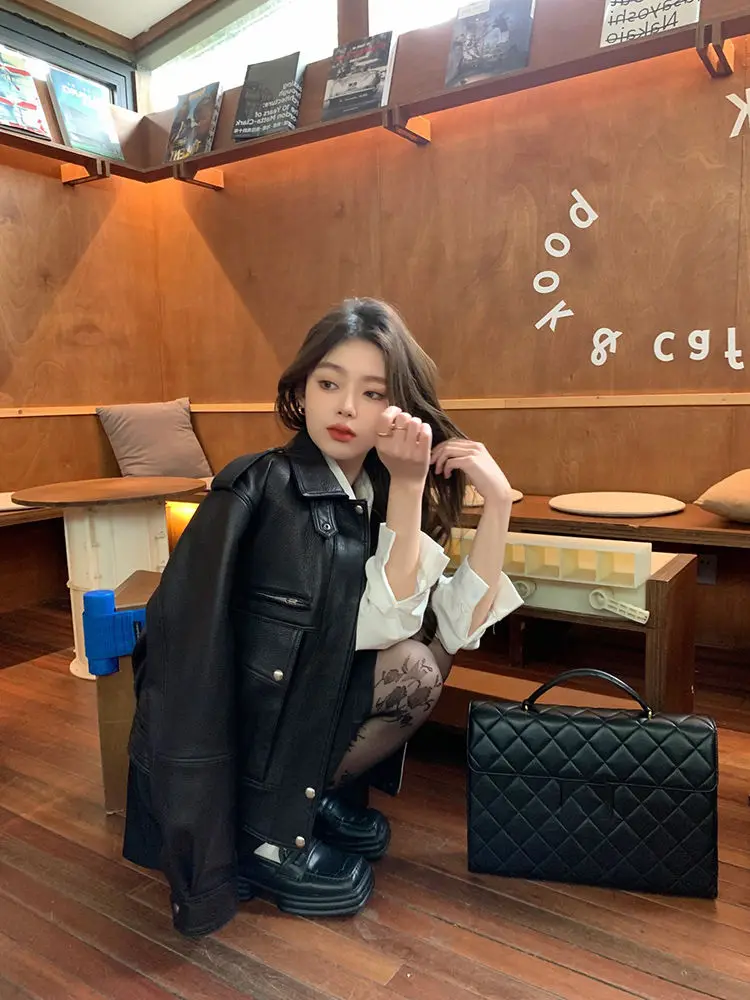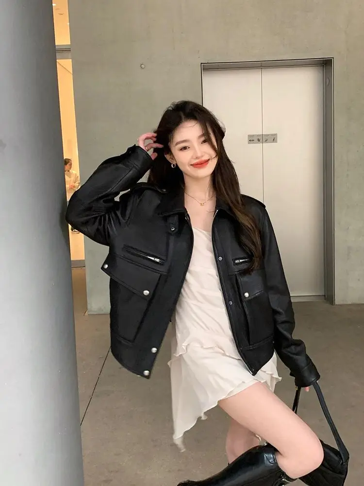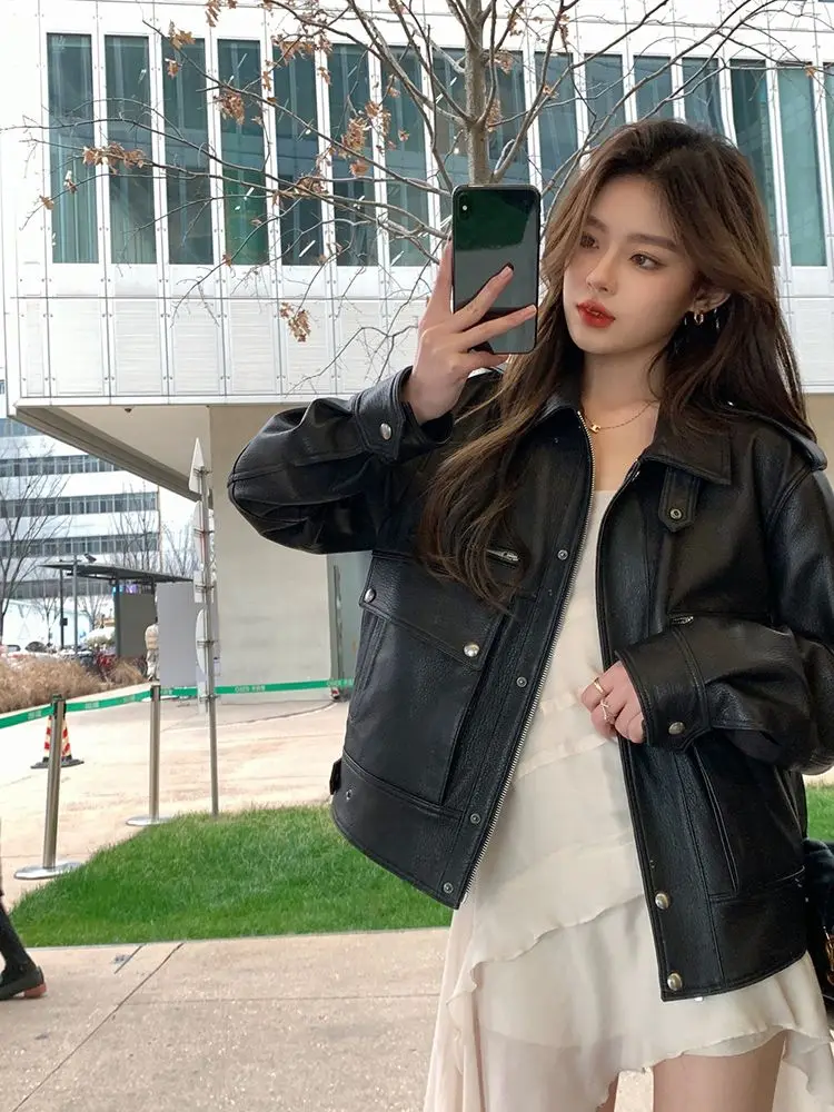 Yipinpay Black Leather Jacket Women Punk Streetwear Biker Zipper Leather Coat Female Winter High Street Faux Leather Jacket 2023