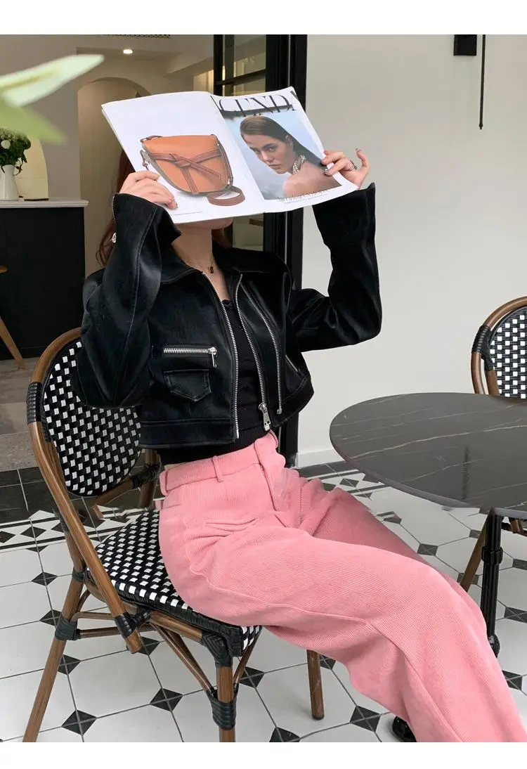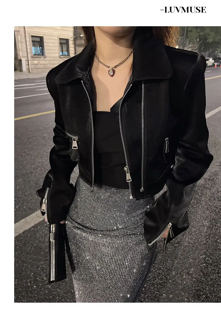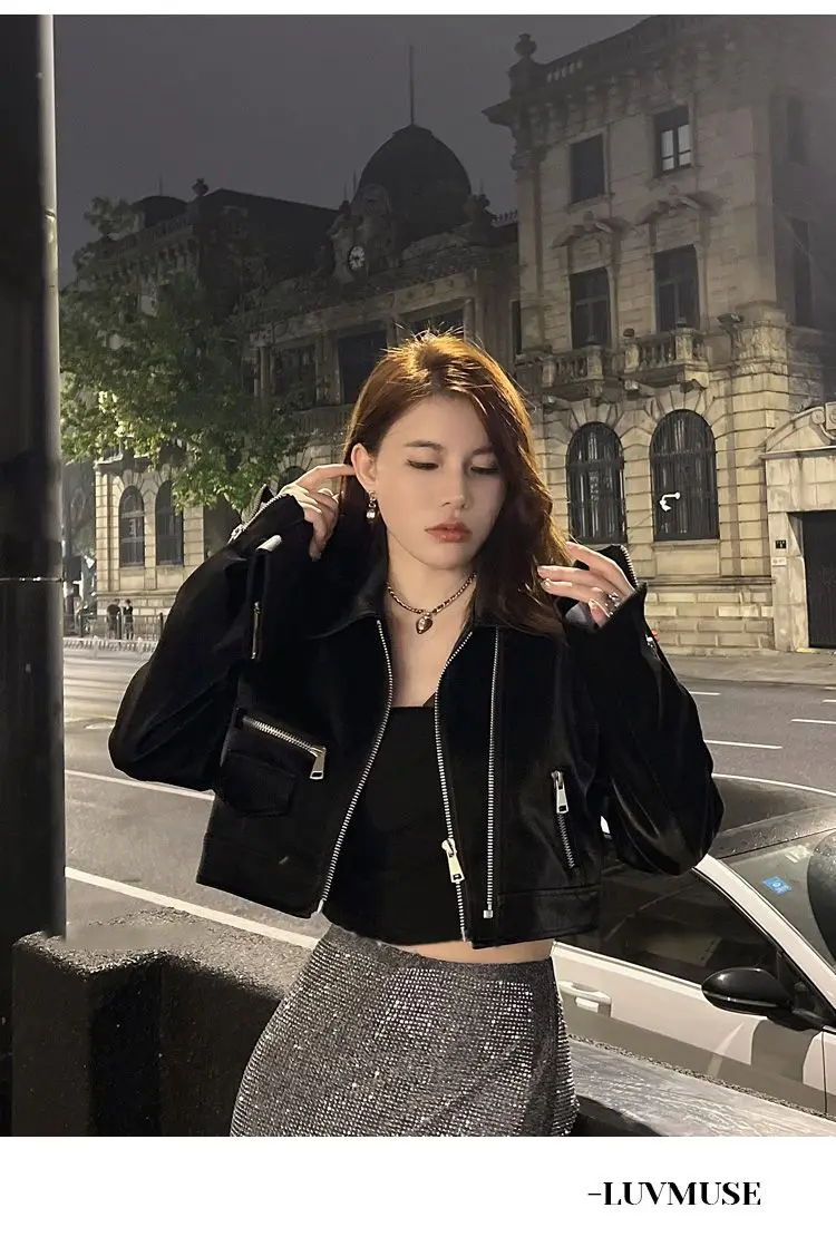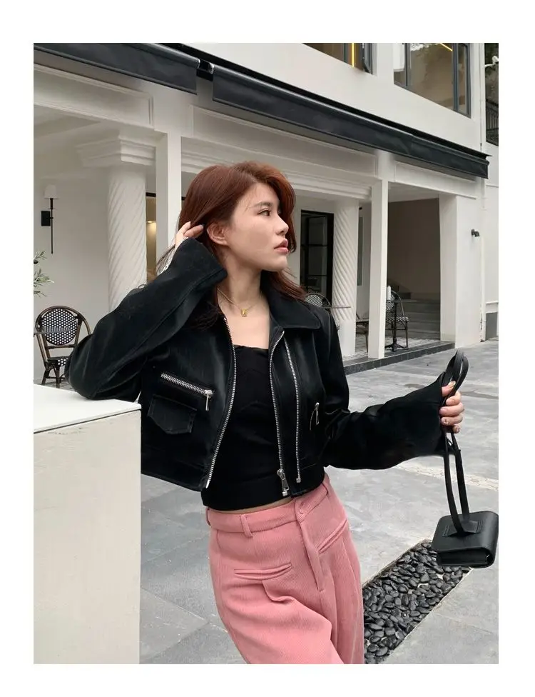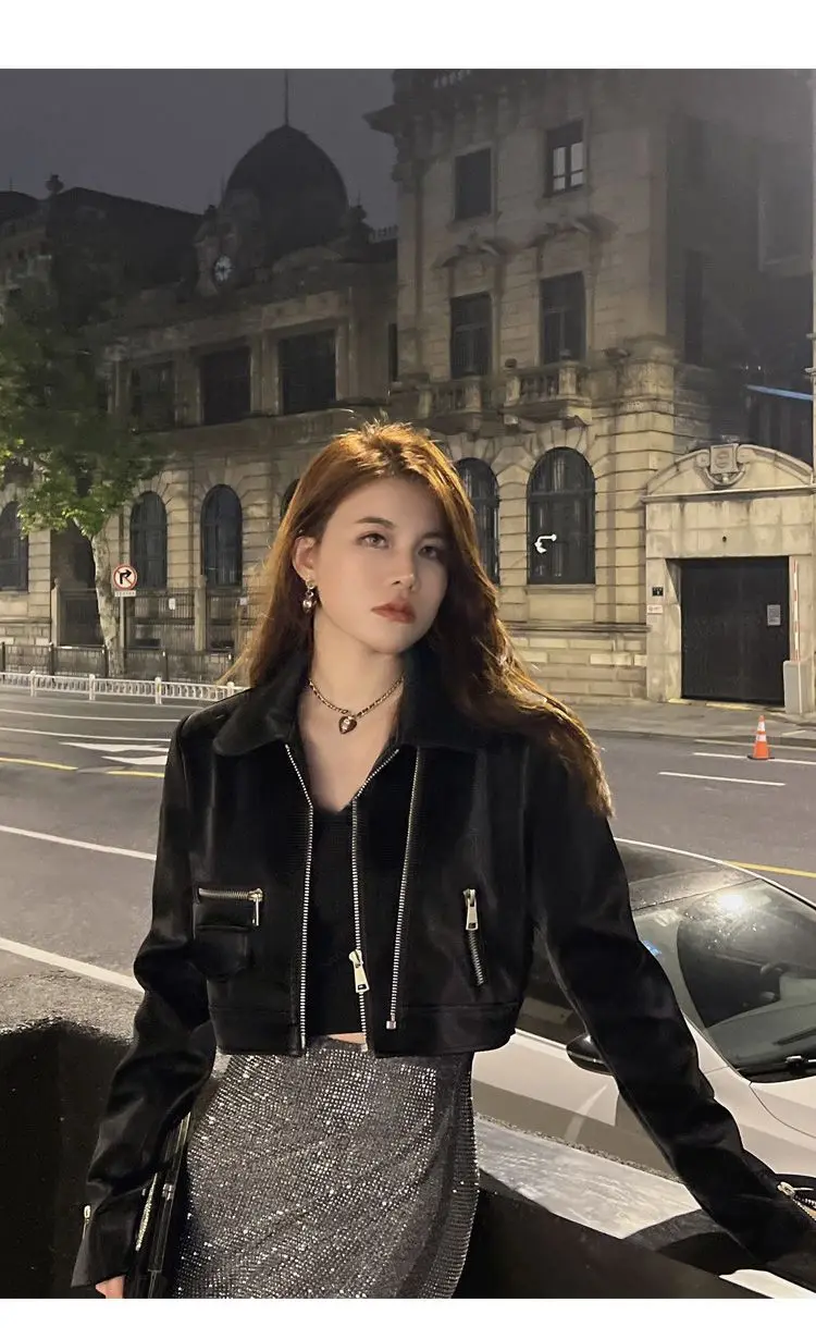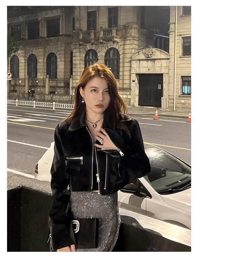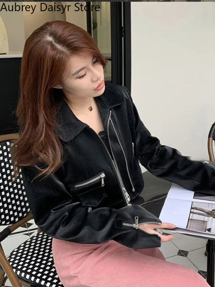 Yipinpay Cropped Leather Jacket Women Streetwear Moto Biker Zipper Leather Jacket Punk Winter Irregular Faux Fur Aviator Coat New
