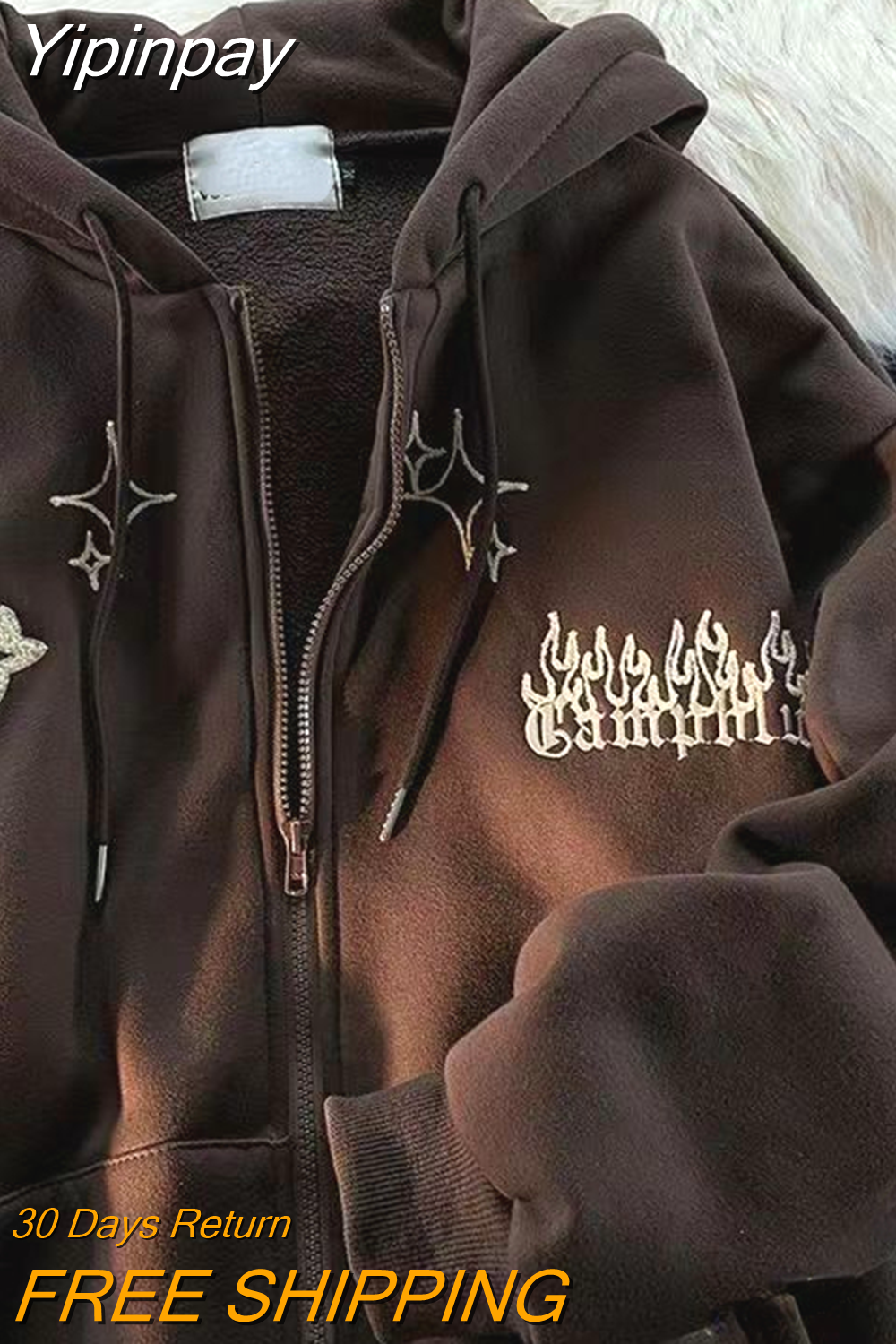 Yipinpay Embroidery Hoodies Women Autumn Harajuku Hip Hop Jacket Zip Up Hoodie Y2K Street Loose Casual Grunge Sweatshirt Overcoat