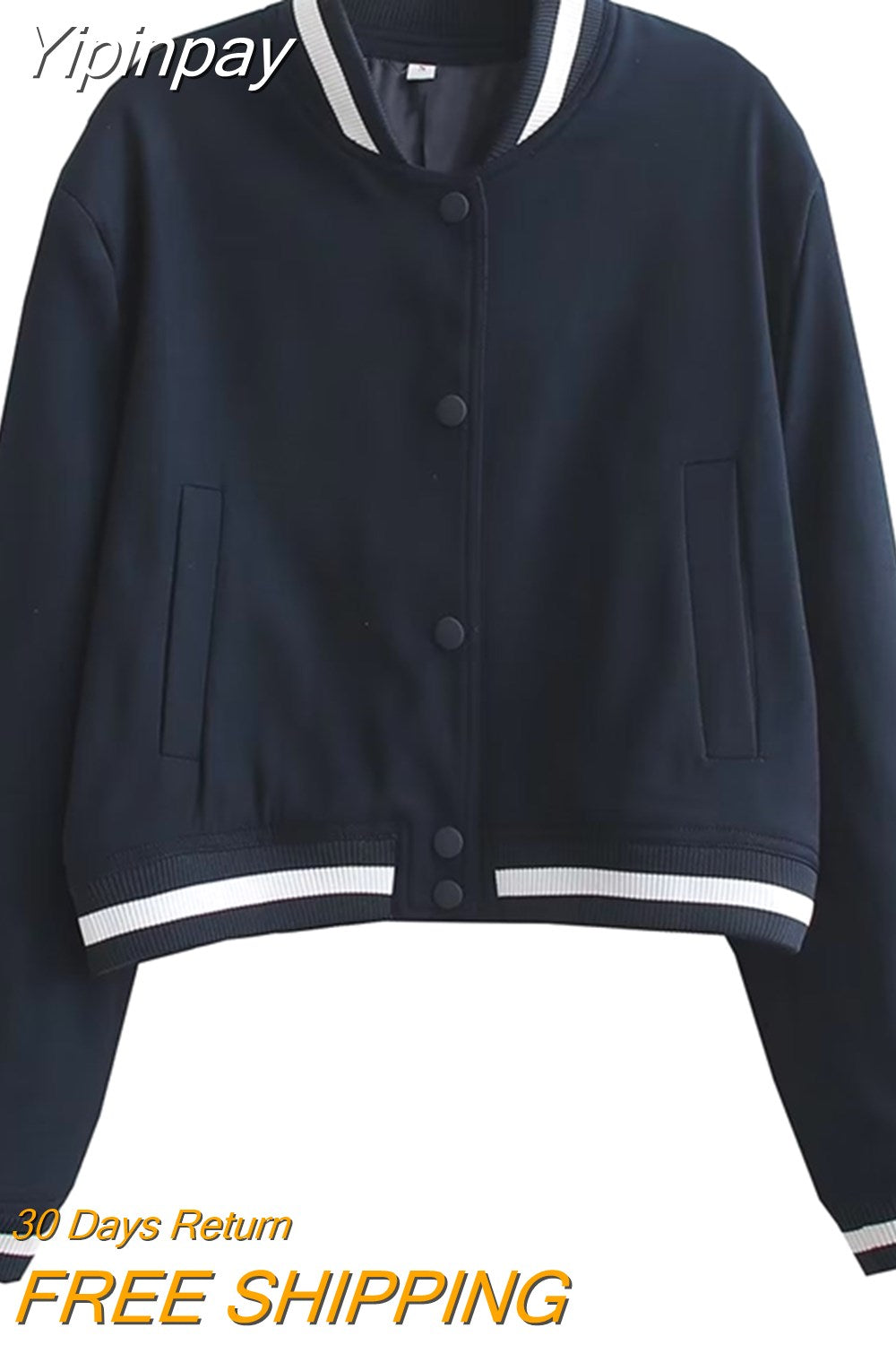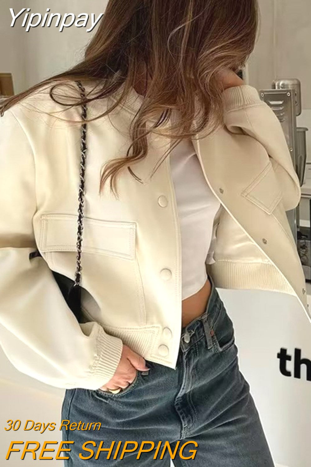 Yipinpay Fashion Woman Bomber Jackets for Women 2023 Spring Autumn Female Long Sleeve Coats Ladies Big Pockets Jacket New Outerwear