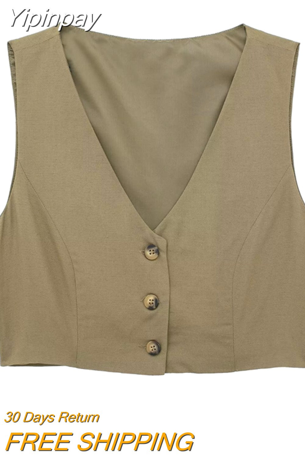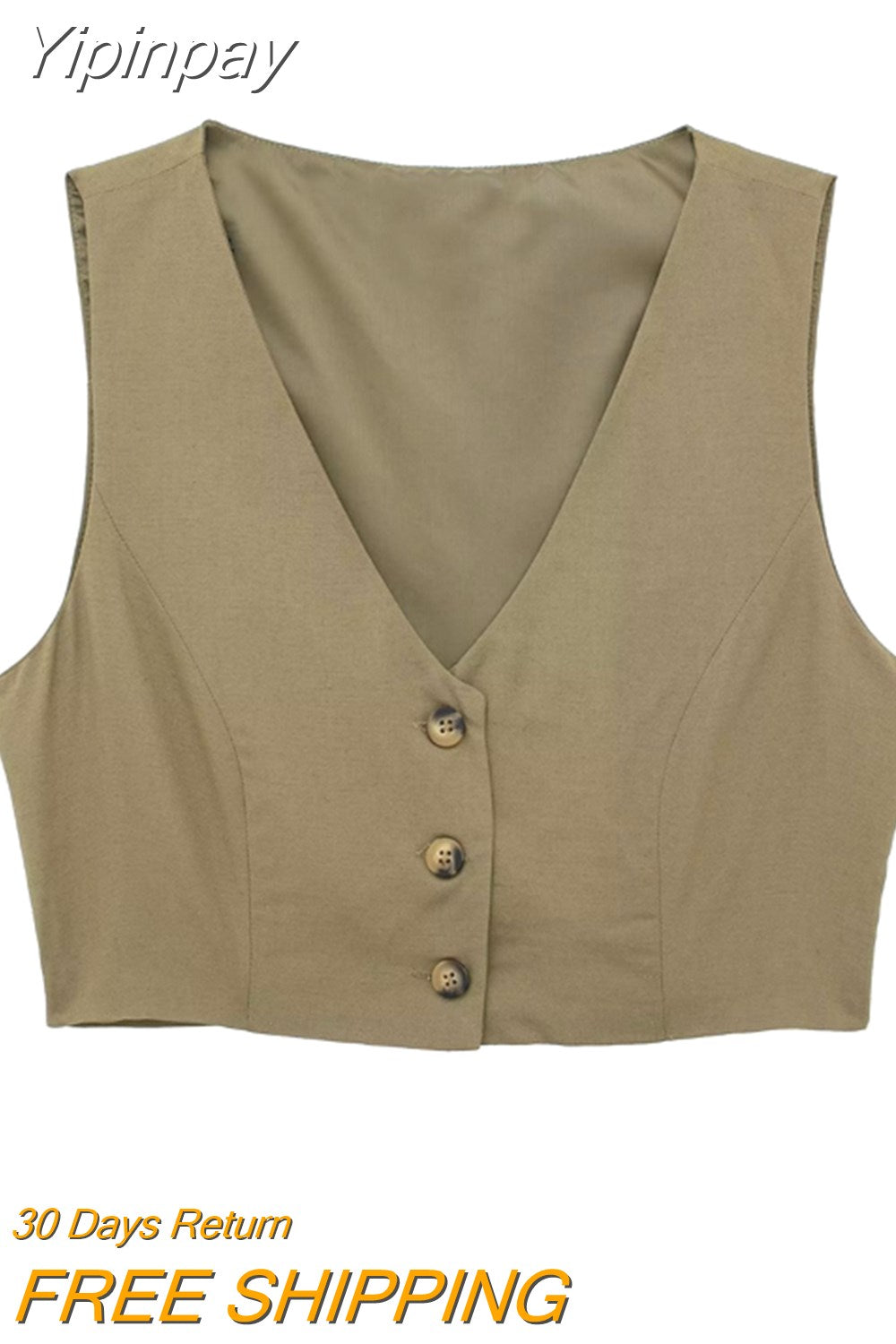 Yipinpay Fashion Women's Vest 2023 Summer V-Neck Vests for Women Female Elegant Chic Single-breasted Casual Waistcoat Tops New In