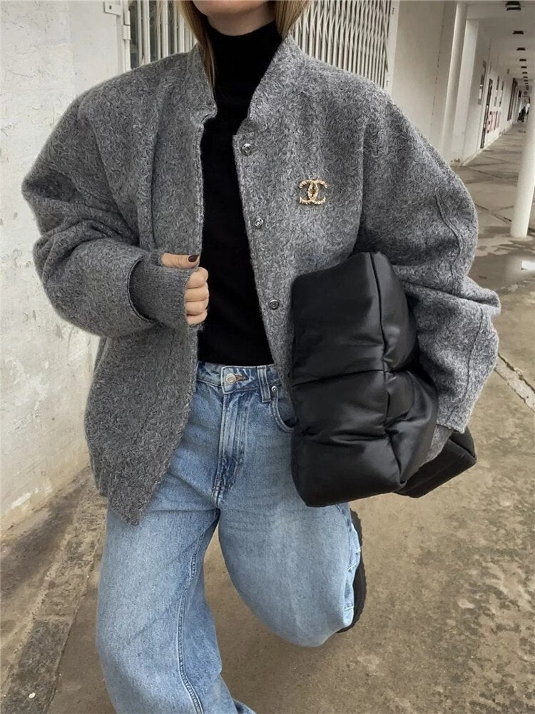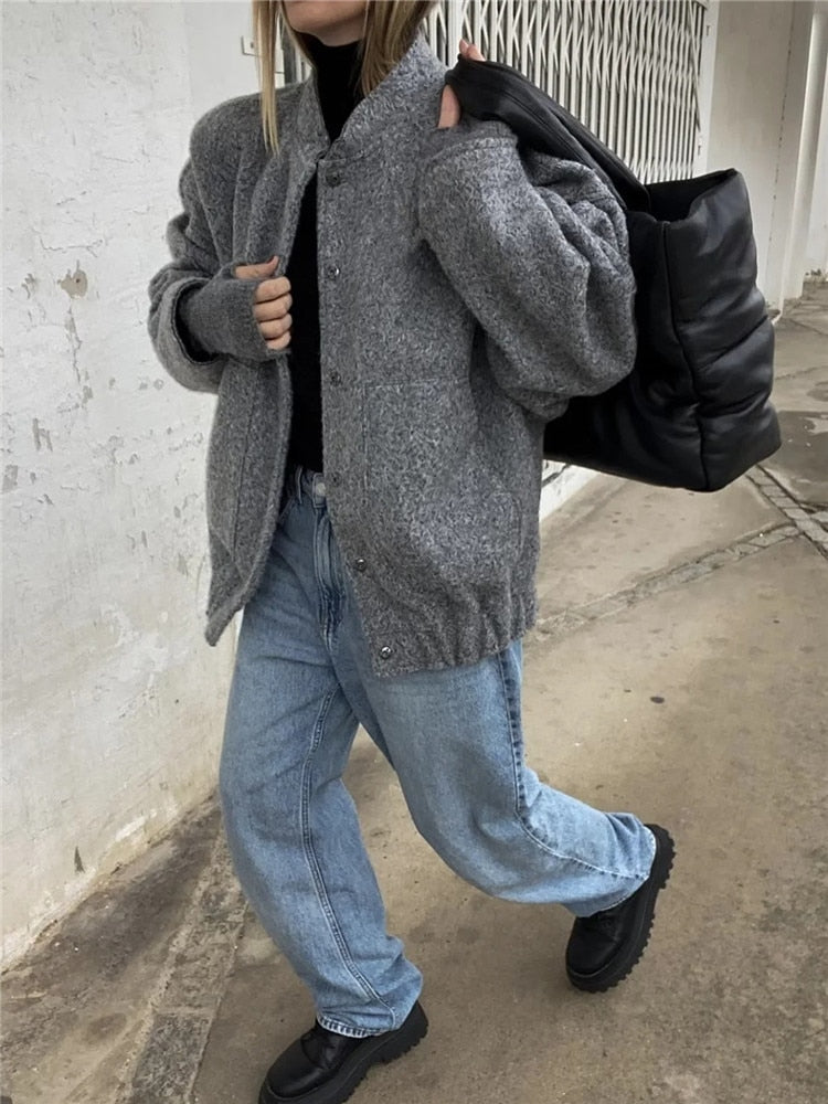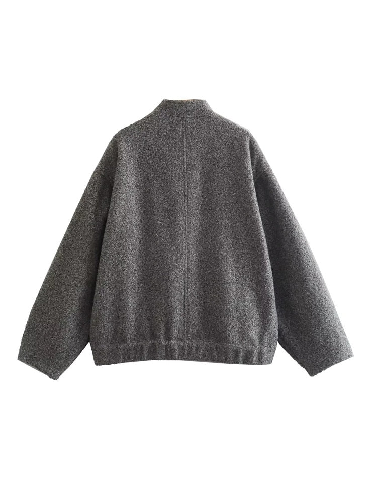 Yipinpay Grey Bomber Jacket Woman Warm Winter Coat For Women Oversize Baseball Jacket Fashion Streetwear Long Sleeve New In Jackets
