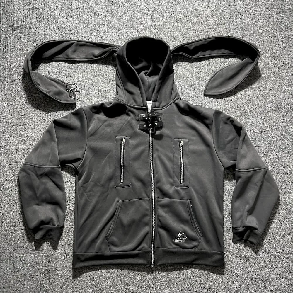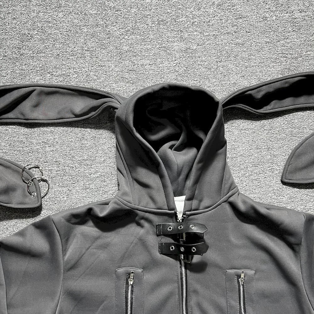 Yipinpay Hoodies Rabbit Ear Hooded Coat Women Top Autumn/Winter New Retro Spicy Girl Mid Length Oversized Sweatshirt Women Clothing