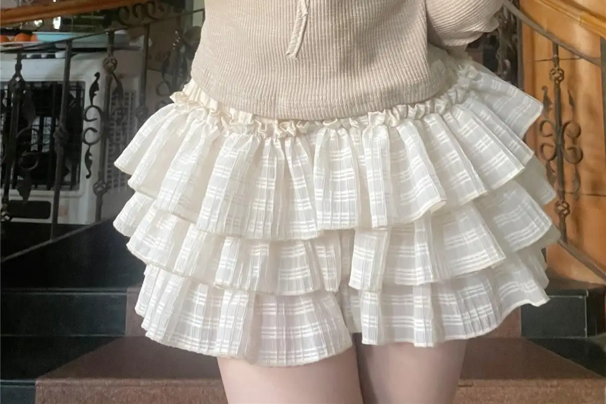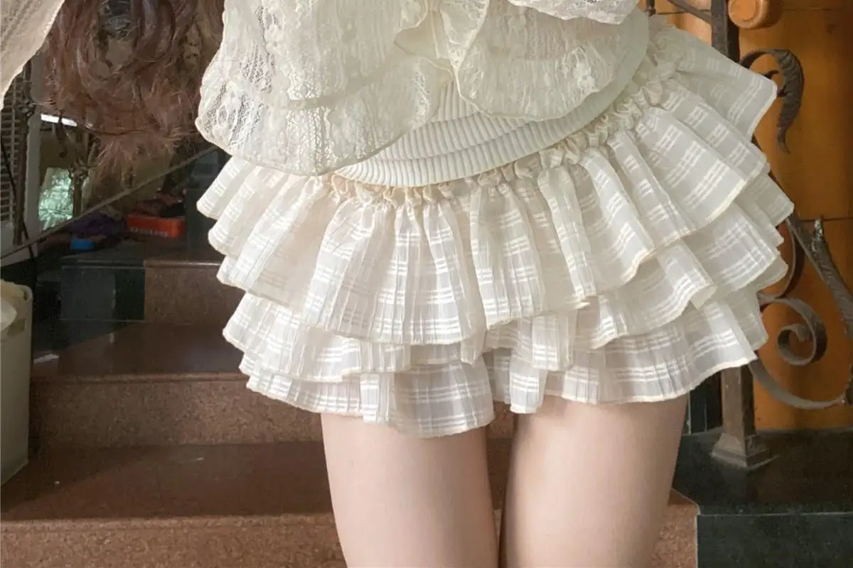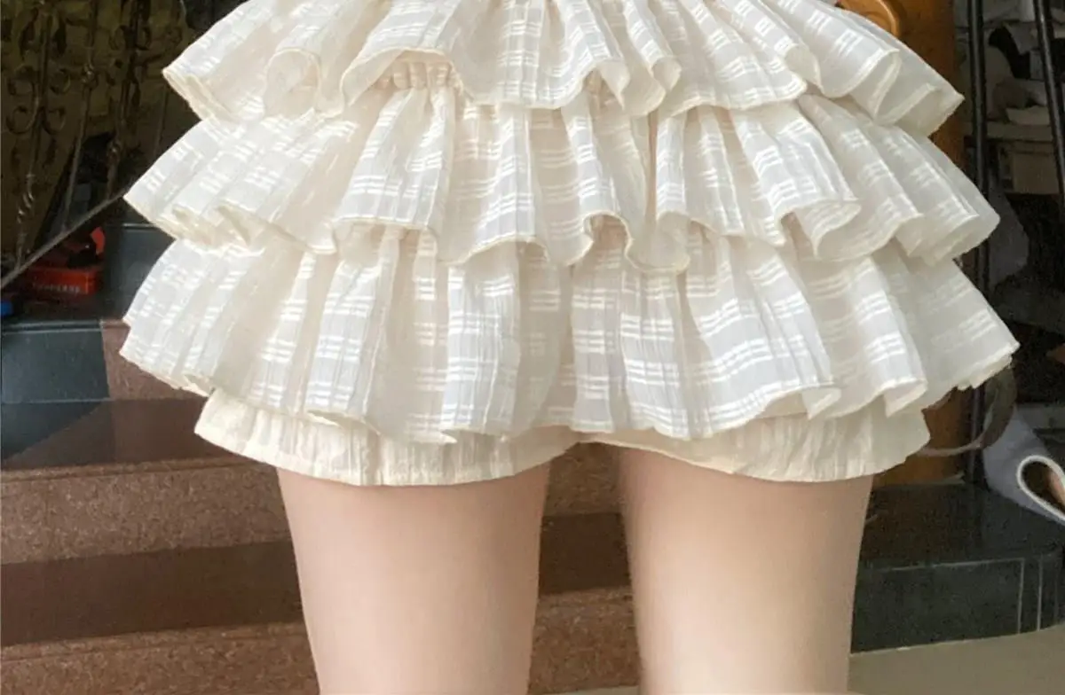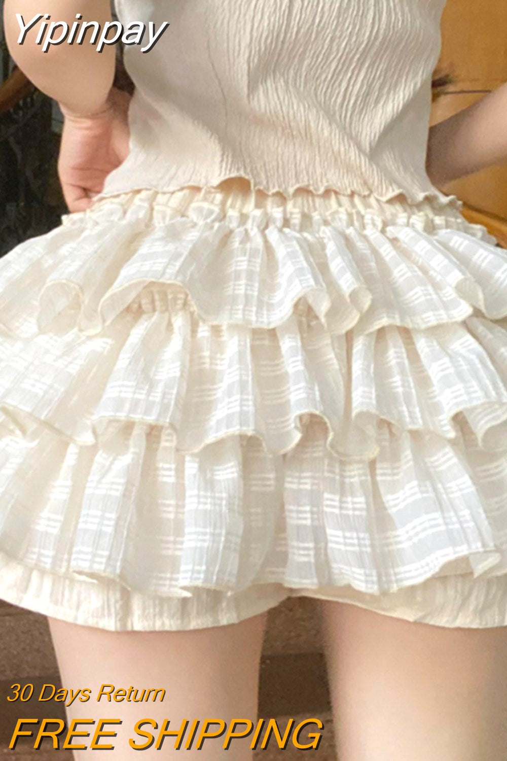 Yipinpay Kawaii Lolita Skirt Shorts Women Ruffle Patchwork Layered High Waist Cute Balletcore Mini Skirt Tutu Petticoat Summer