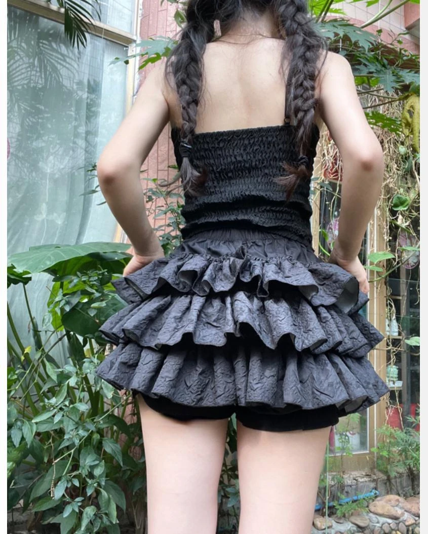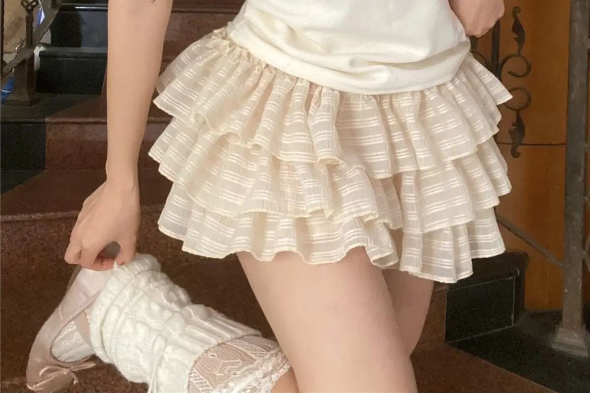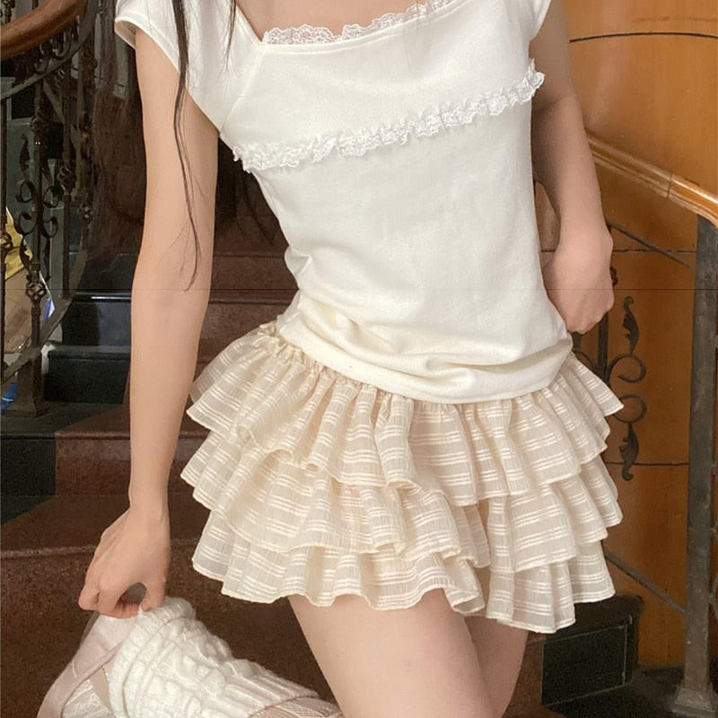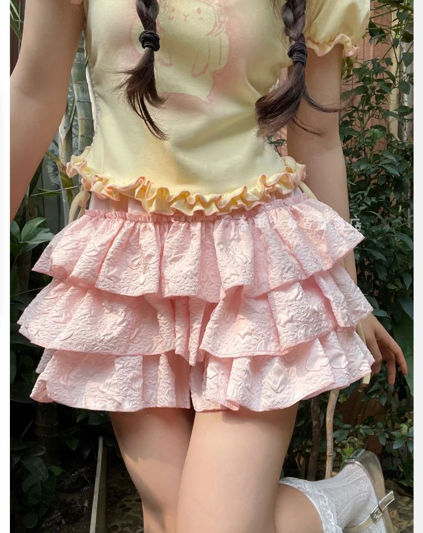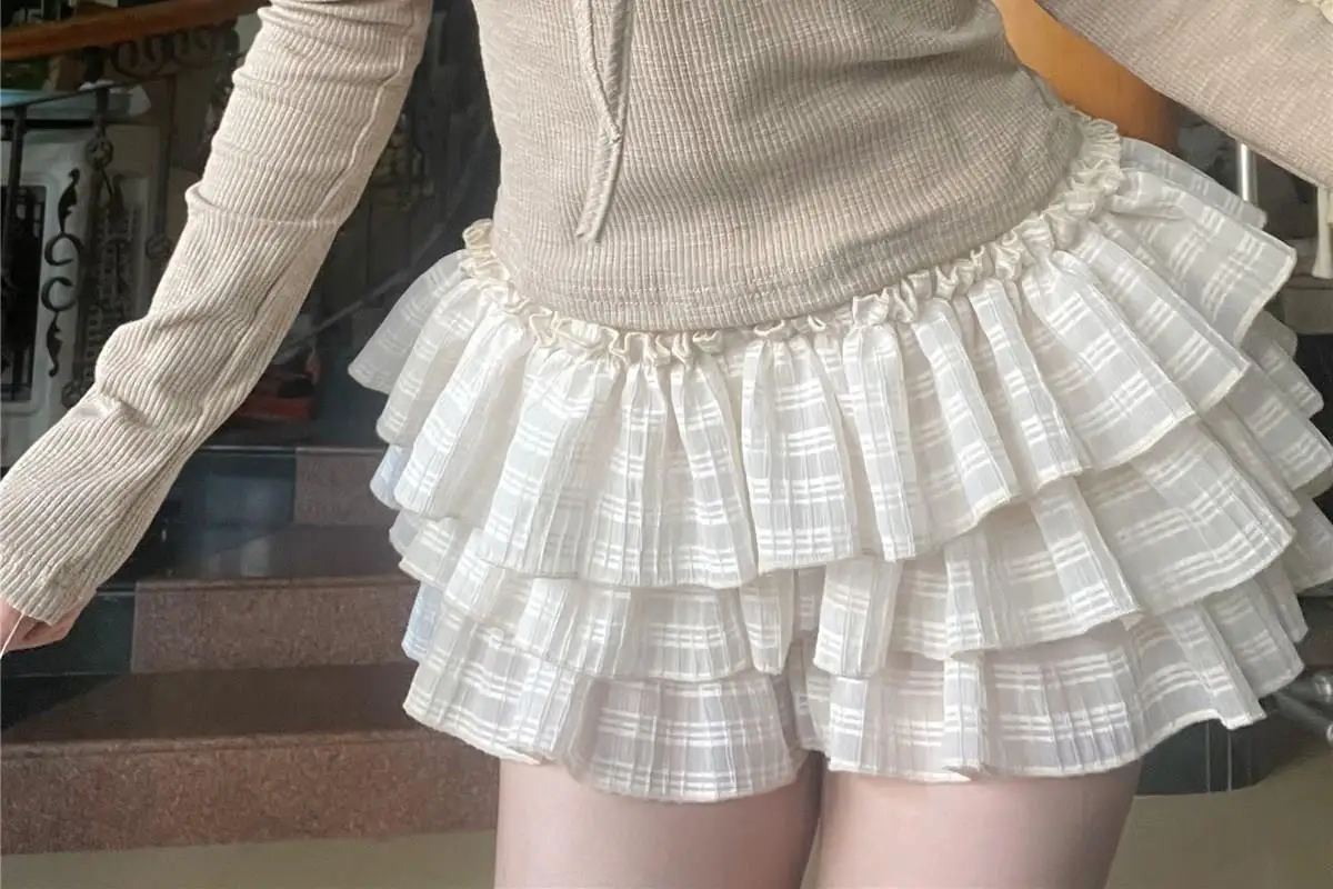 Yipinpay Kawaii Lolita Skirt Shorts Women Ruffle Patchwork Layered High Waist Cute Balletcore Mini Skirt Tutu Petticoat Summer