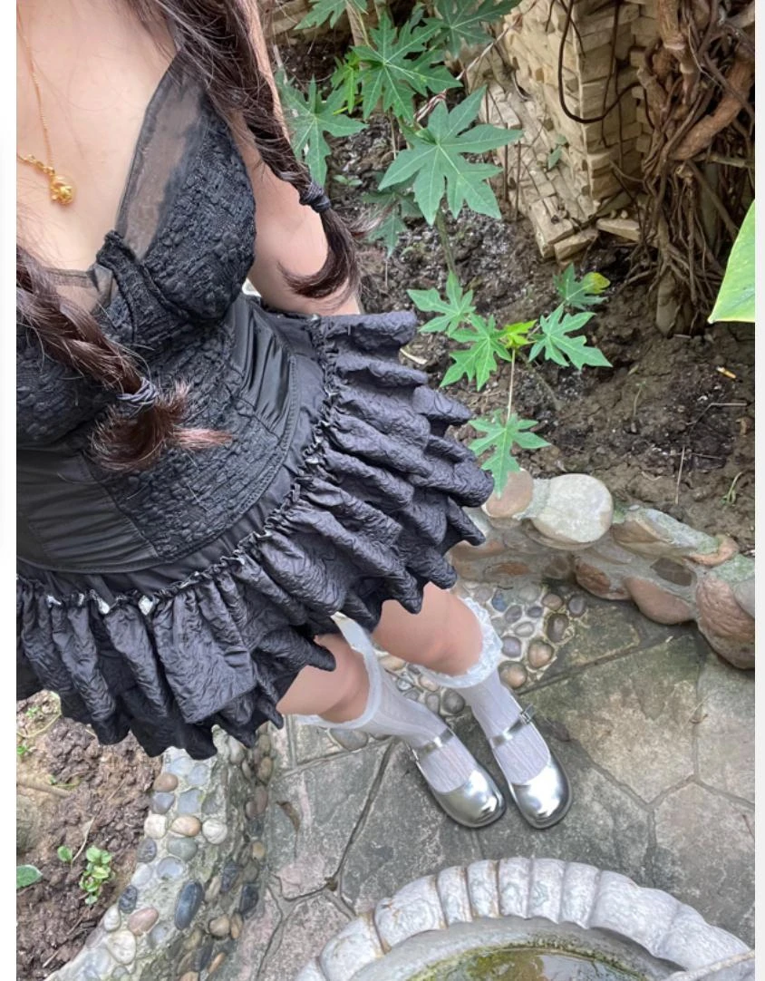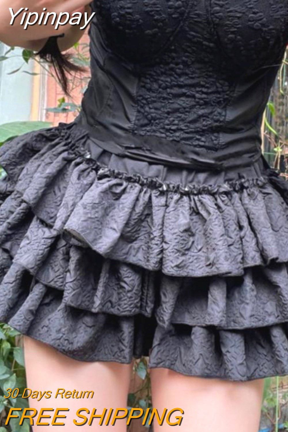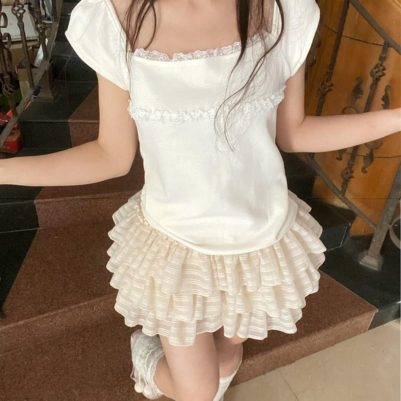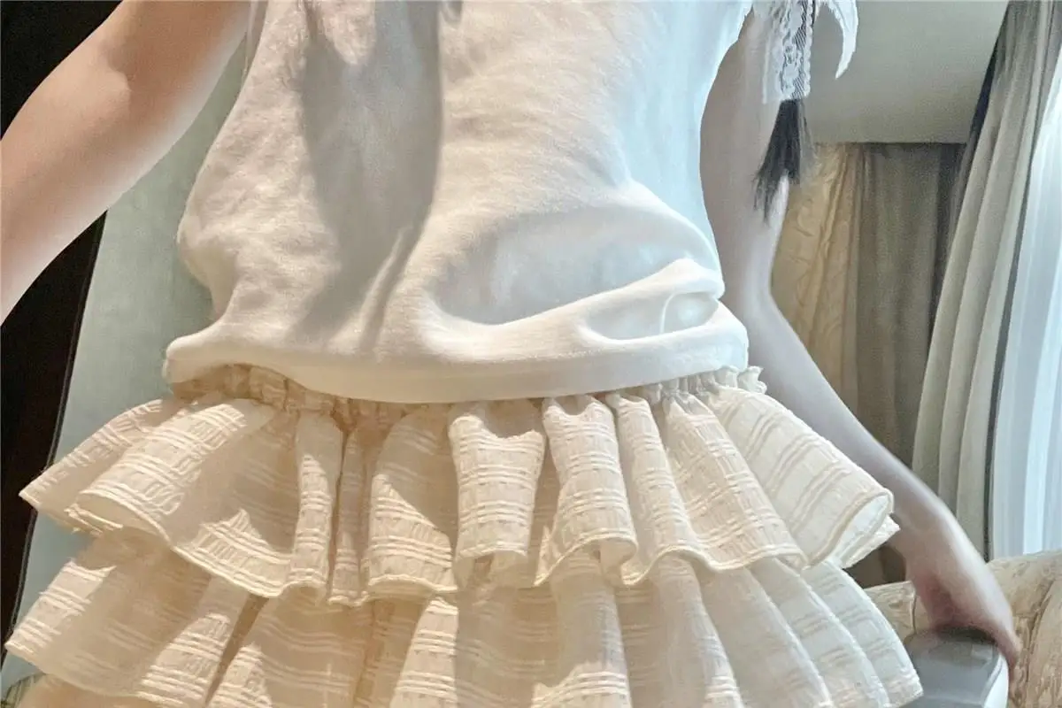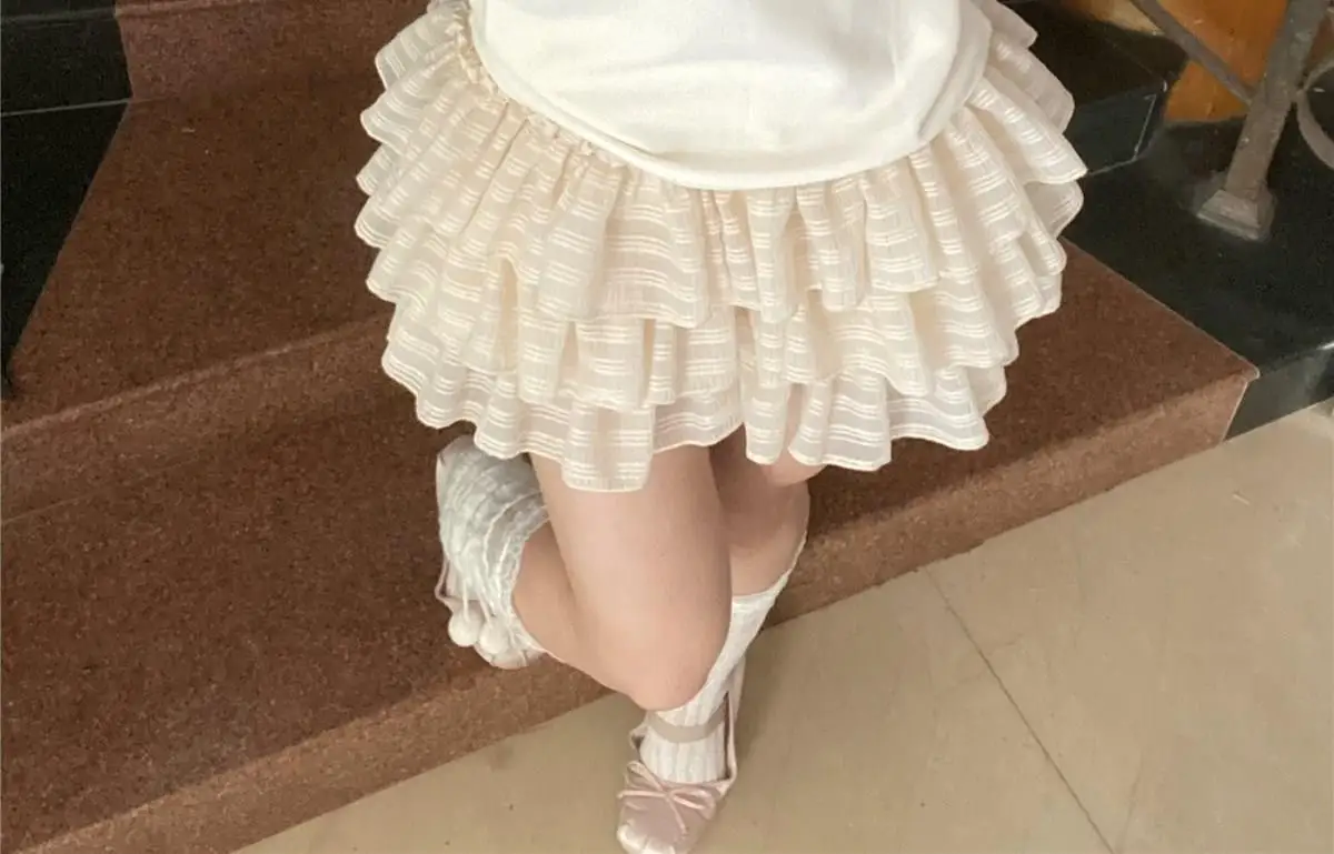 Yipinpay Kawaii Lolita Skirt Shorts Women Ruffle Patchwork Layered High Waist Cute Balletcore Mini Skirt Tutu Petticoat Summer