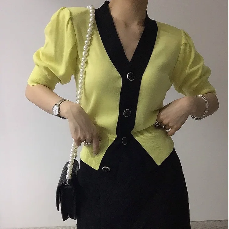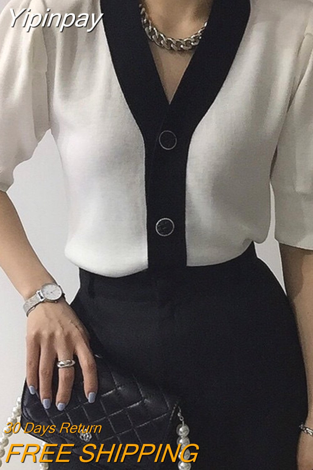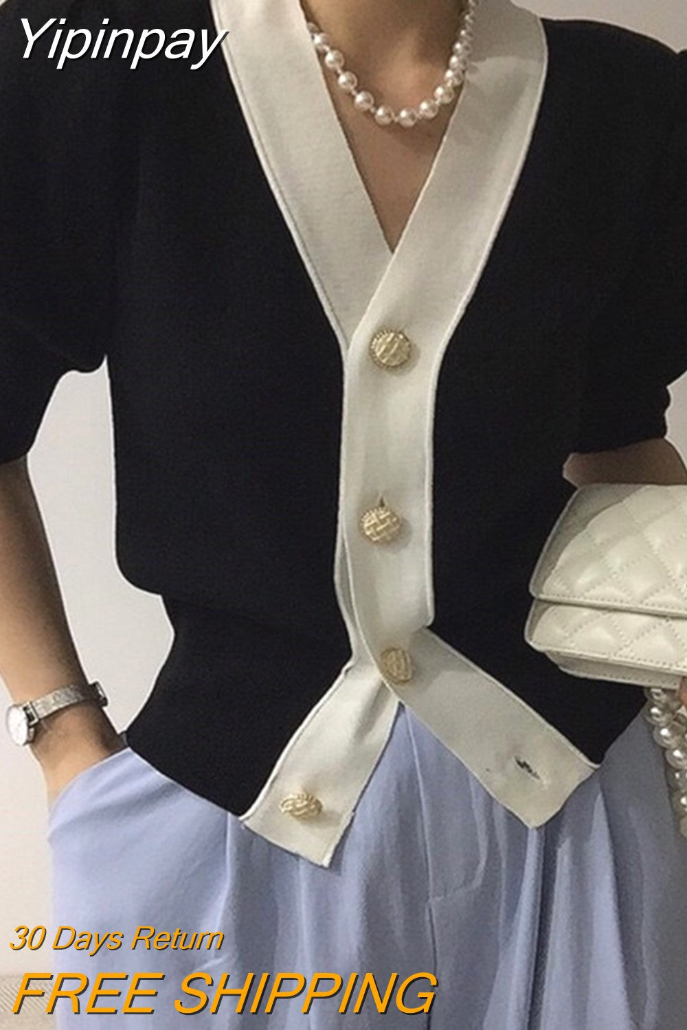 Yipinpay Neck Half Sleeve Ice Silk Knitting Coat Sueter Mujer Crop Pink Sweaters Women Lazy Y2k Short Cardigan Feminino Pull Femme