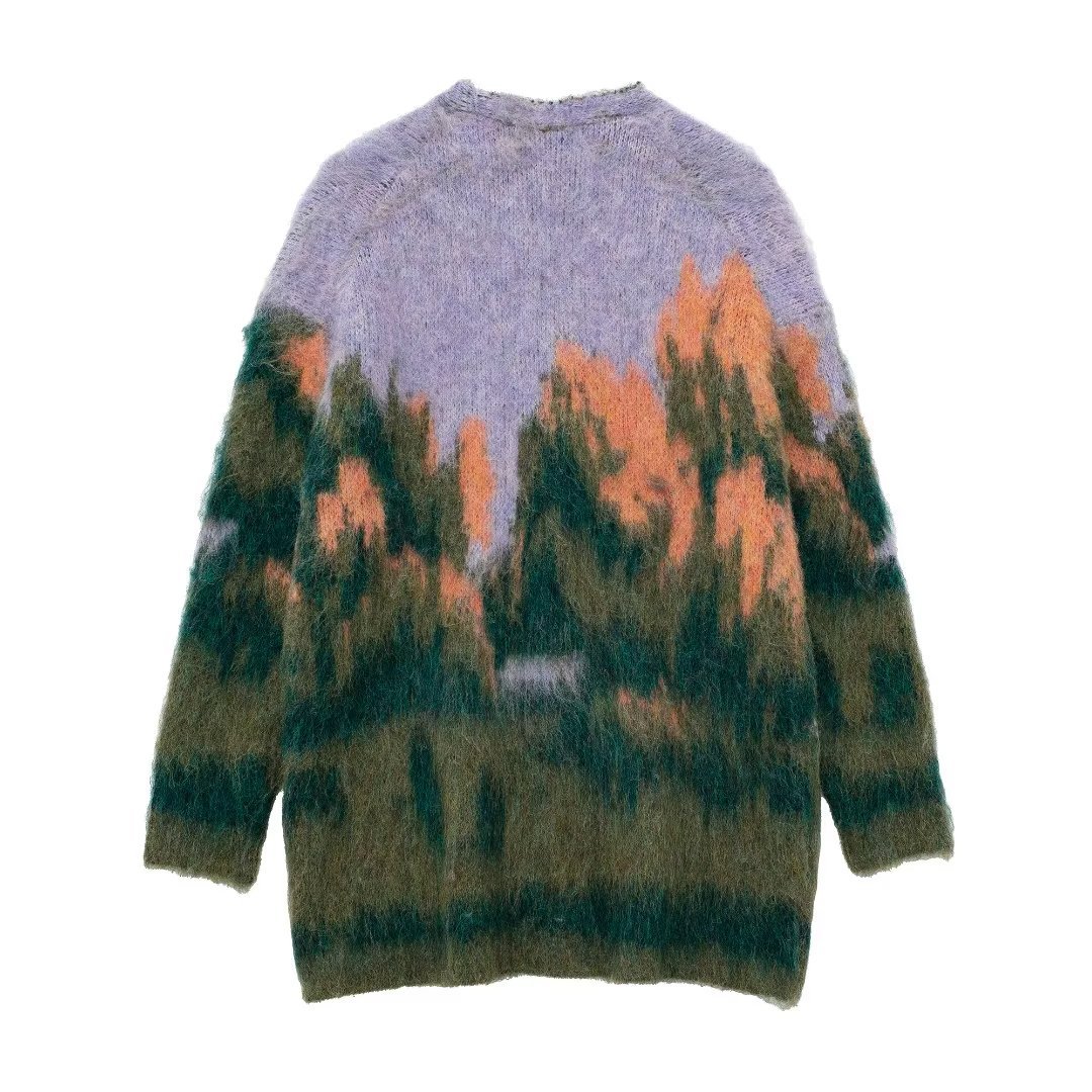 Yipinpay New Landscape Pattern V-Collar Loose Knitted Coat Coat 2893116