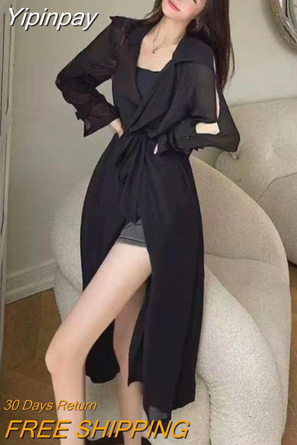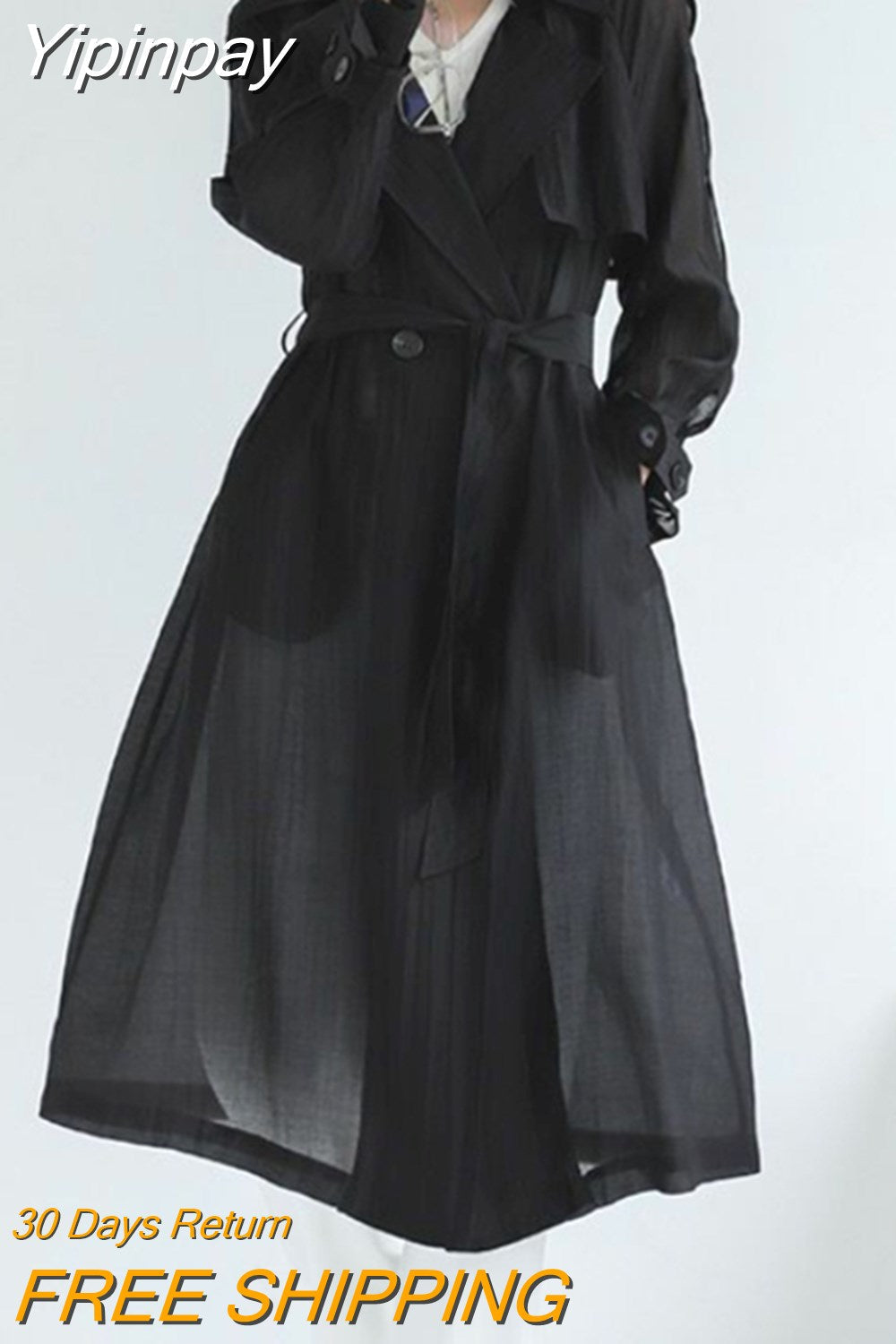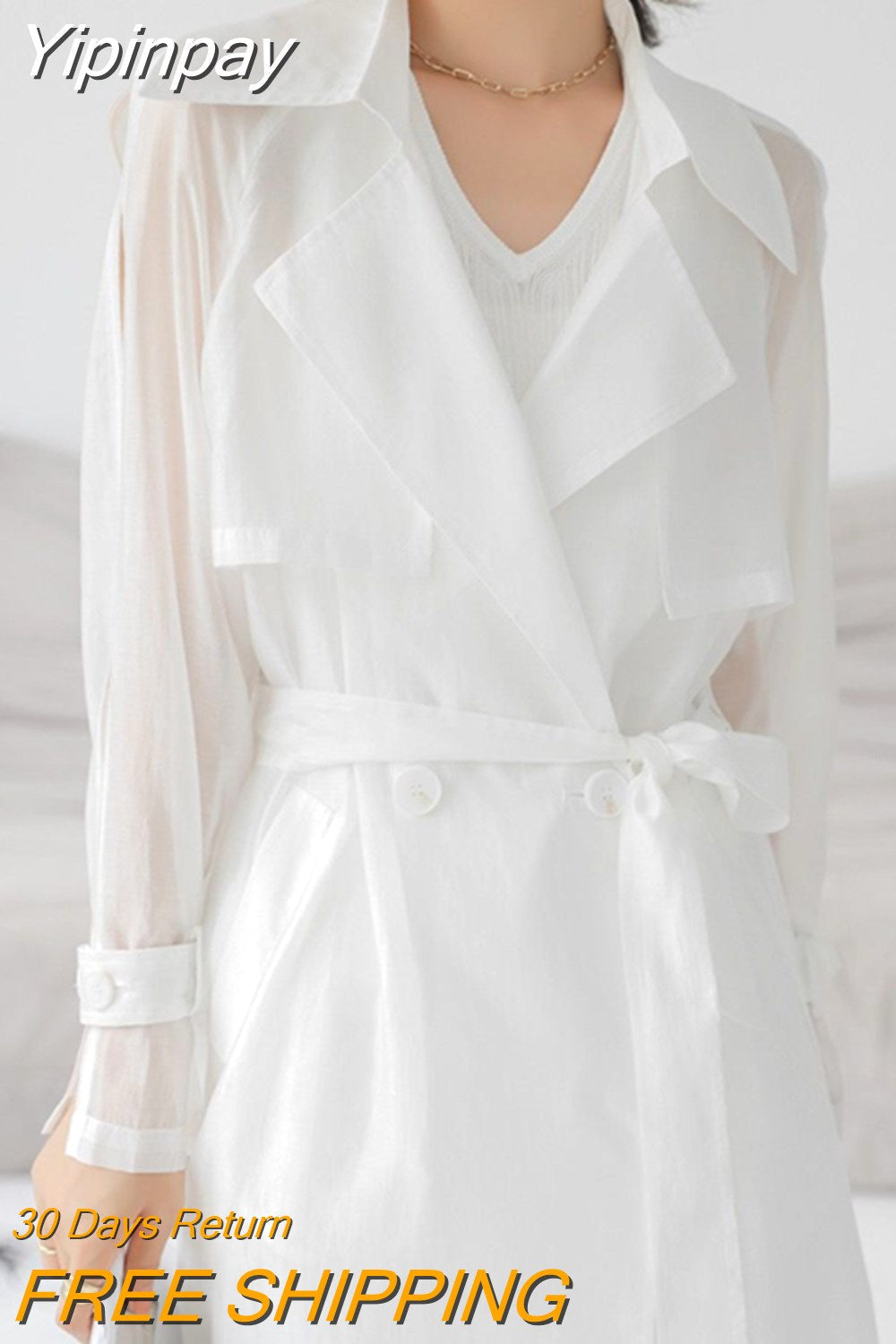 Yipinpay New Spring Summer Women's Windbreaker Fashion Loose Frenulum Sunscreen Trench Coat Thin Style Shirt & Blouse Top Women