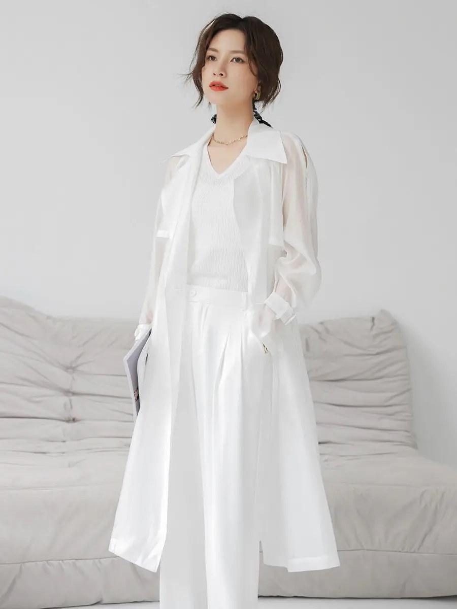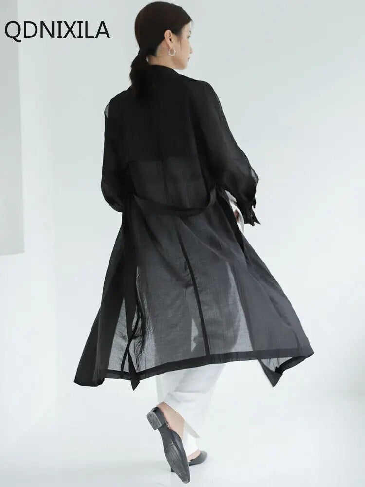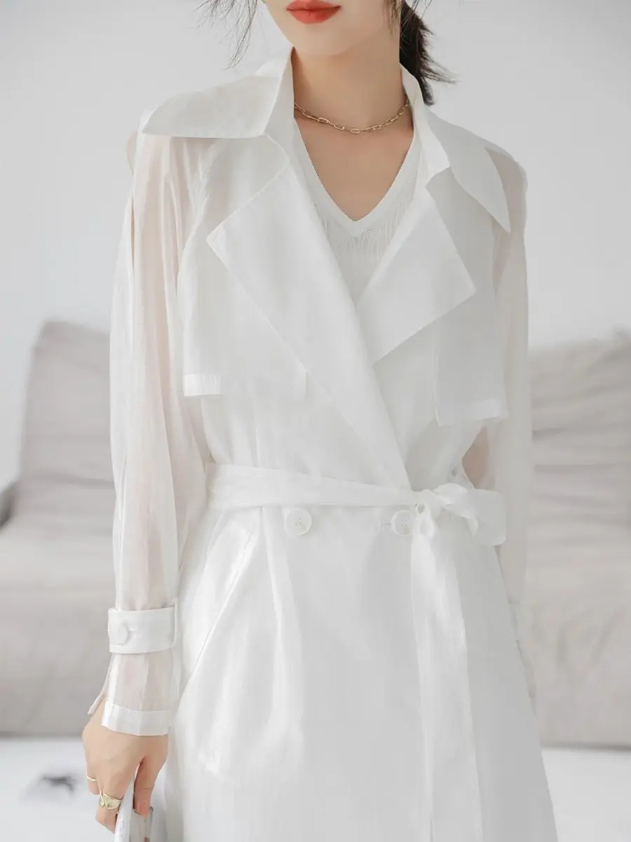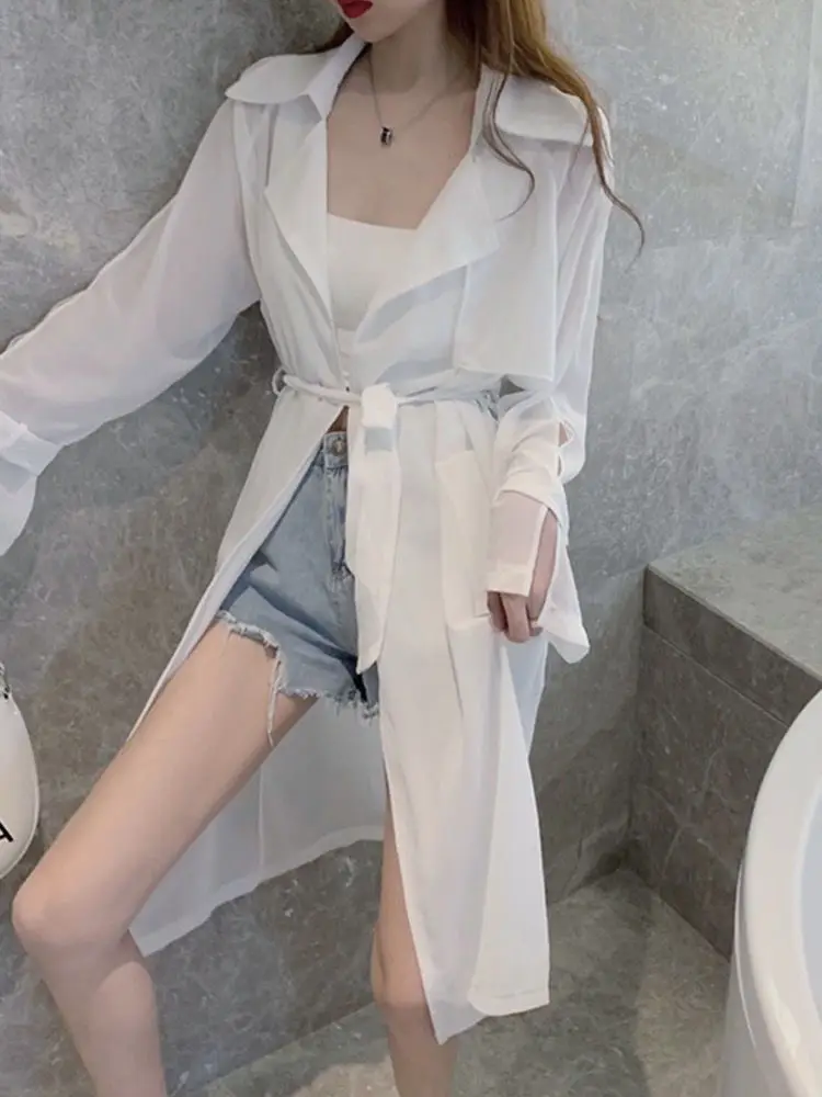 Yipinpay New Spring Summer Women's Windbreaker Fashion Loose Frenulum Sunscreen Trench Coat Thin Style Shirt & Blouse Top Women