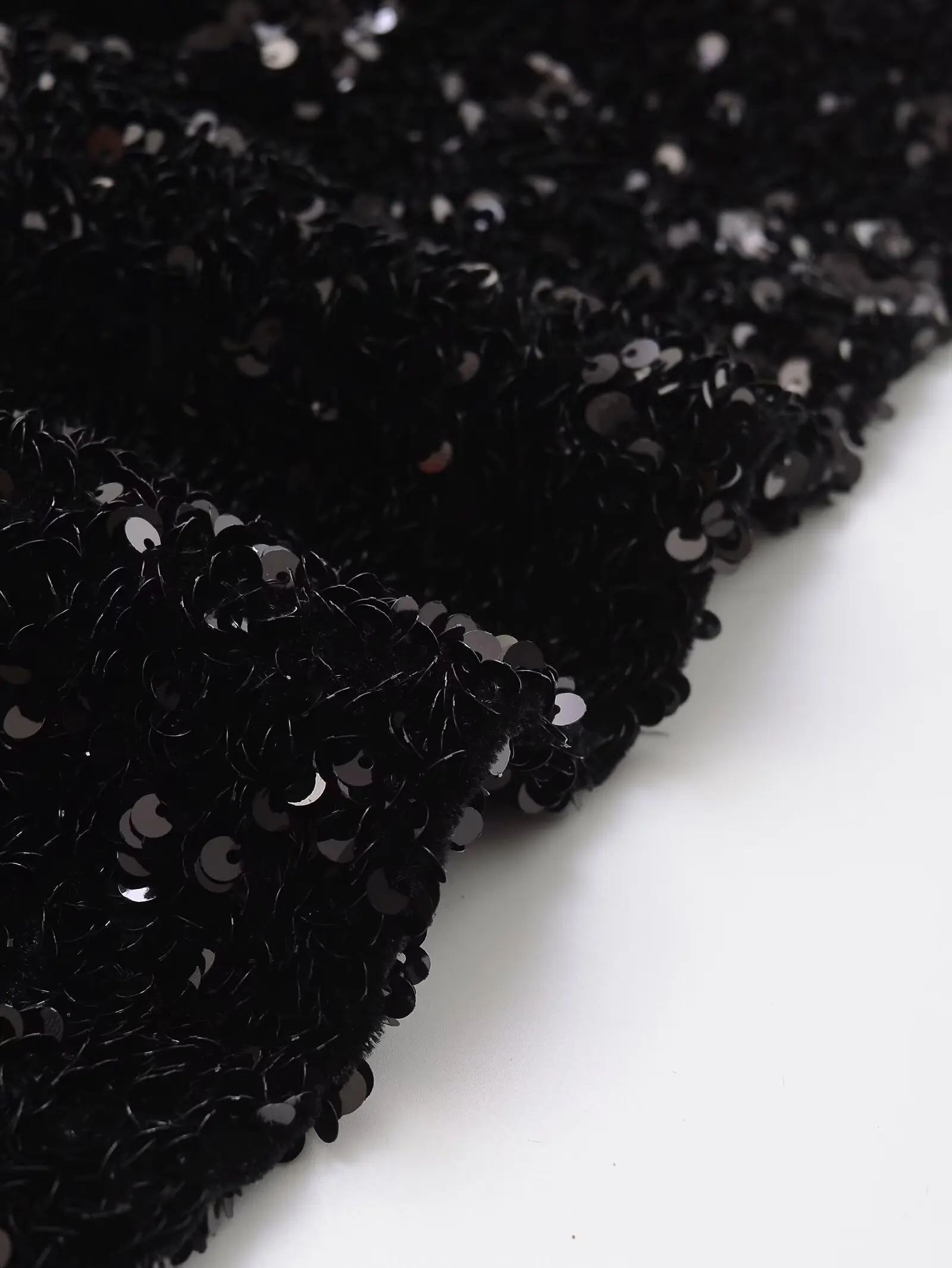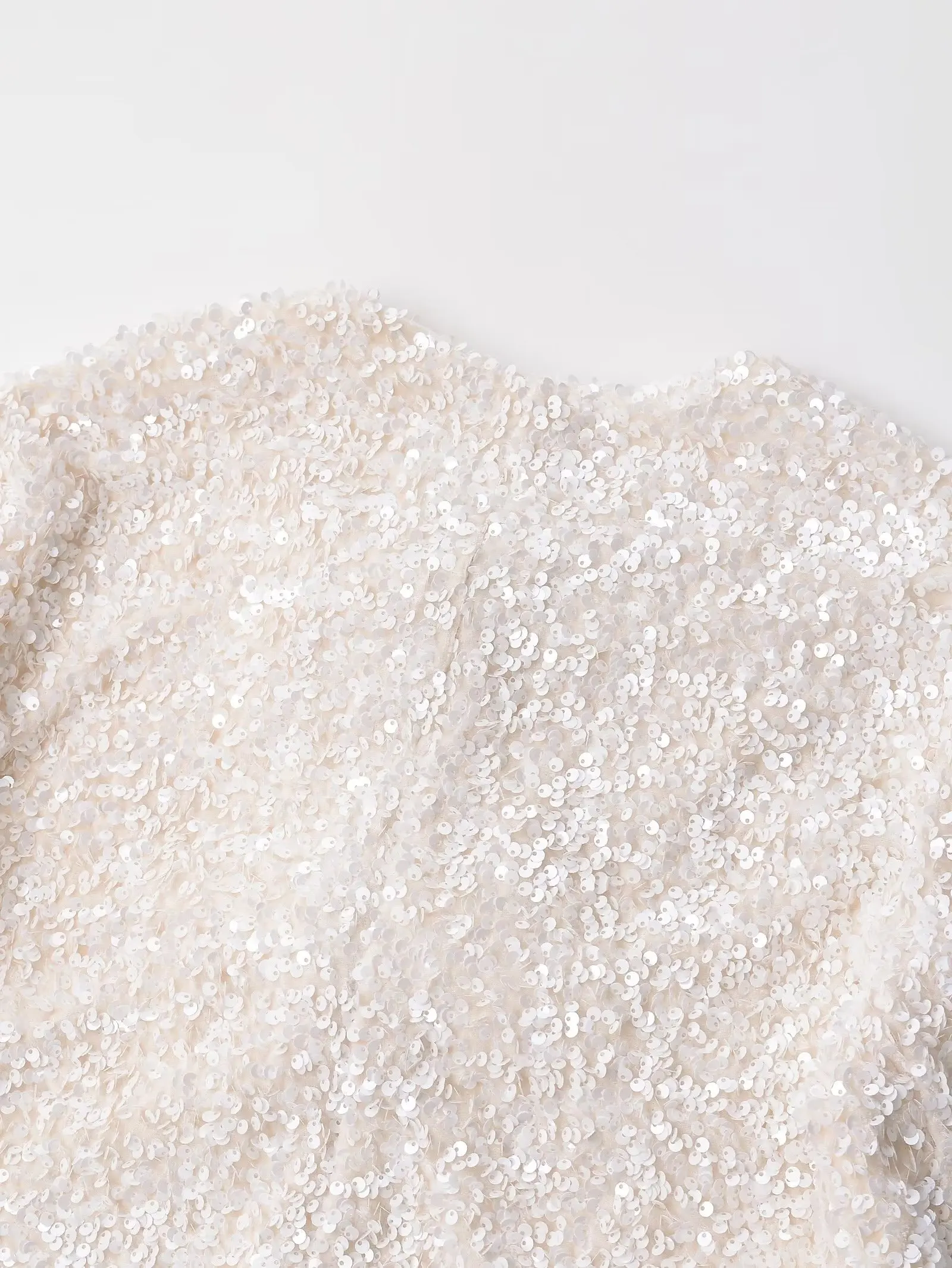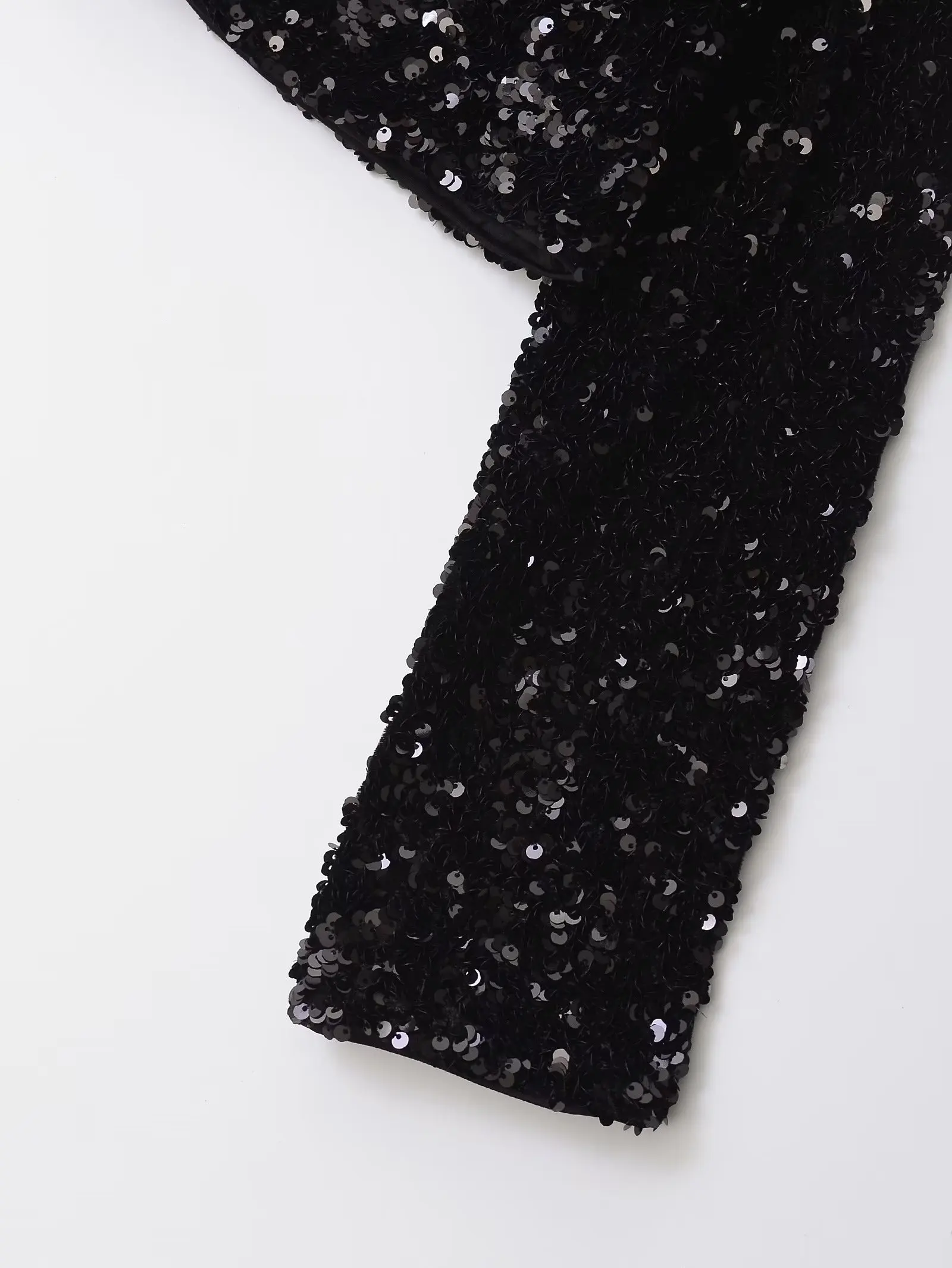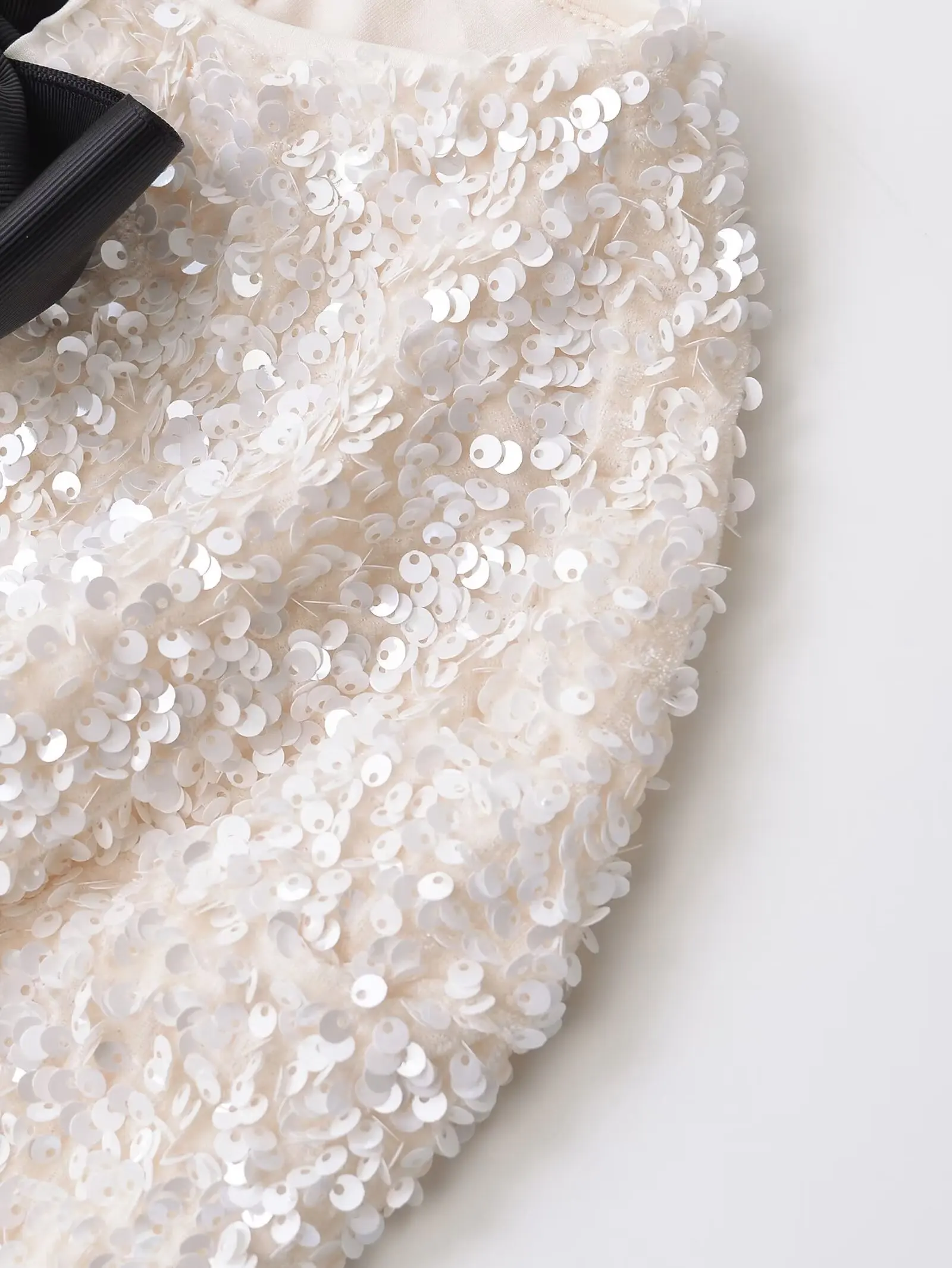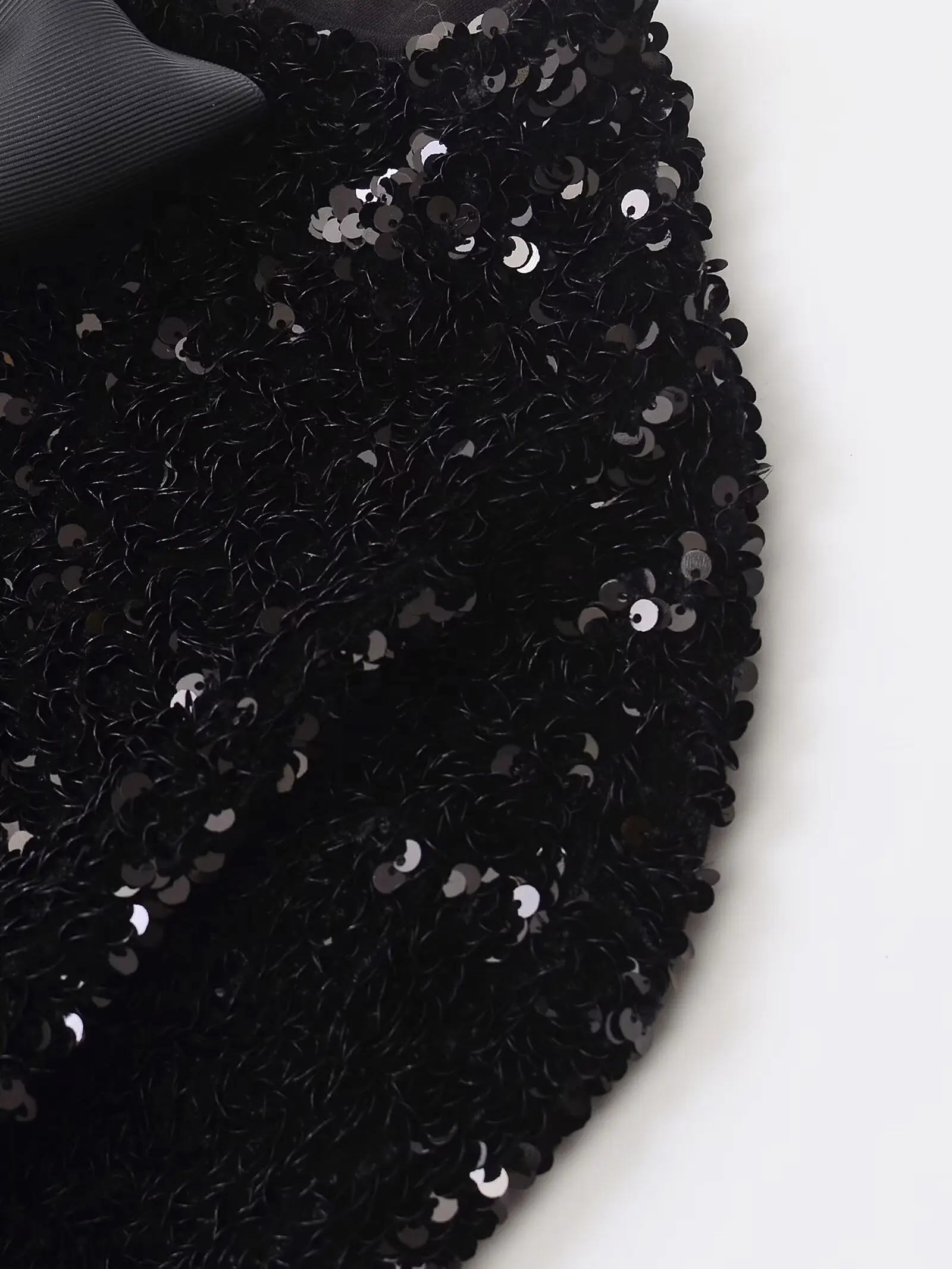 Yipinpay New Women Contrast Color Bow Sequin Jacket Long Sleeve O Neck Female Party Elegant Crop Coat