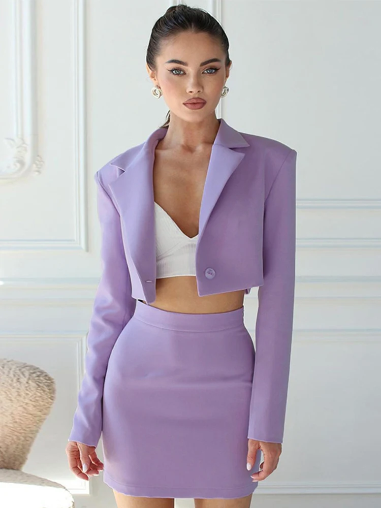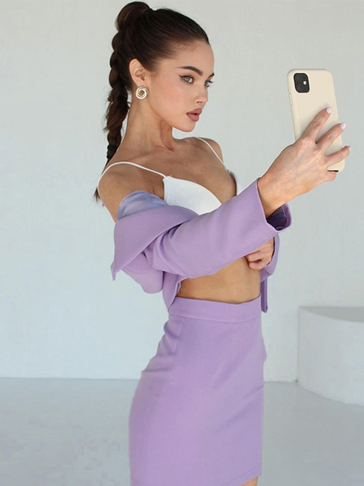 yipinpay Piece Sets Women Blazer Suits Long Sleeve Crop Coat High Waist Mini Skirt Suit Autumn Clothes Streetwear 2 Pieces Outfit