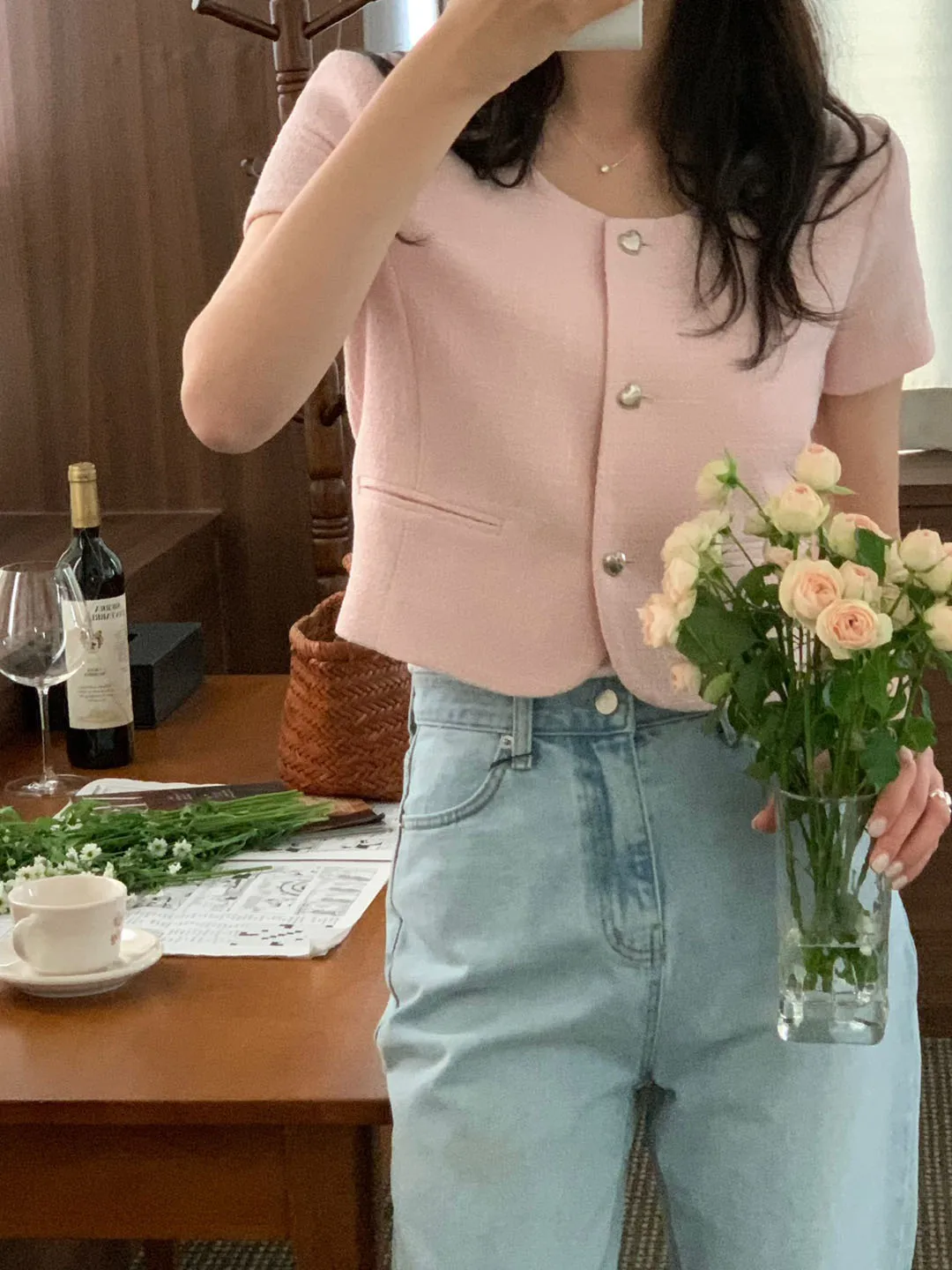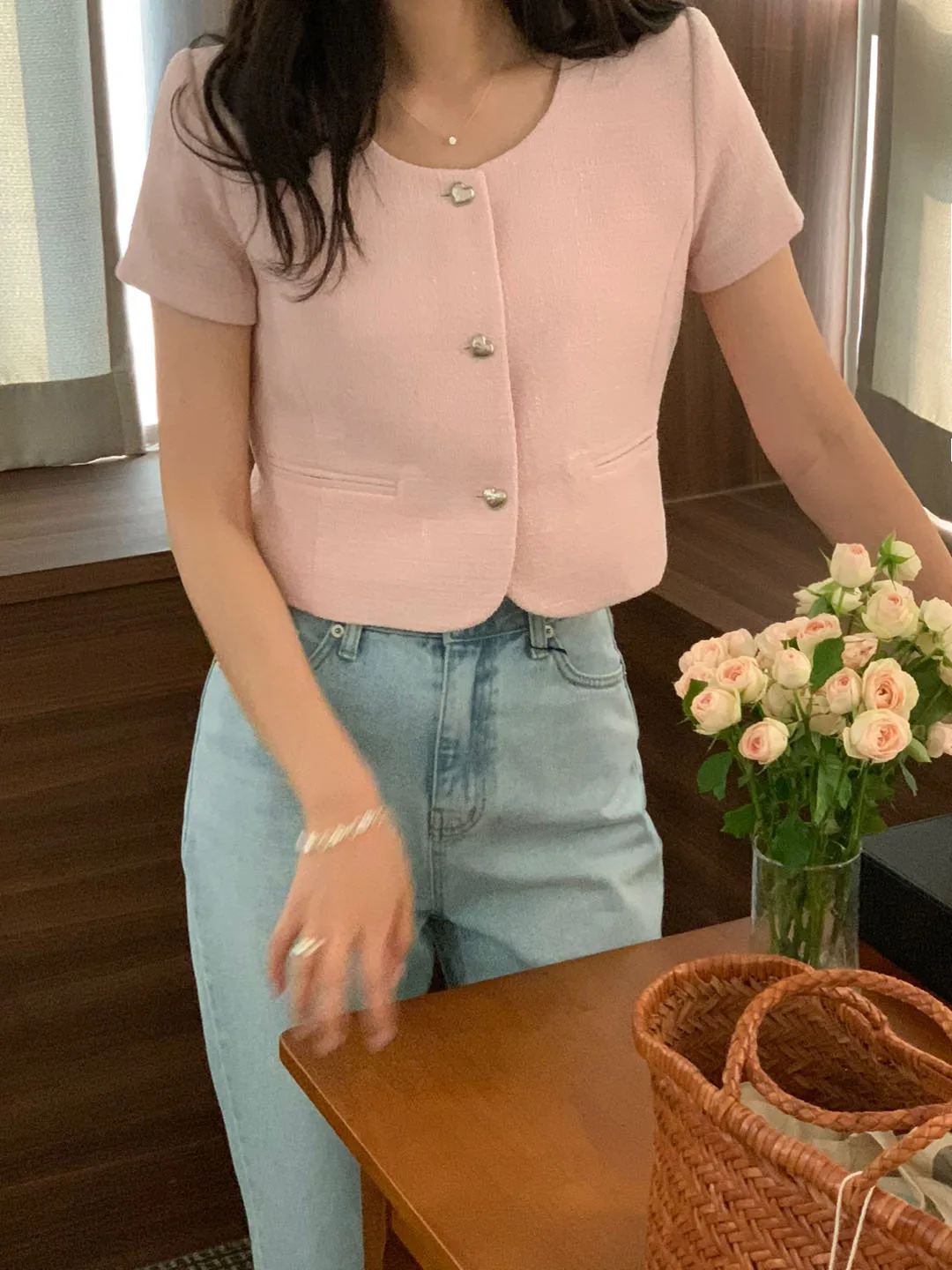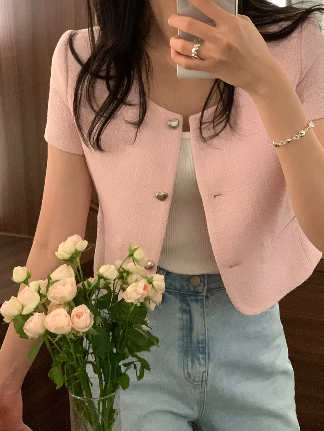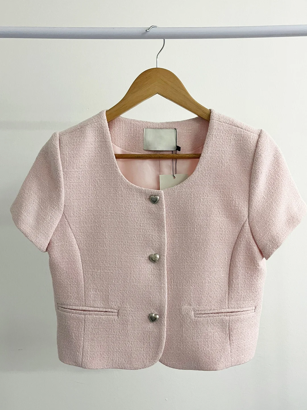 Yipinpay Pink Tailored Coat Temperament Tweed Cardigan Love Button Jackets for Women Summer 2023 Korean Style Coats Ropa Mujer