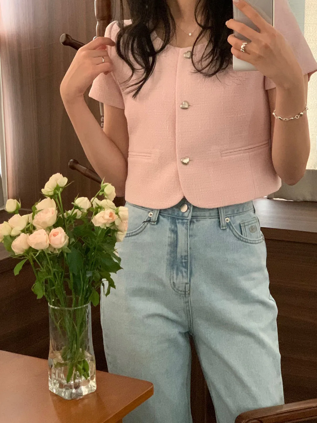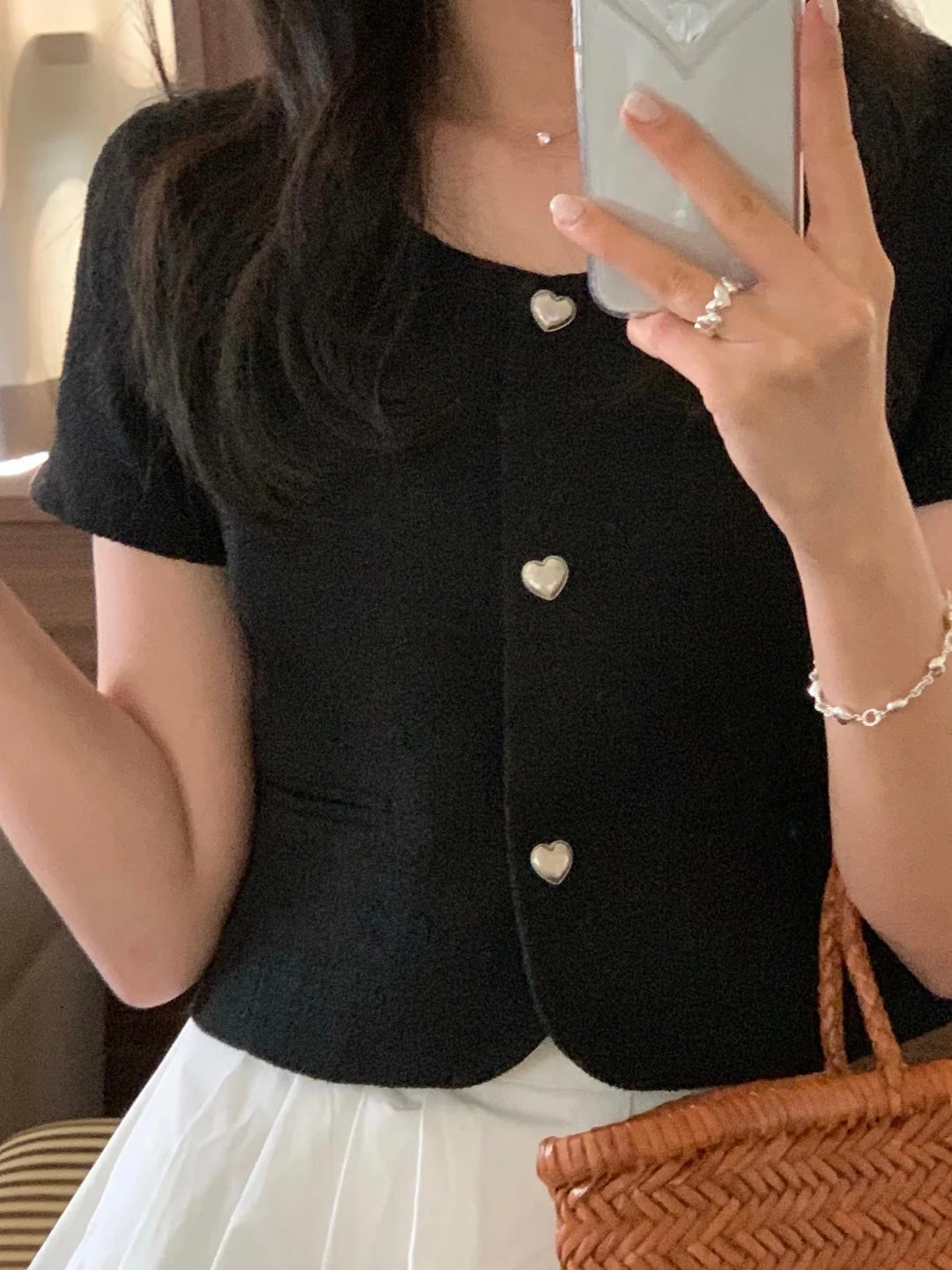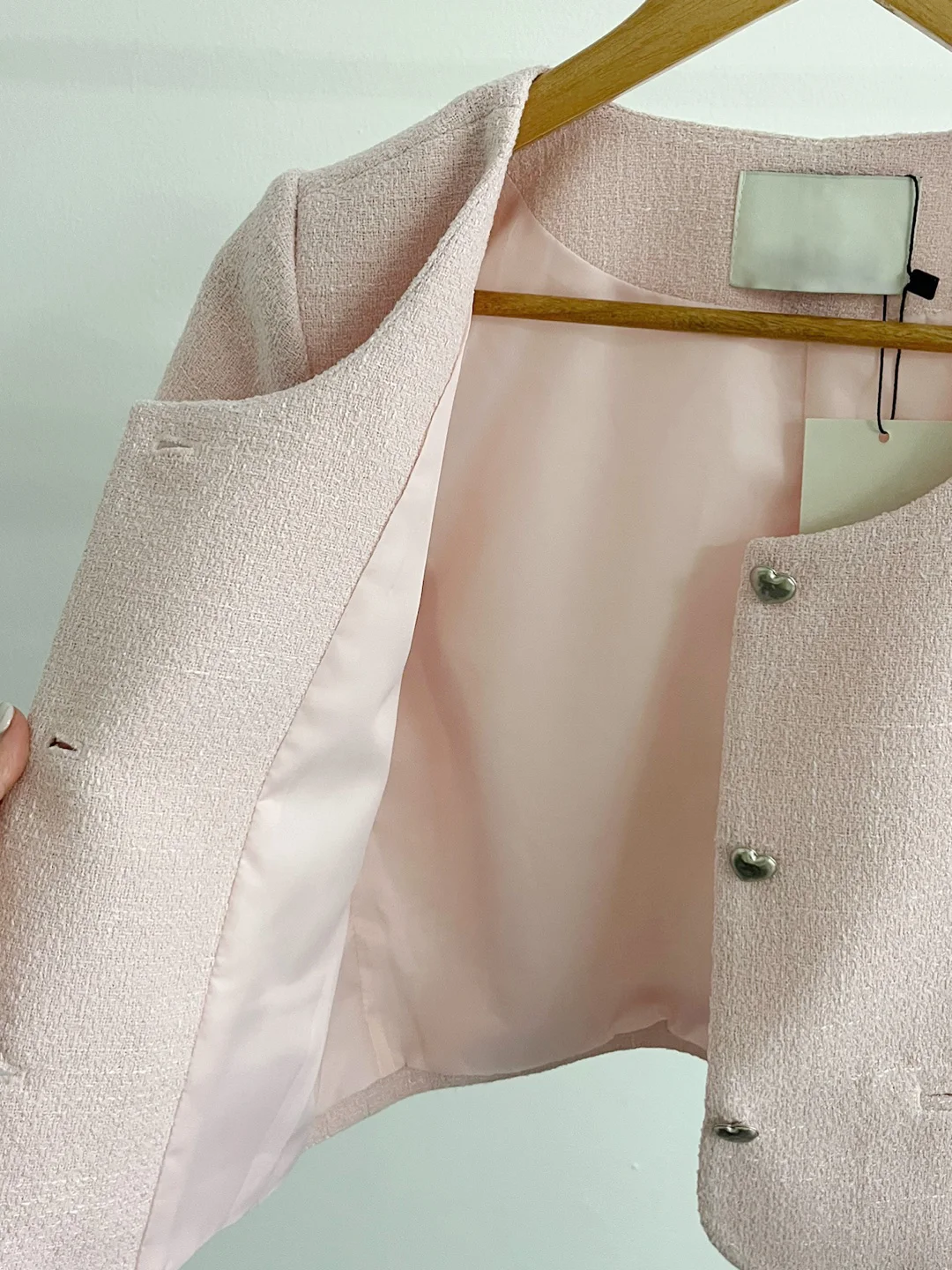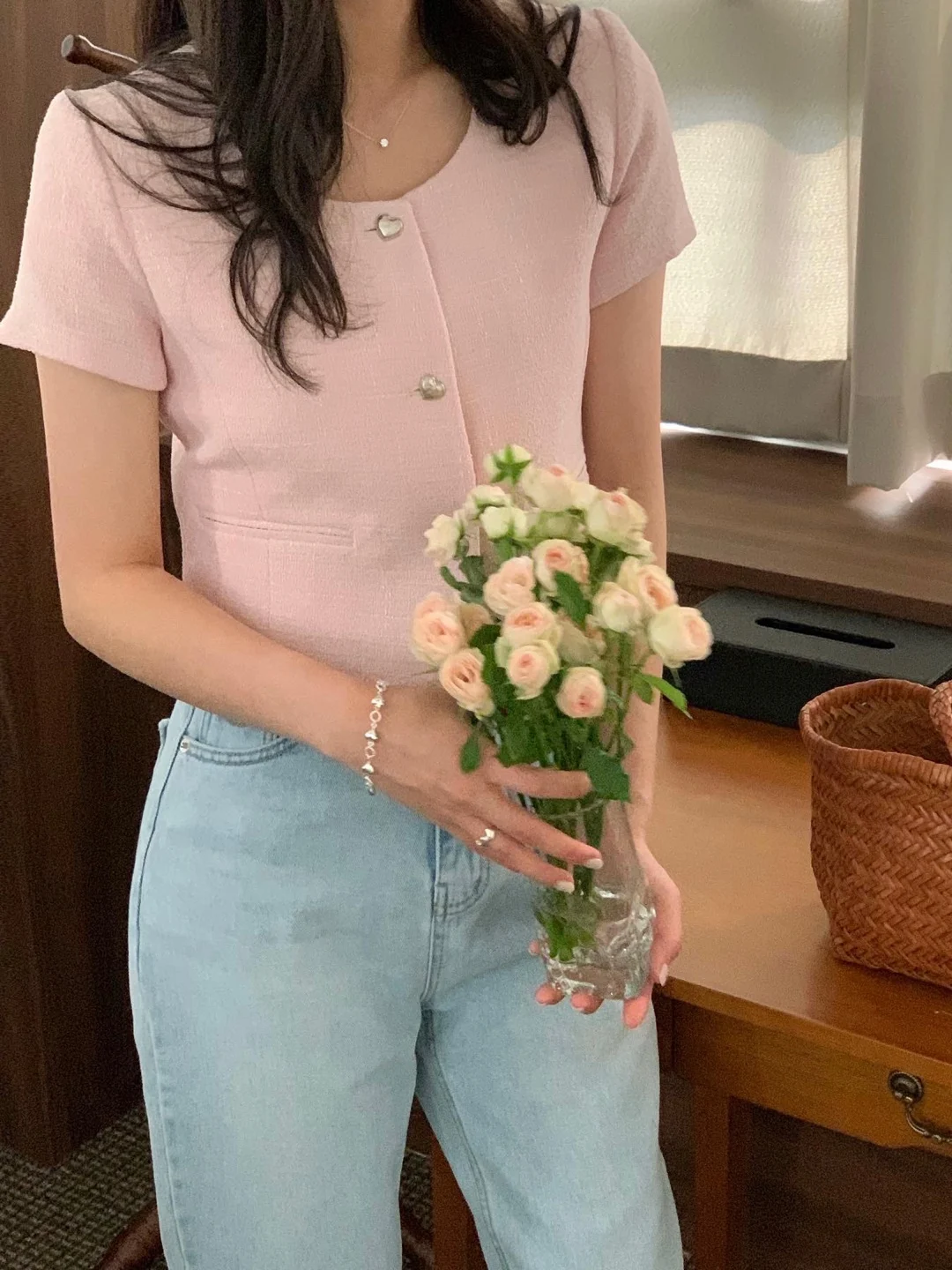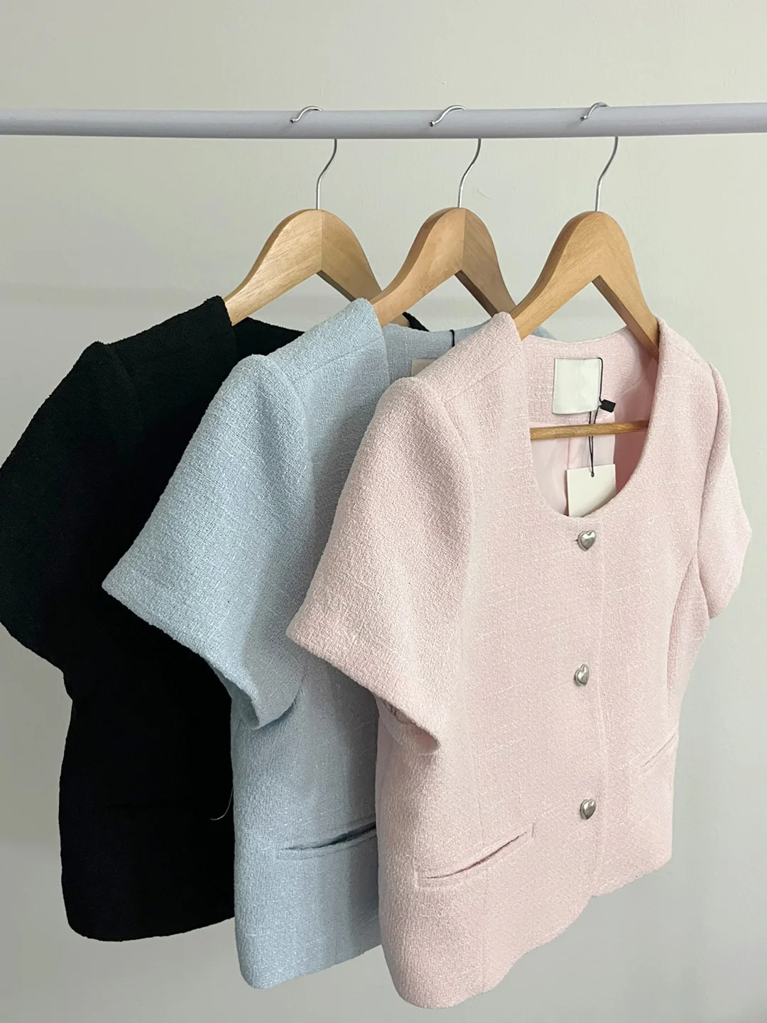 Yipinpay Pink Tailored Coat Temperament Tweed Cardigan Love Button Jackets for Women Summer 2023 Korean Style Coats Ropa Mujer