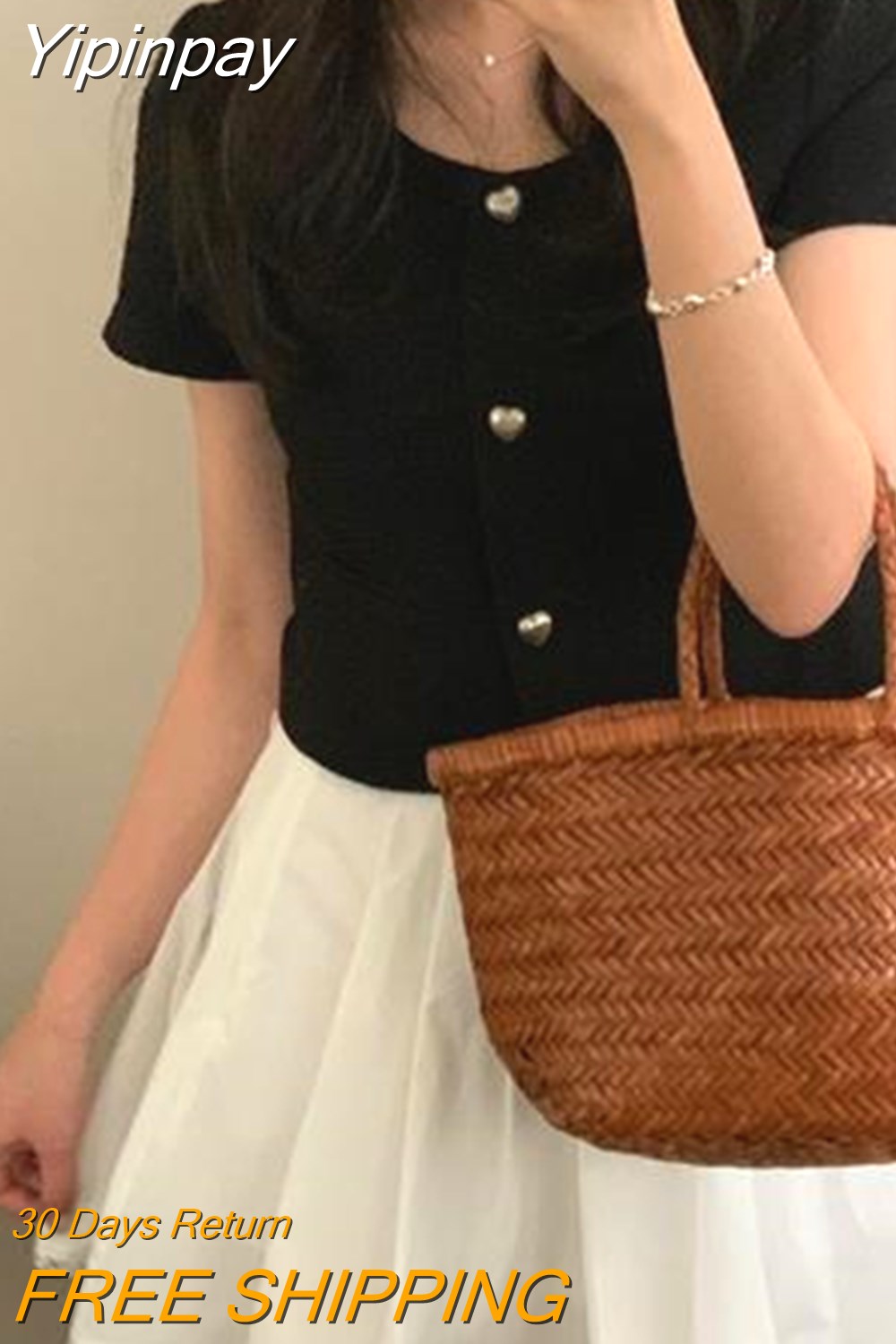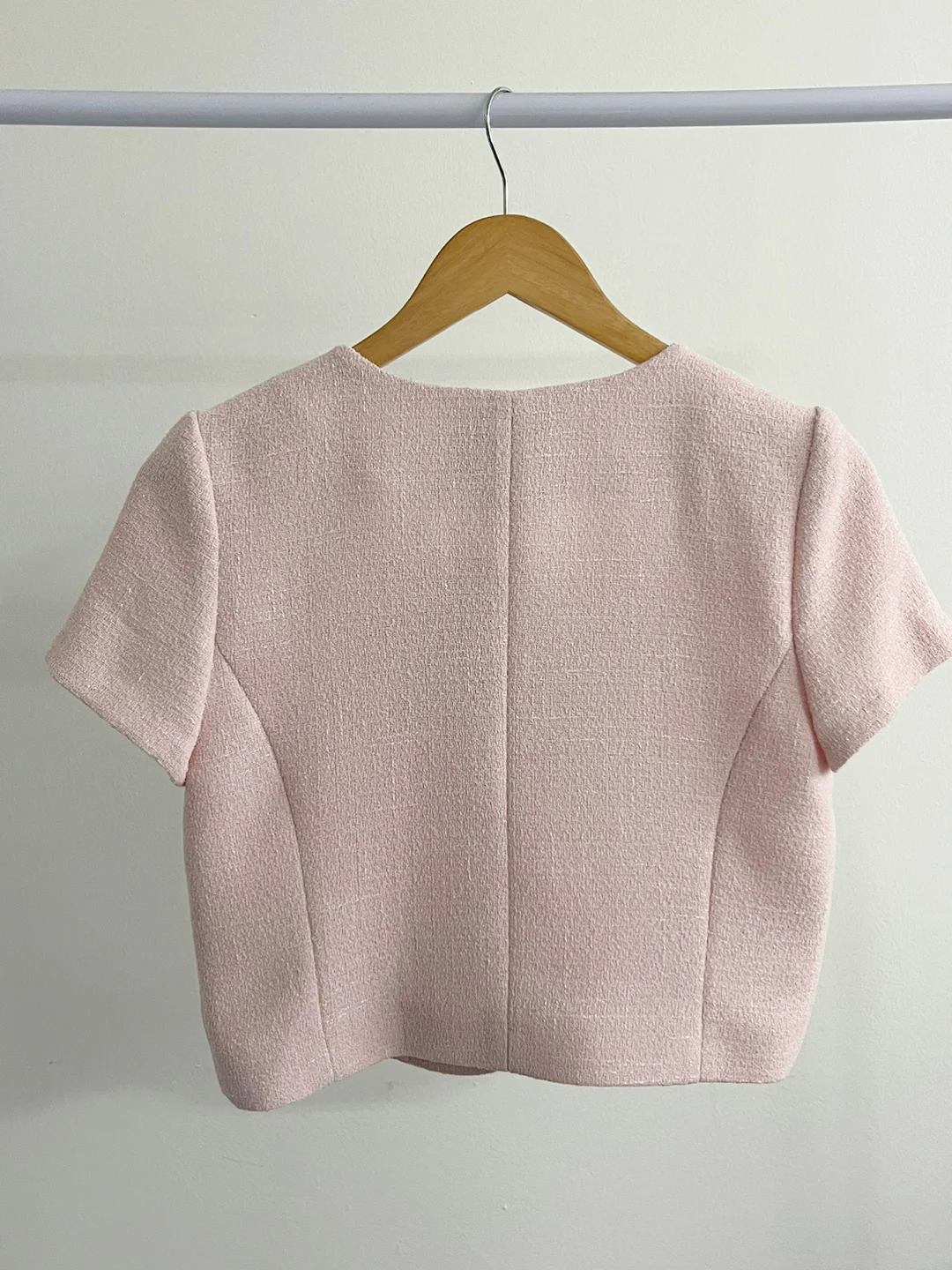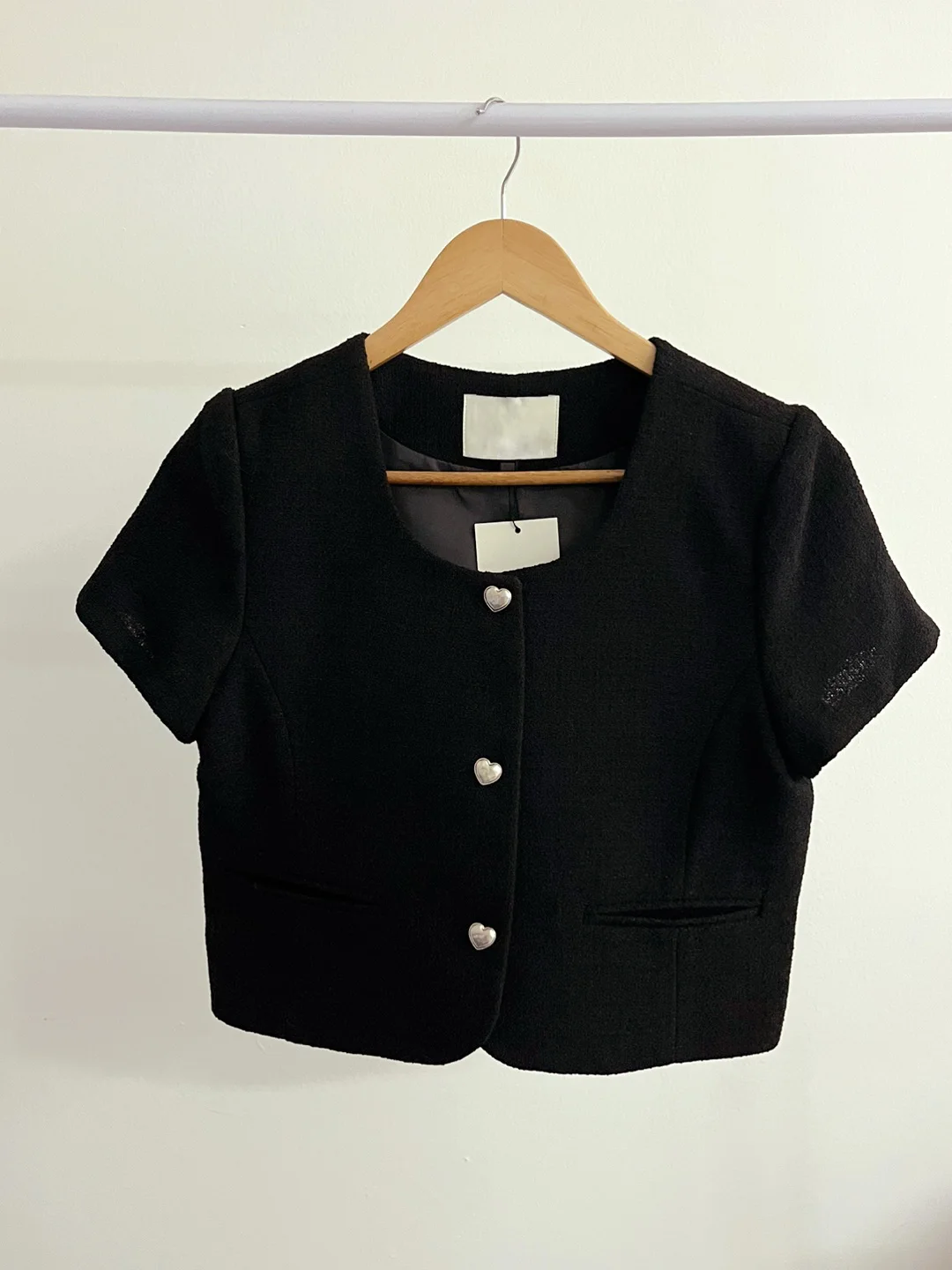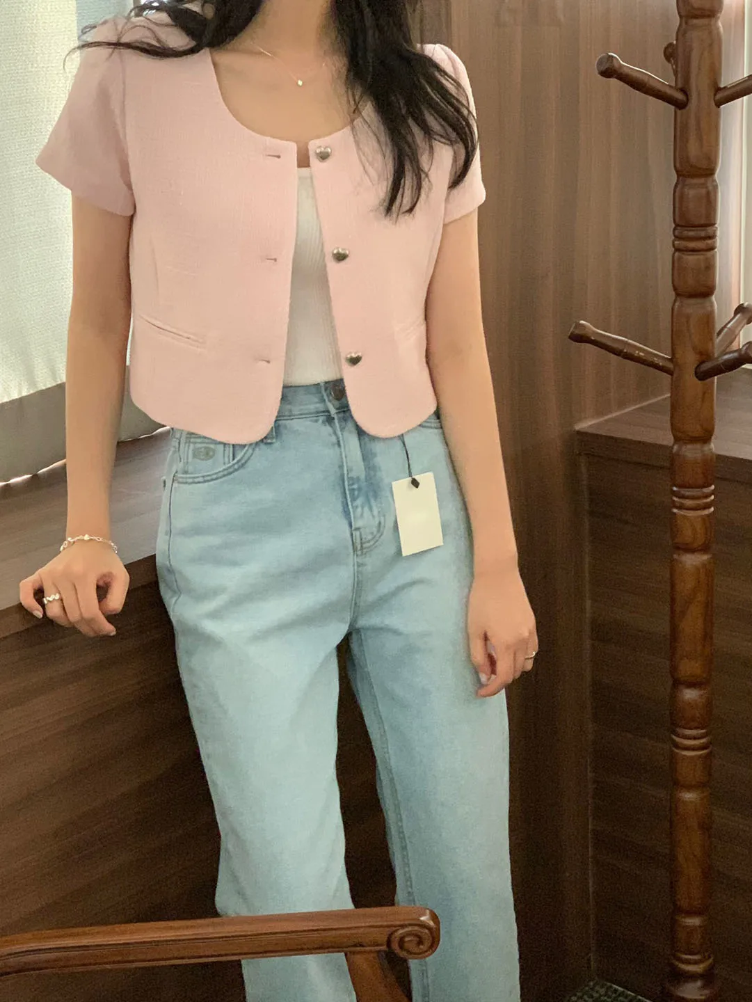 Yipinpay Pink Tailored Coat Temperament Tweed Cardigan Love Button Jackets for Women Summer 2023 Korean Style Coats Ropa Mujer