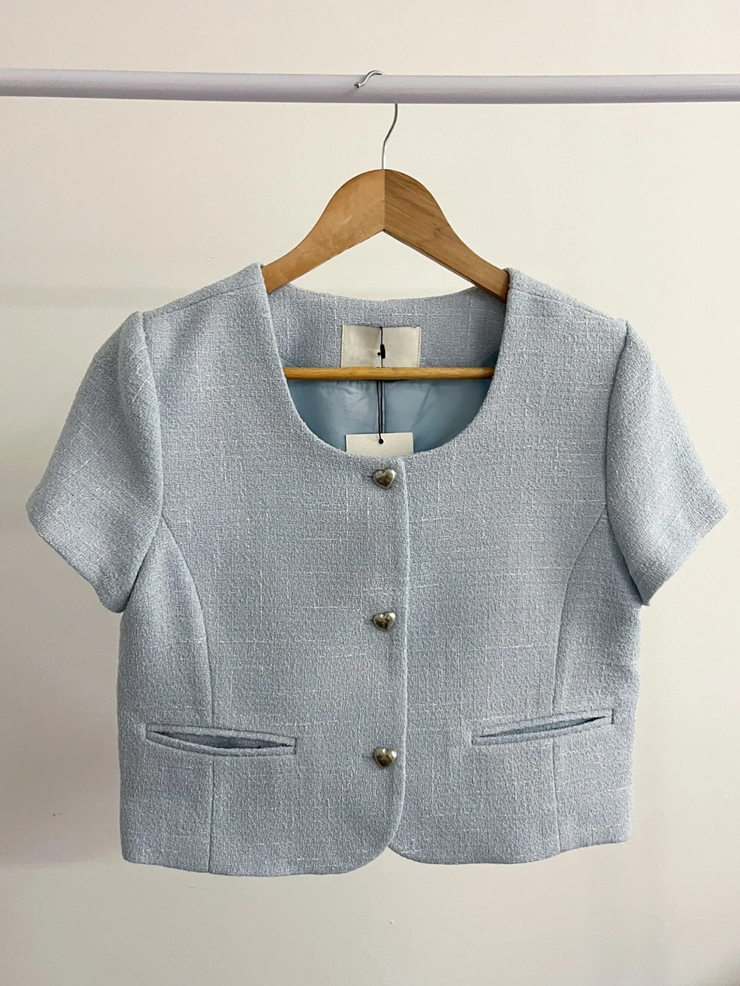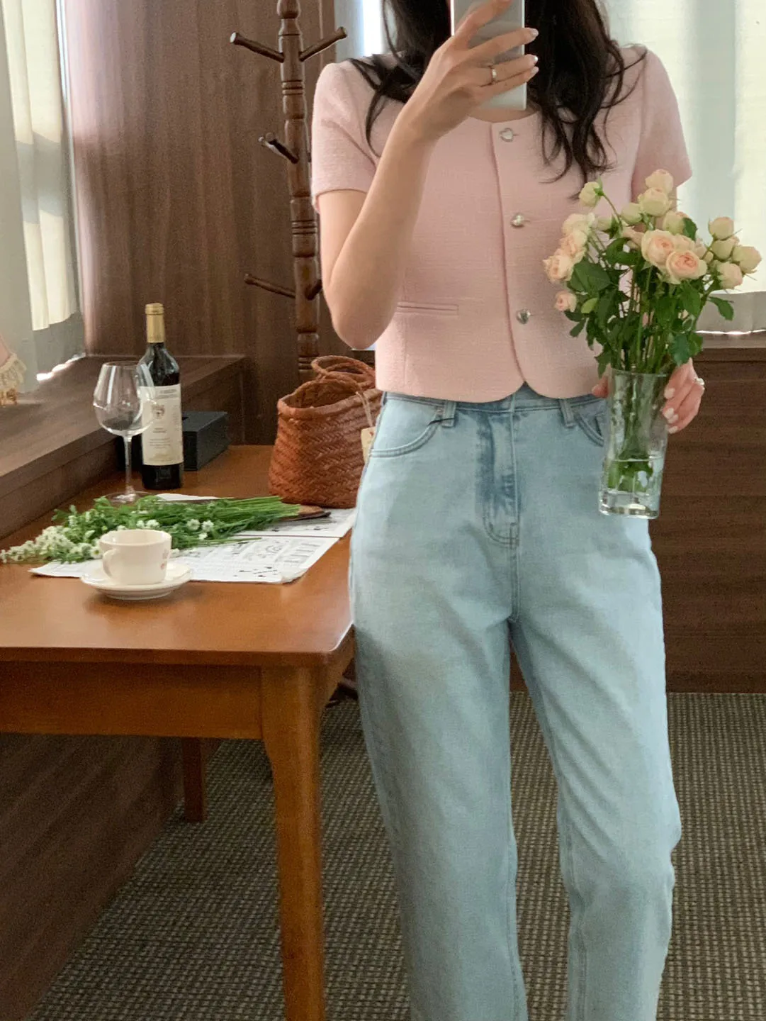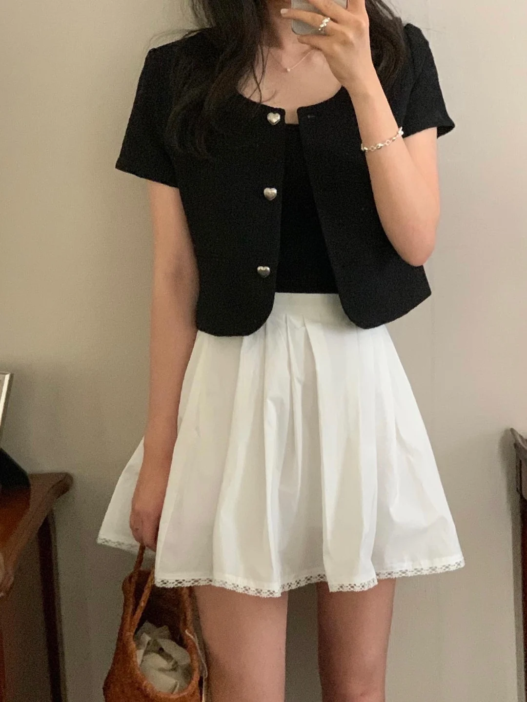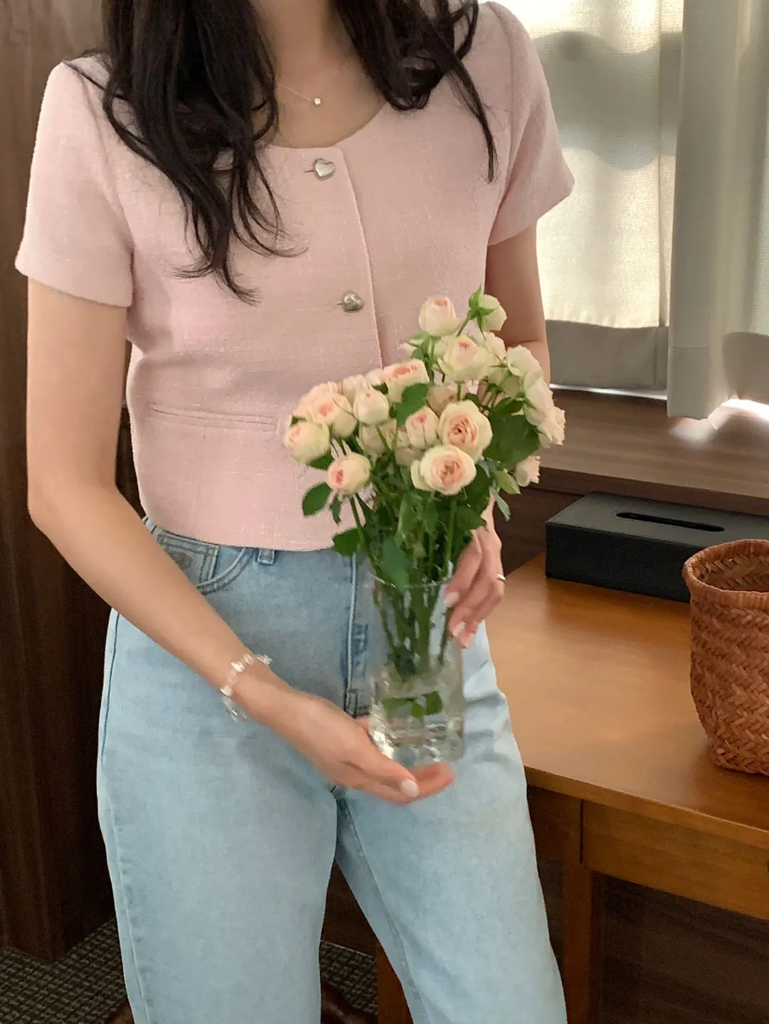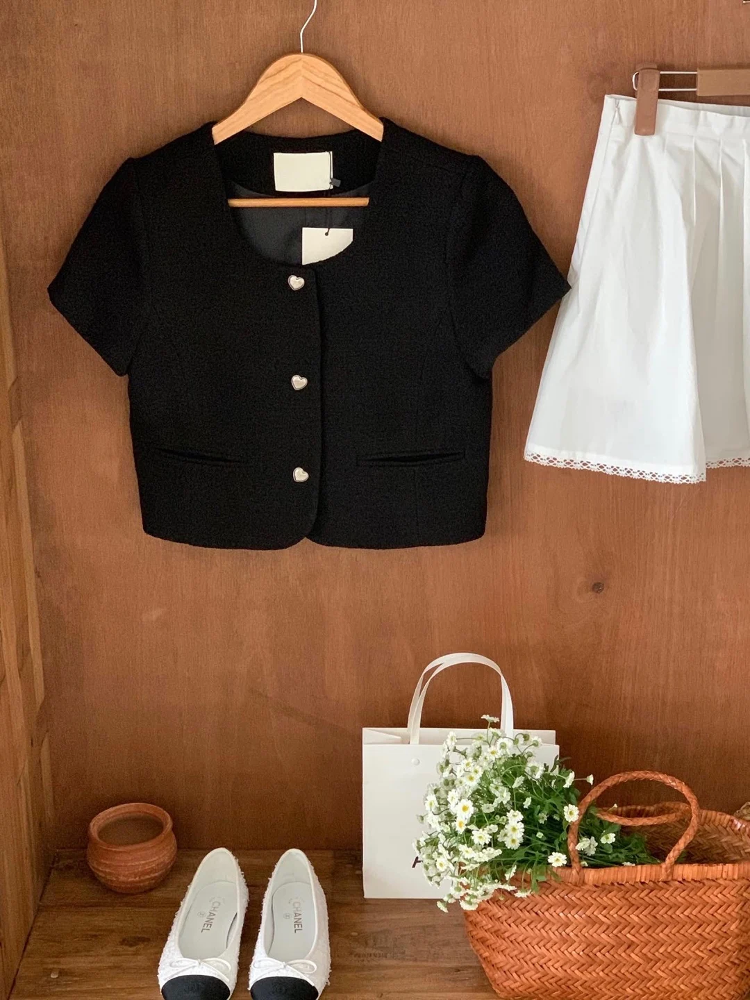 Yipinpay Pink Tailored Coat Temperament Tweed Cardigan Love Button Jackets for Women Summer 2023 Korean Style Coats Ropa Mujer