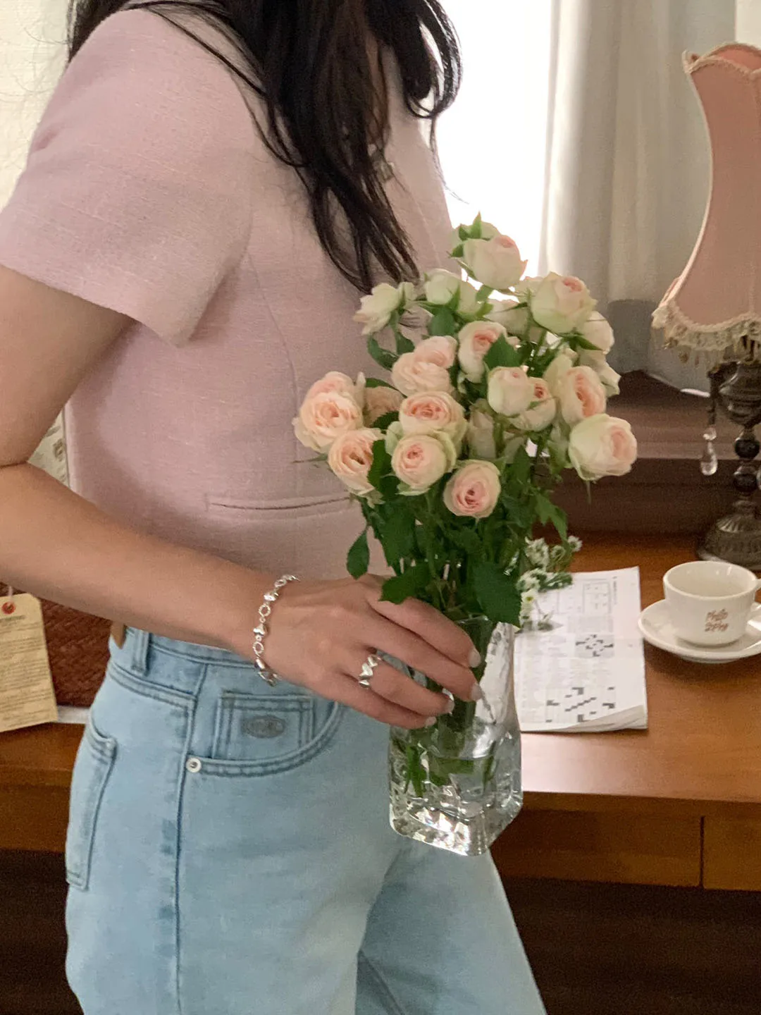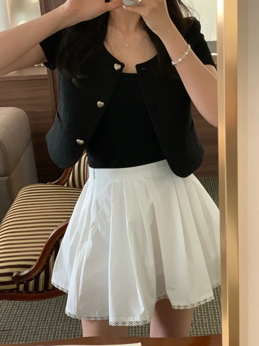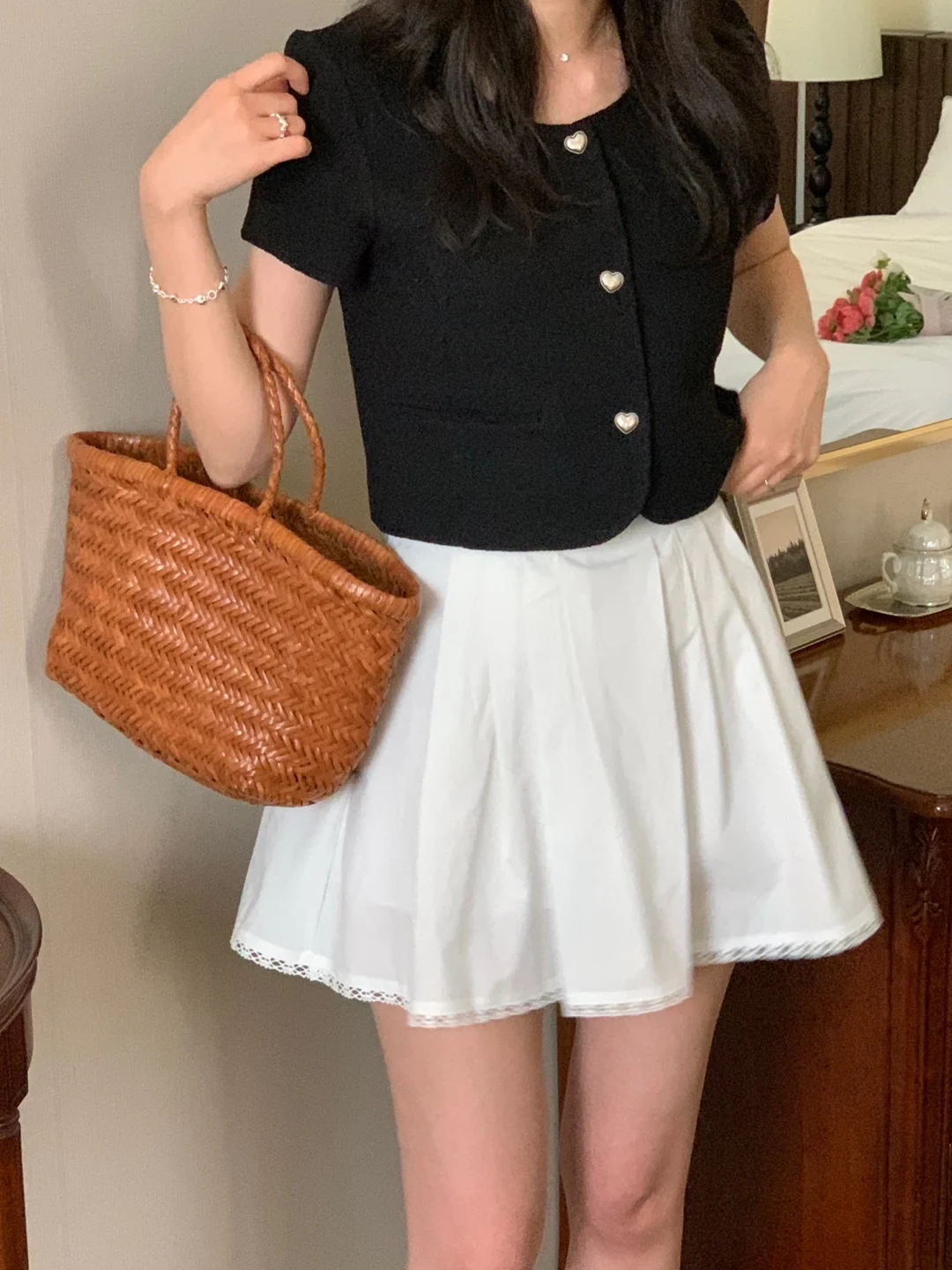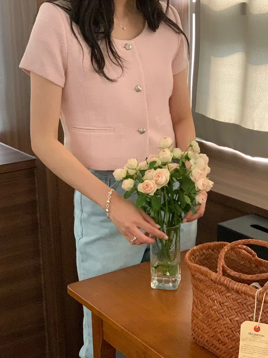 Yipinpay Pink Tailored Coat Temperament Tweed Cardigan Love Button Jackets for Women Summer 2023 Korean Style Coats Ropa Mujer