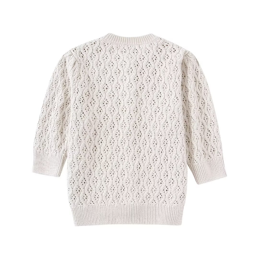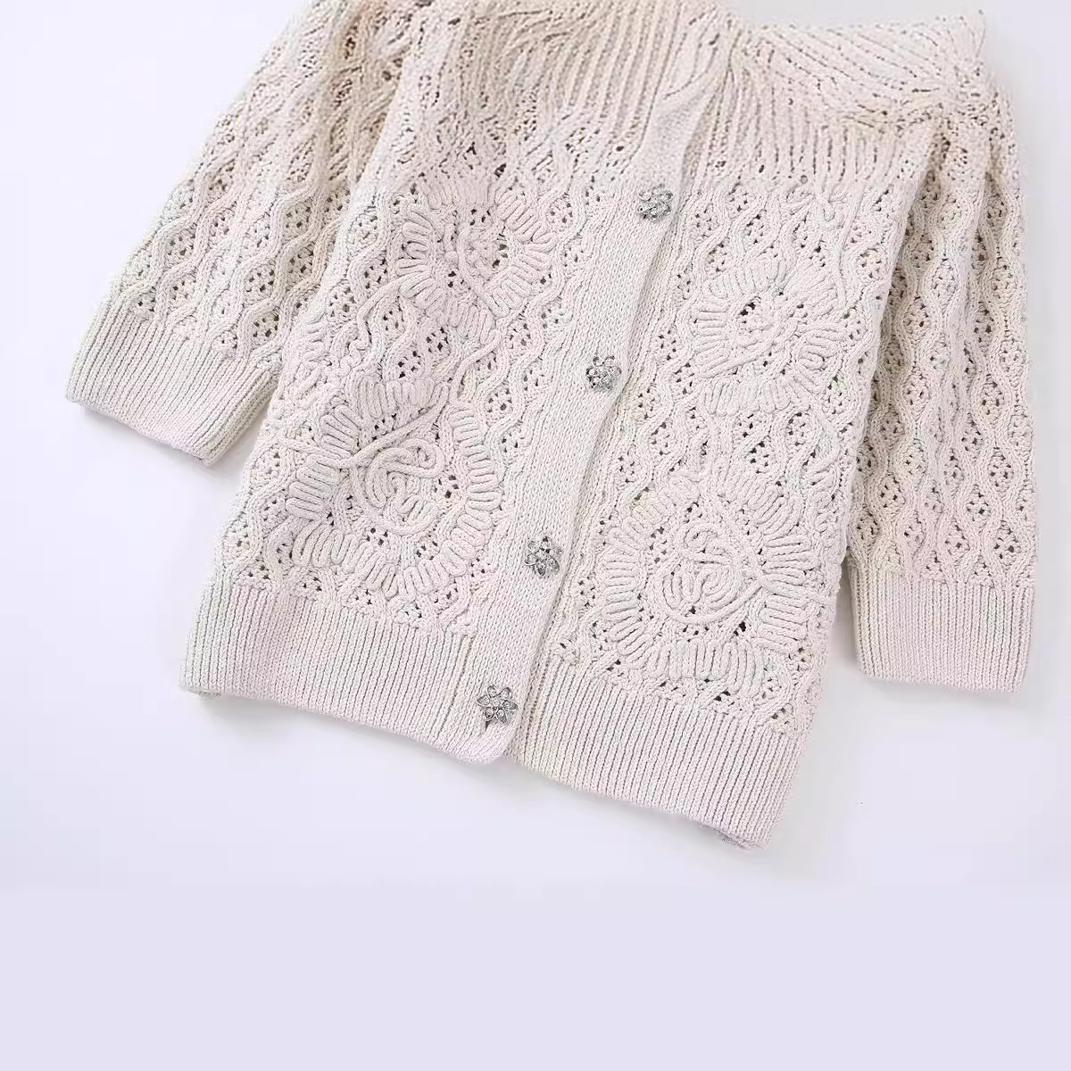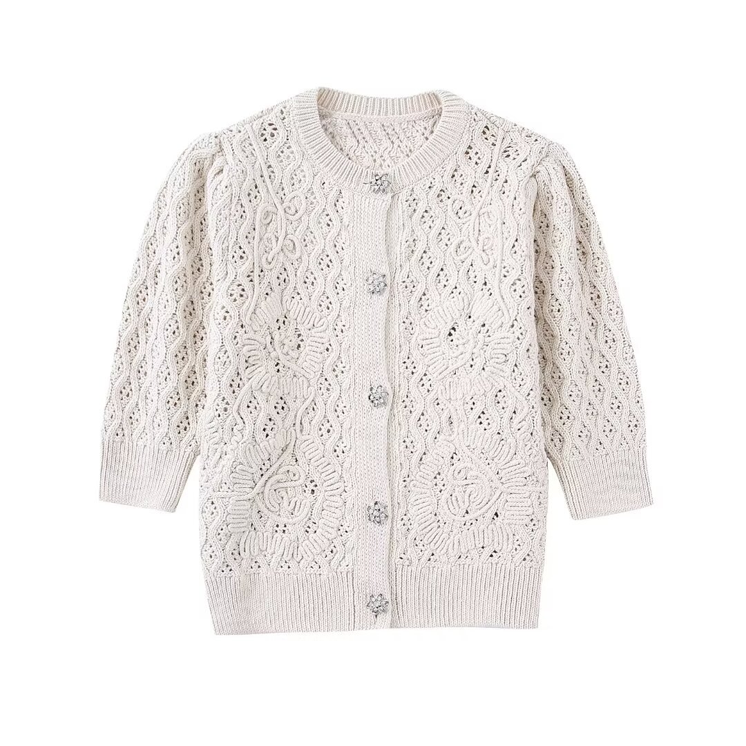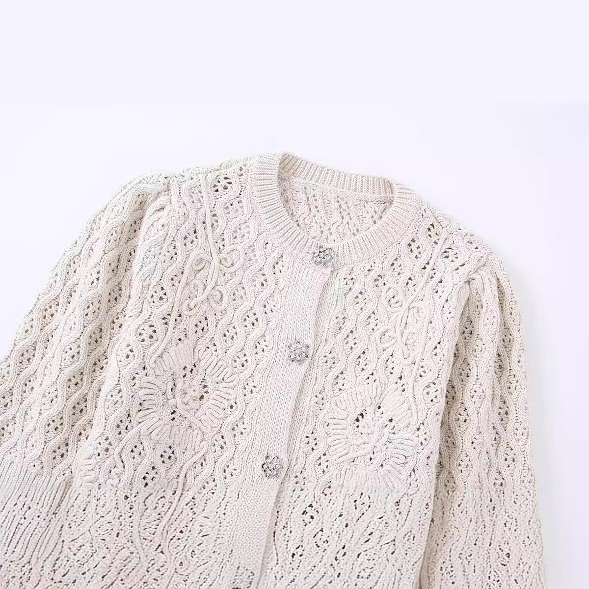 Yipinpay Spring Artificial Jewelry Button Decoration Round Neck Knitted Coat 5802117