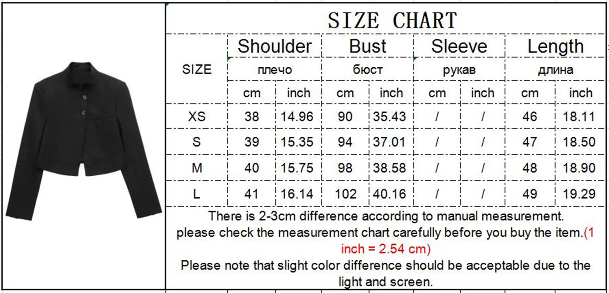 Closure Type:  Single Breasted