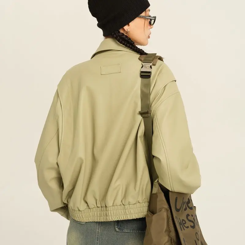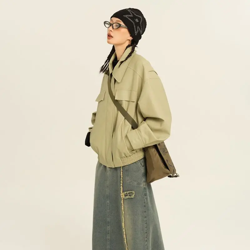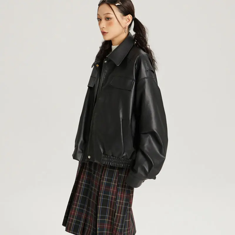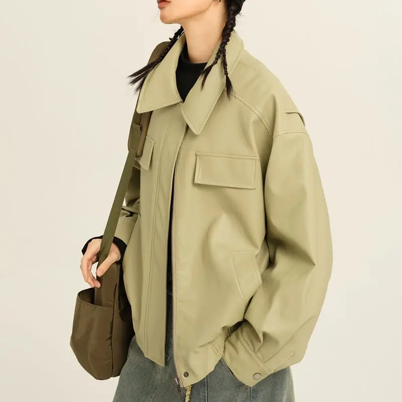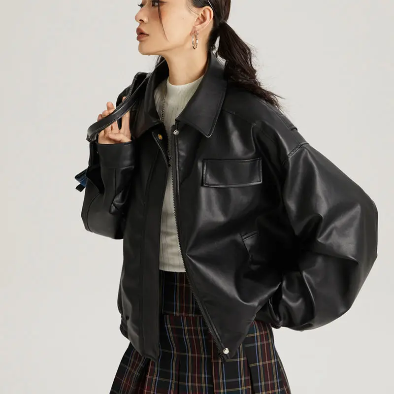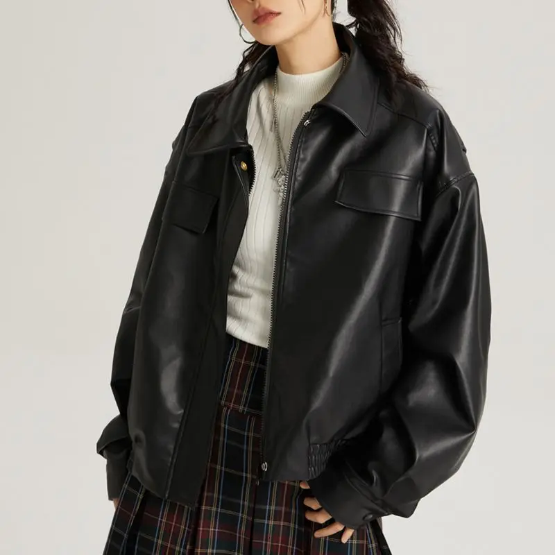 Yipinpay Style Leather Jacket Women Streetwear Moto Biker Zipper Leather Coat High Street Fashion Trend Loose PU Leather Jacket 2023