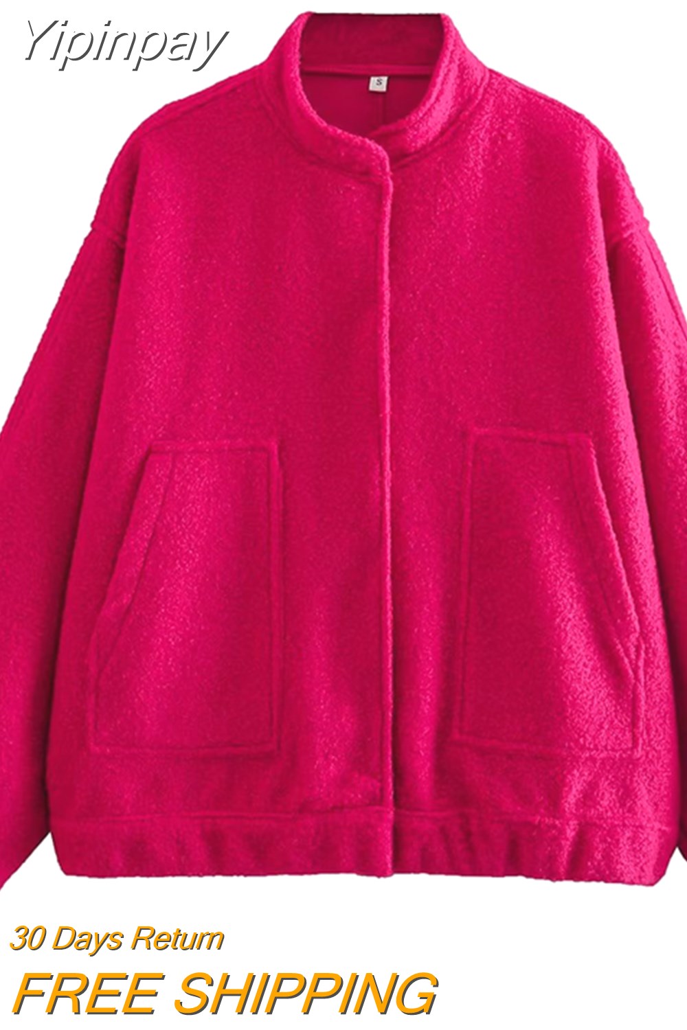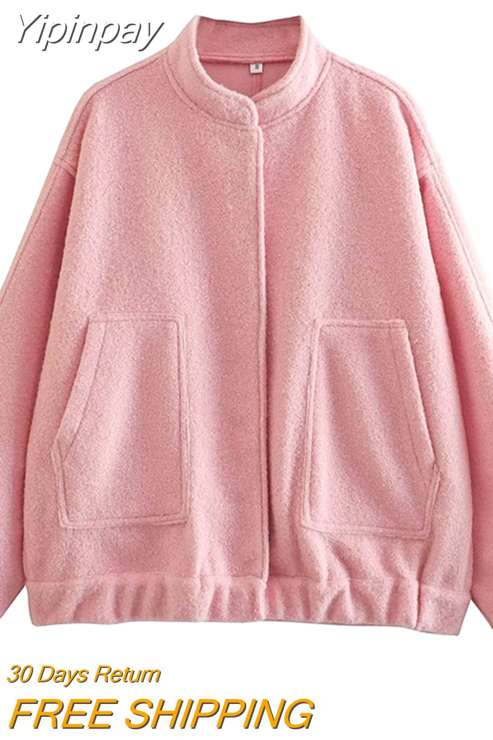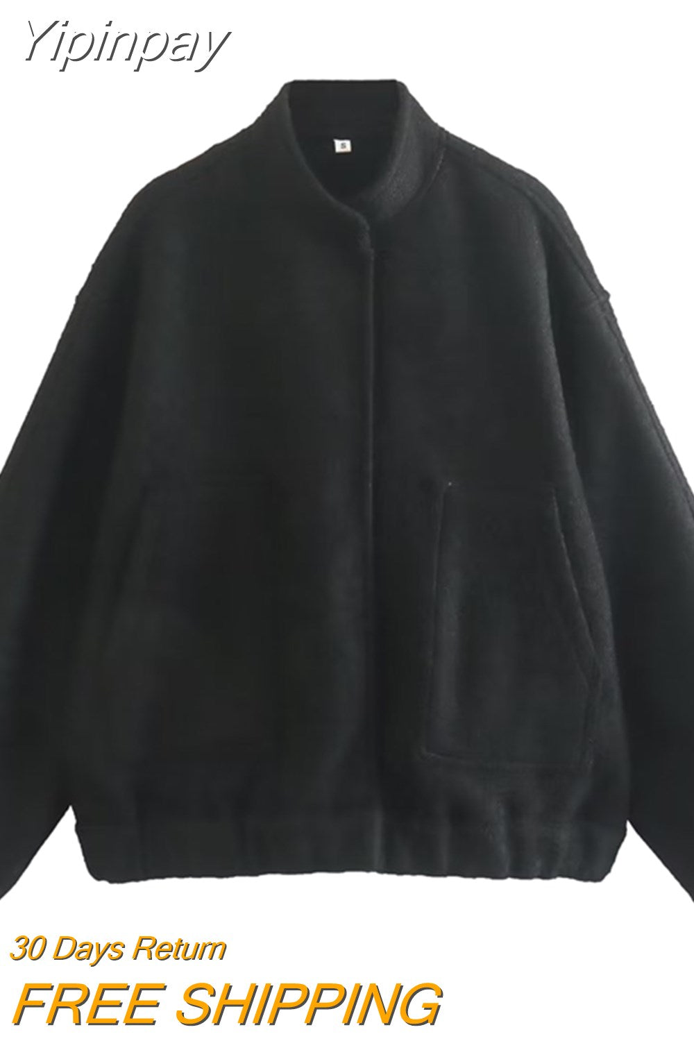 Yipinpay TRAF Fashion Jackets for Women 2023 Autumn Winter Long Sleeve Casual Coats Female Chic Elegant Loose Jacket New Outerwears