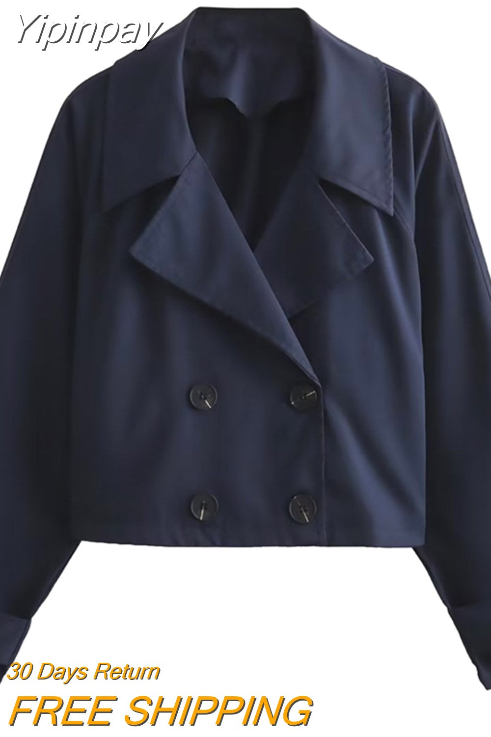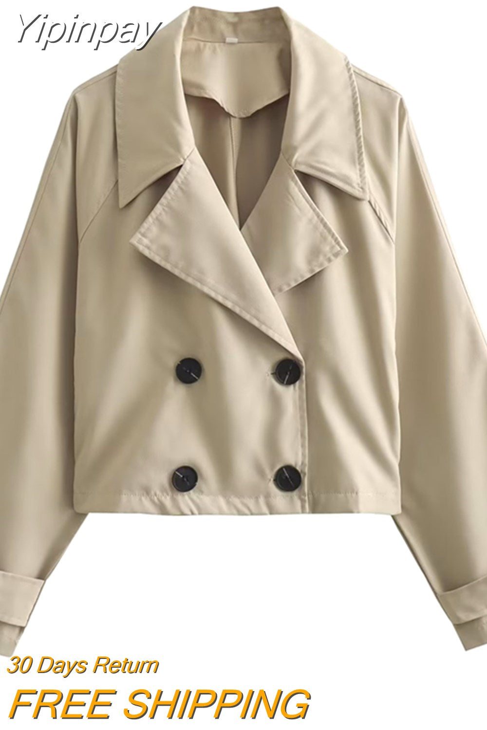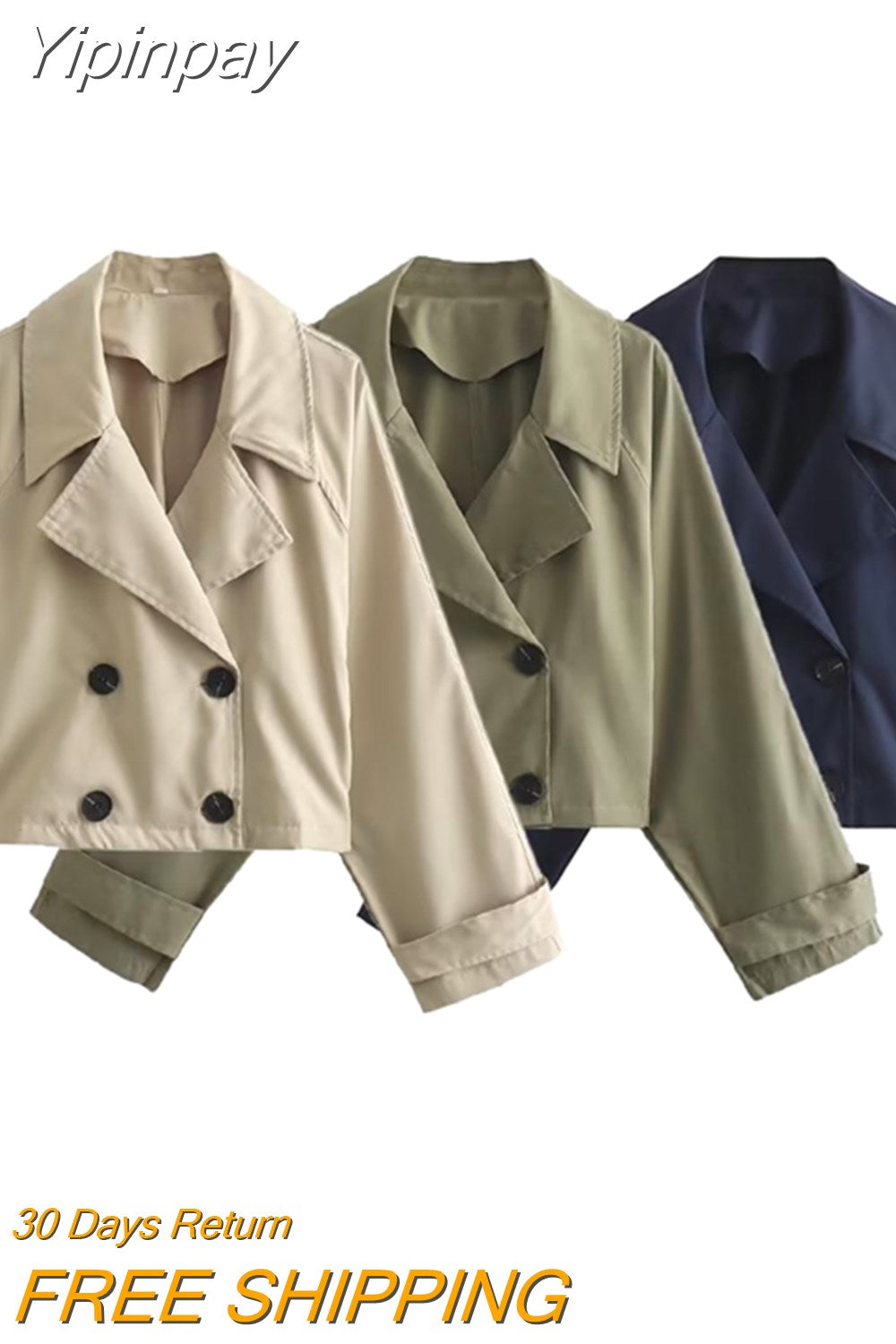 Yipinpay TRAF Fashion Windbreaker Style Jackets for Women 2023 Chic Double-breasted Coats Female Turndown Collar Jacket Outerwear