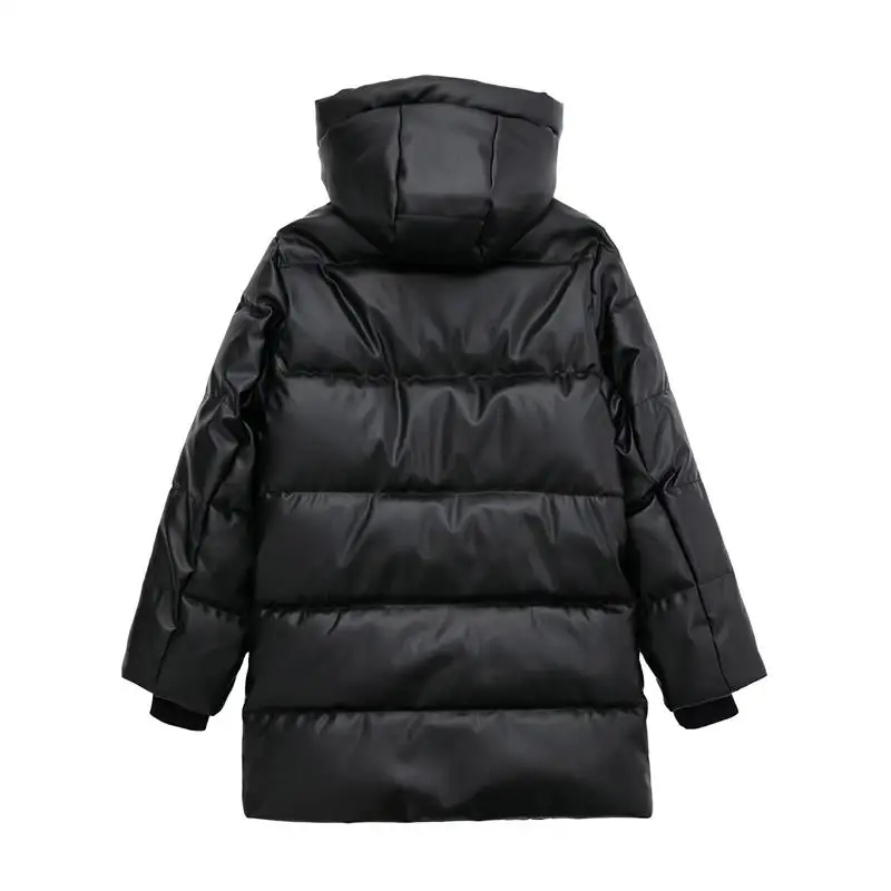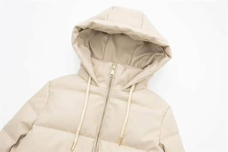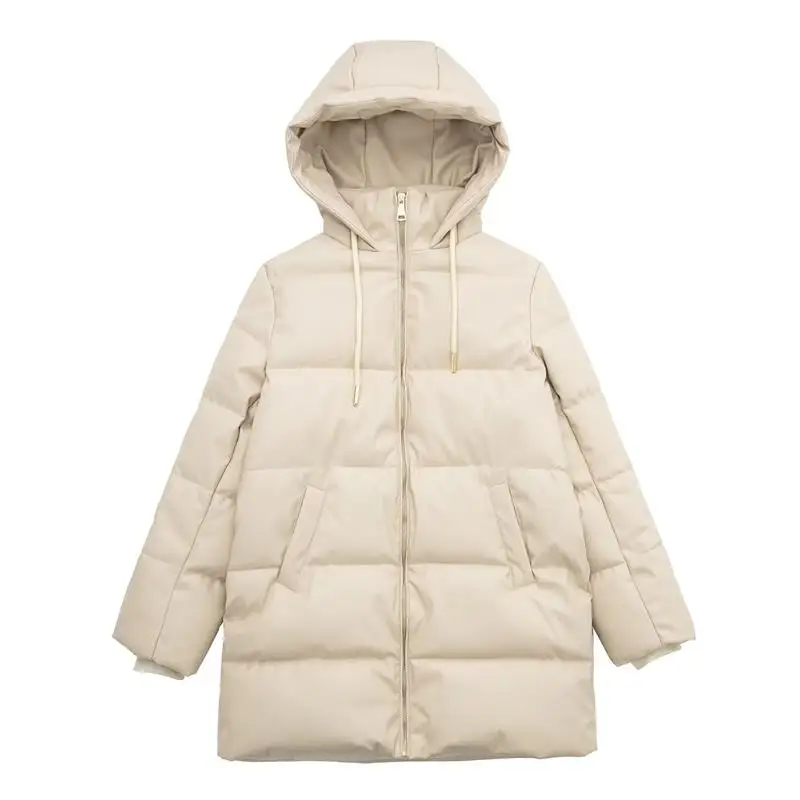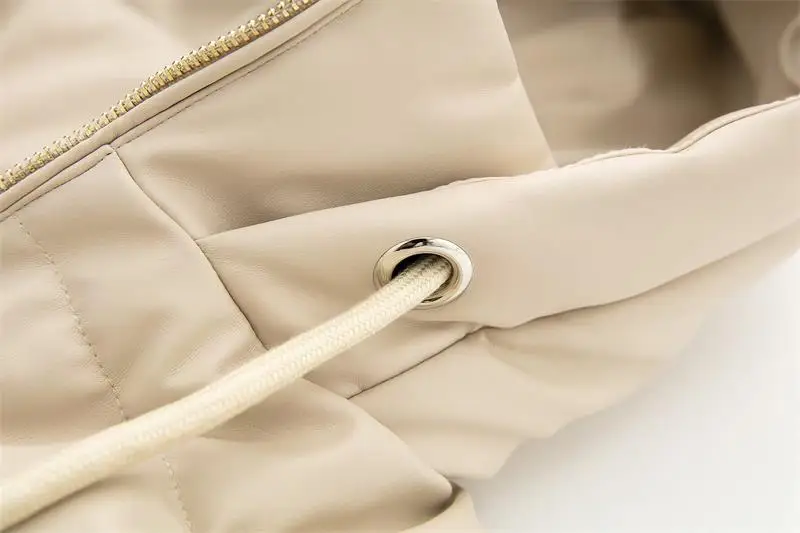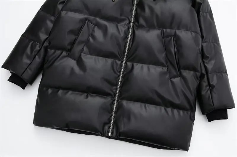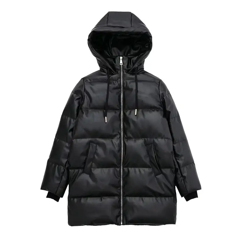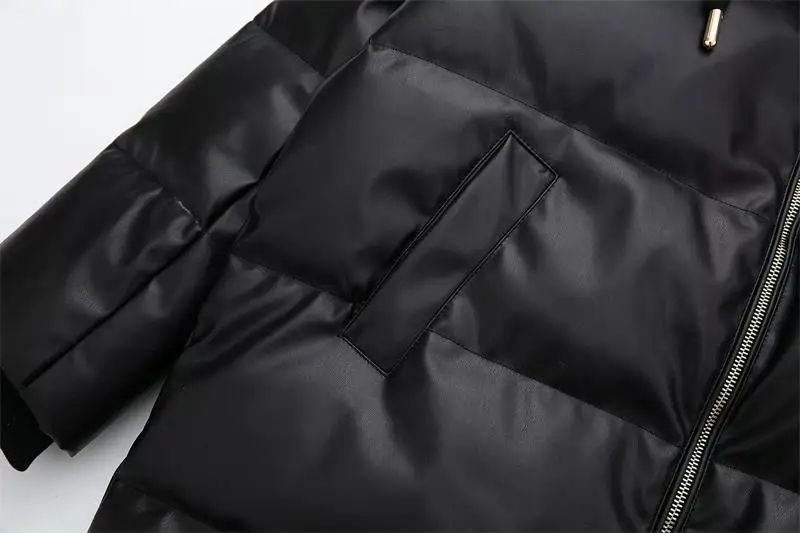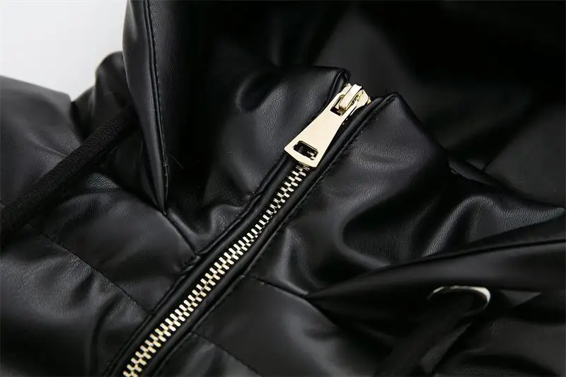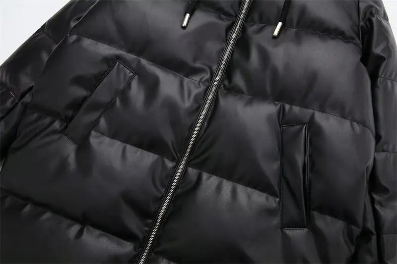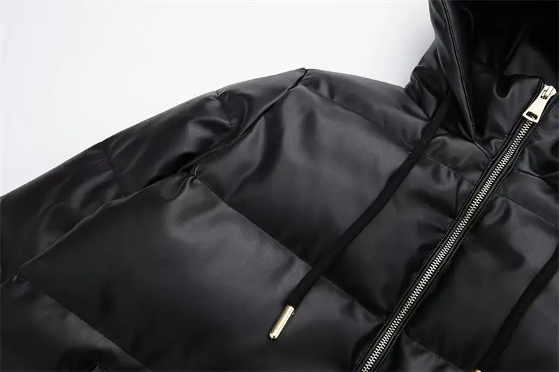 Yipinpay Winter Women's Leather Cotton Coat 2023 Ladies Fashion Thicken Warm Hooded Parkas Casual Cold Street Zipper Outwear