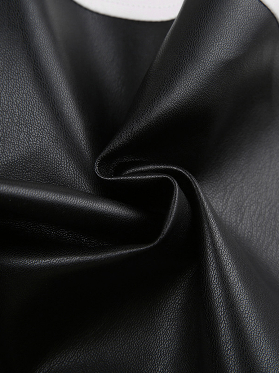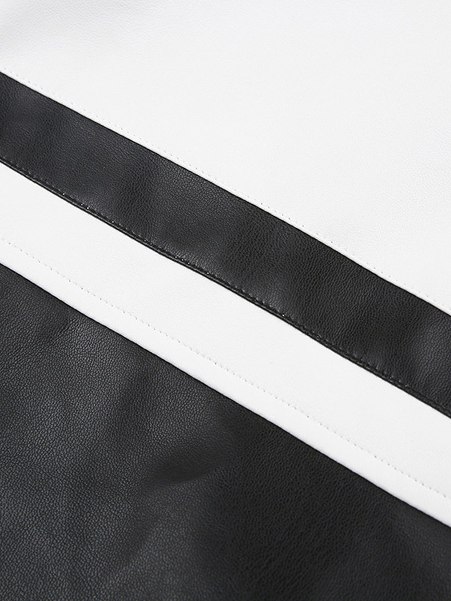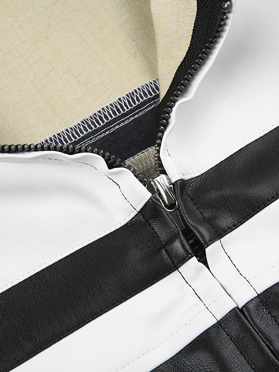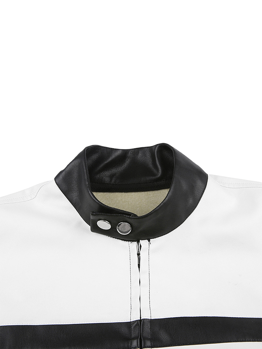Yipinpay Women Gothic PU Leather Jacket Contrast Color Stand Collar Long Sleeve Zip-up Crop Top Bomber Coat Cool Racing Outwear