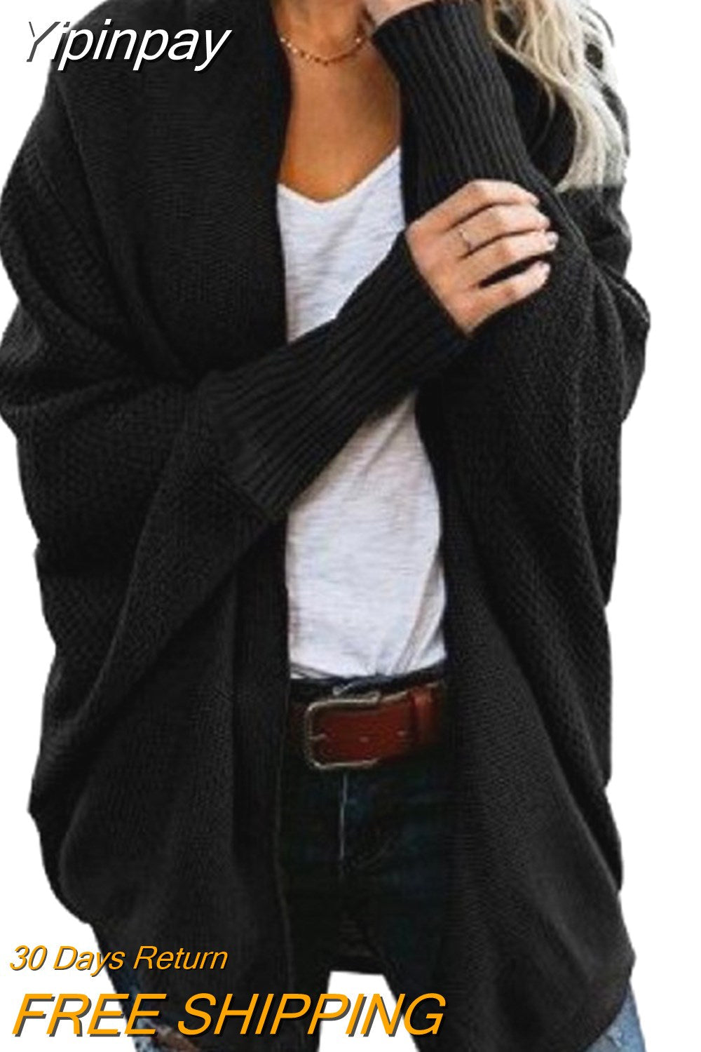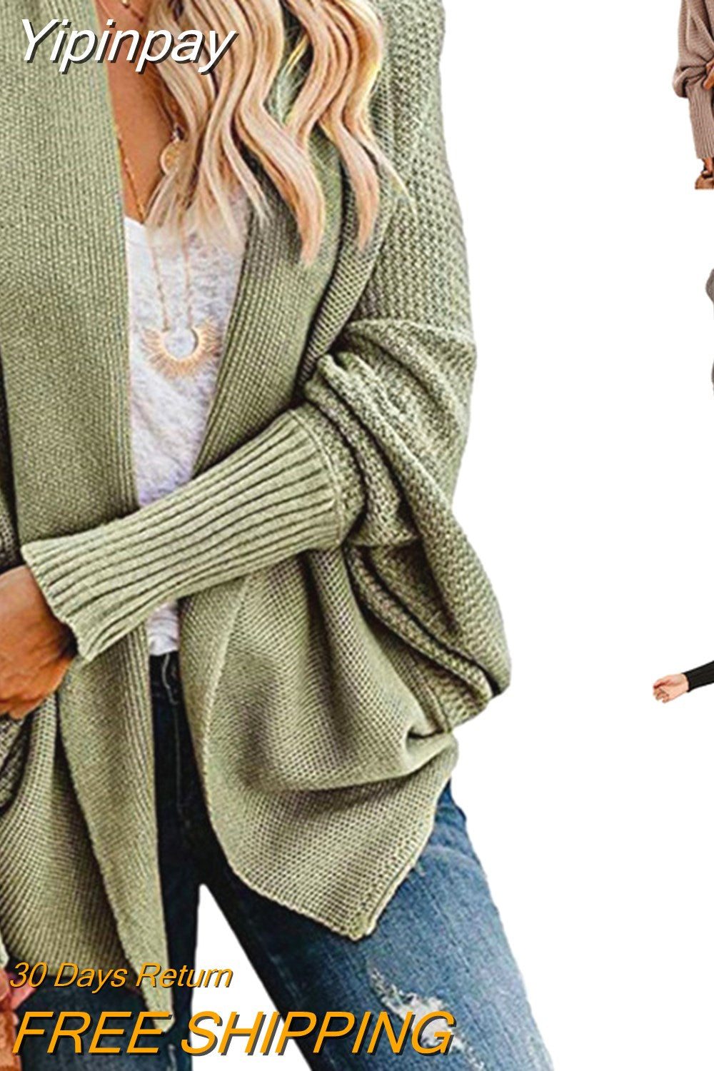Yipinpay Women Knitted Cardigan Spring Autumn Winter Coats Solid Color Long Bat Sleeve Open Front Sweater Women Clothes