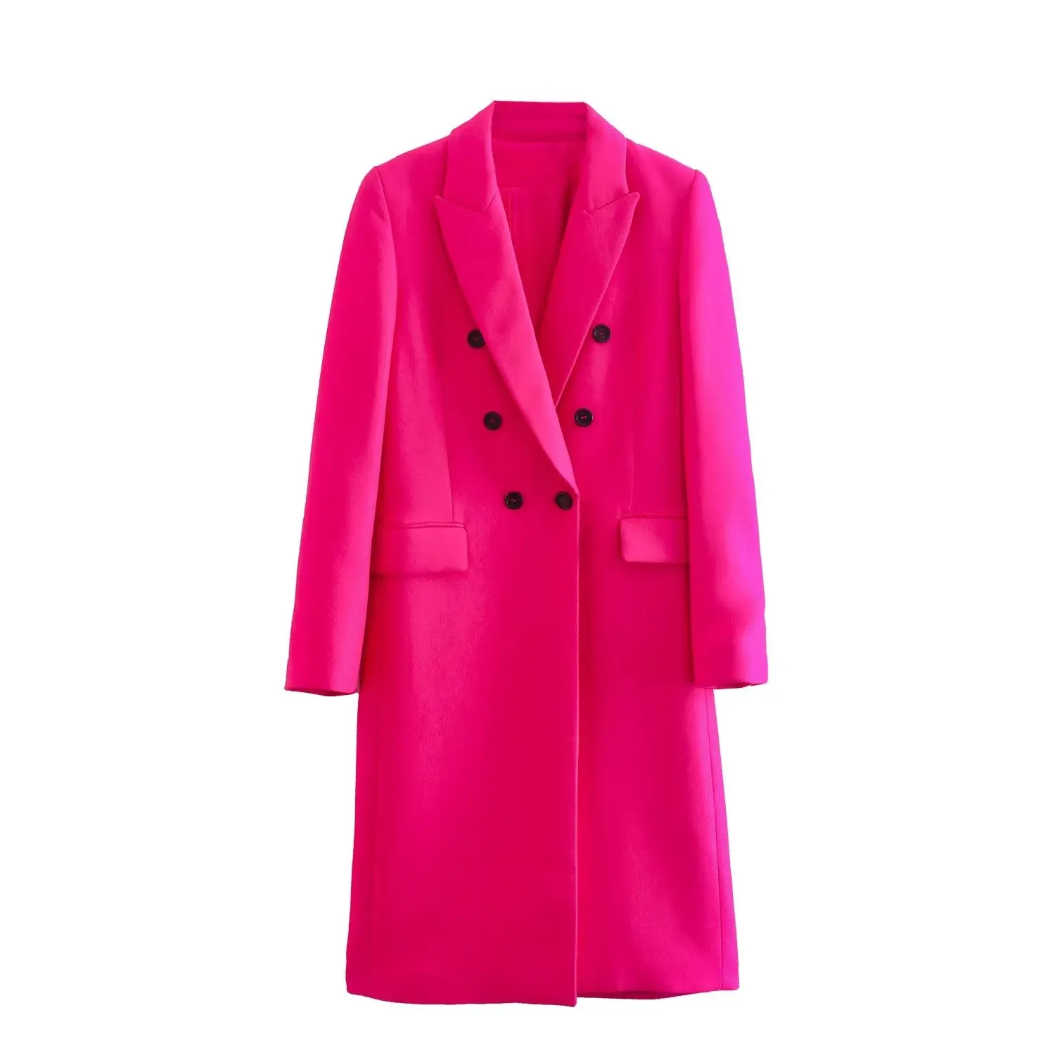 Yipinpay Women Solid Coats 2023 Thick Lapel Double Breasted Long Coats Lady Outerwear Fashion Long Clothes 2023 Autumn Winter