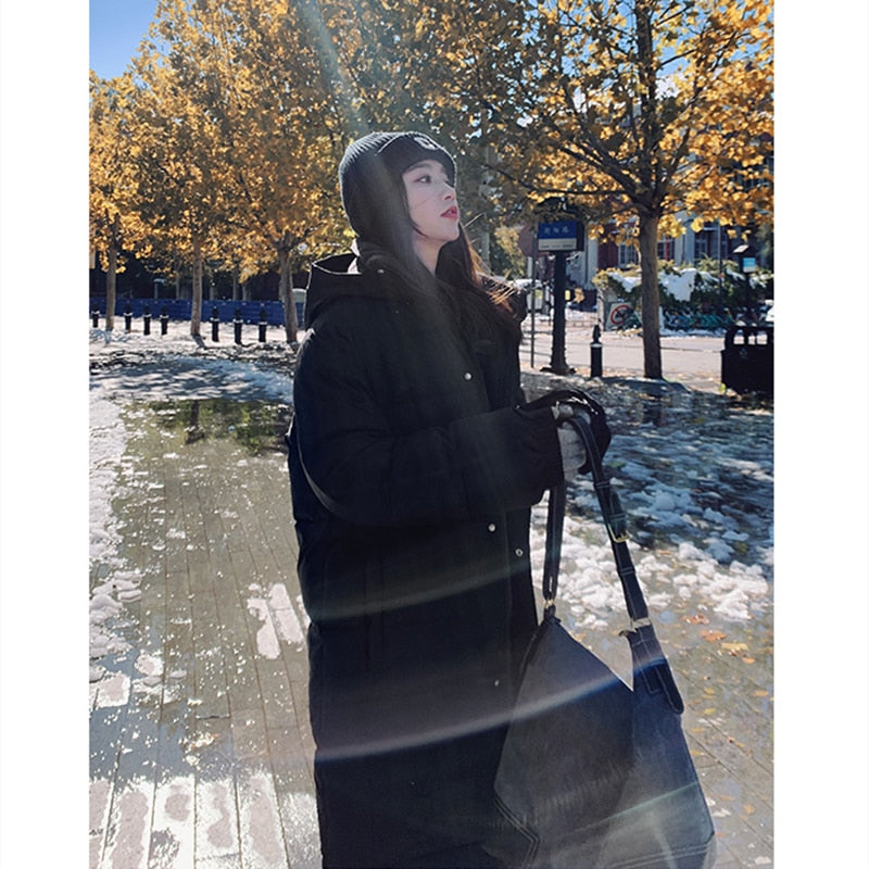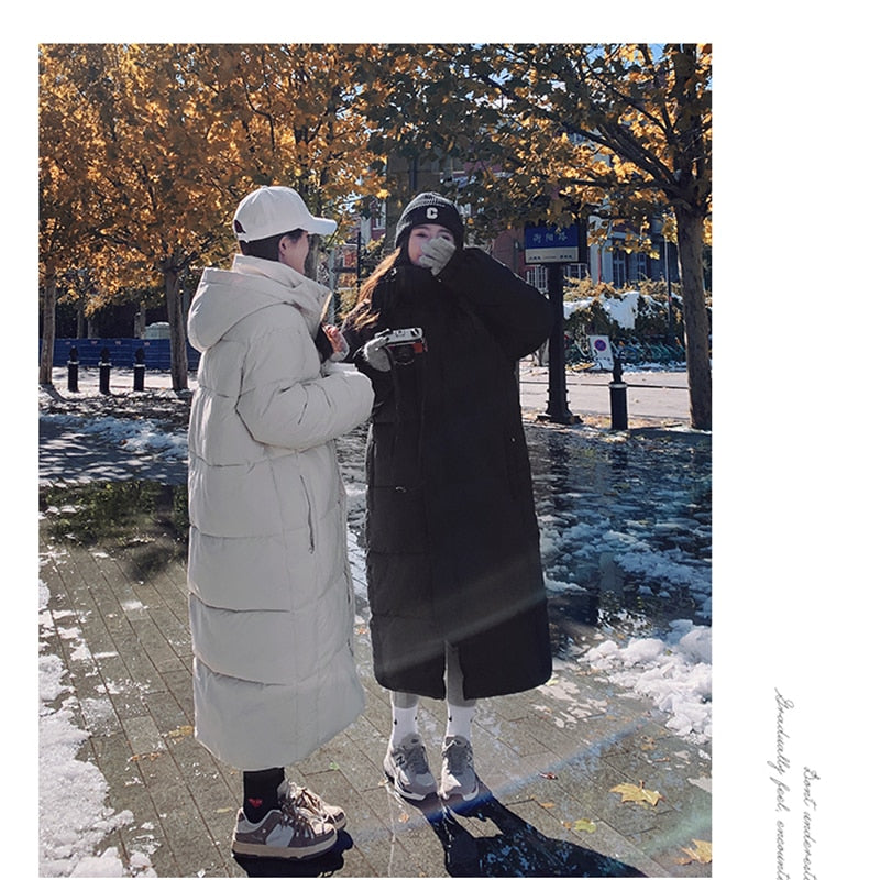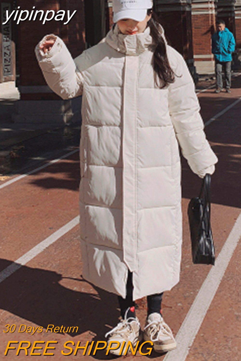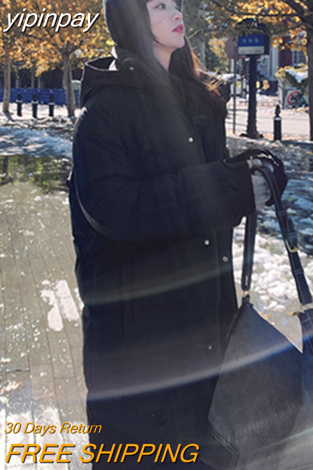 yipinpay Womens Parka Length Jacket Baggy Winter Thicken Warm Korean Fashion Casual Mom Hooded Oversized Puffer Coat Bubble Outwear