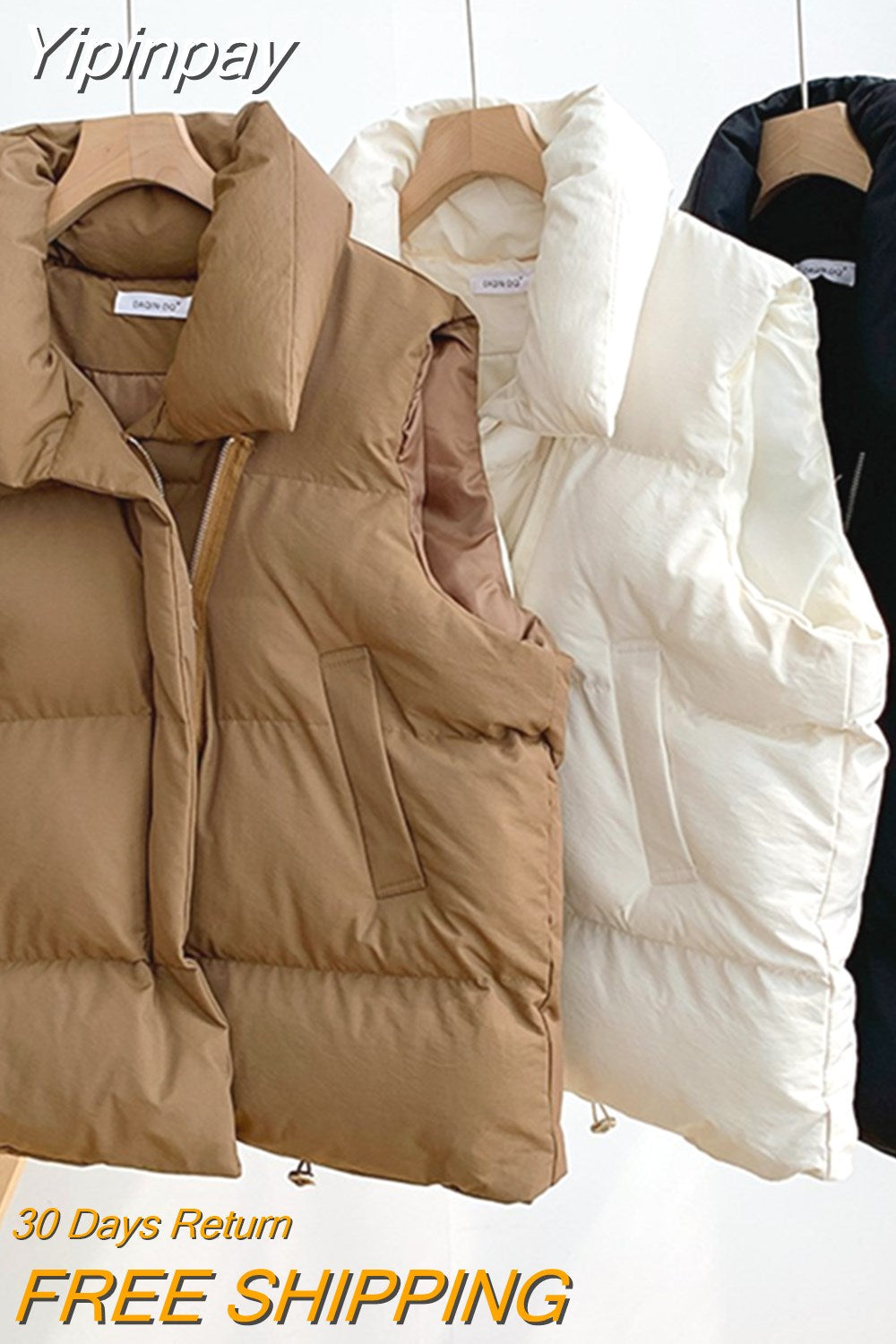Yipinpay Women's Vest Stand Collar Zipper Sleeveless Padded Puff Jacket Overcoat Solid Color Loose Drawstring Waistcoat Vest Coat