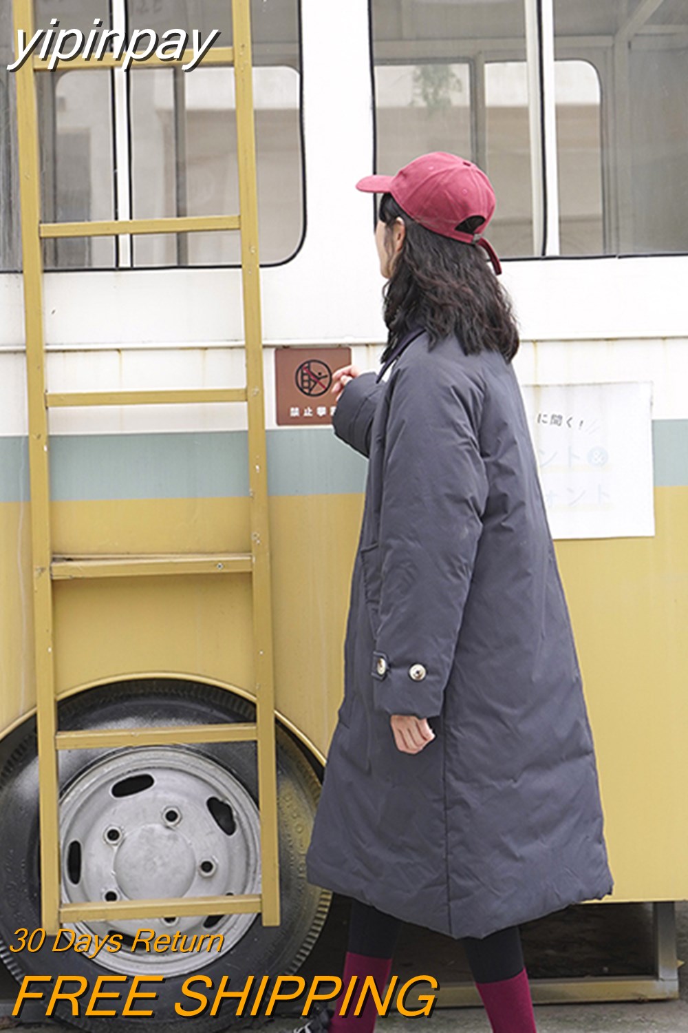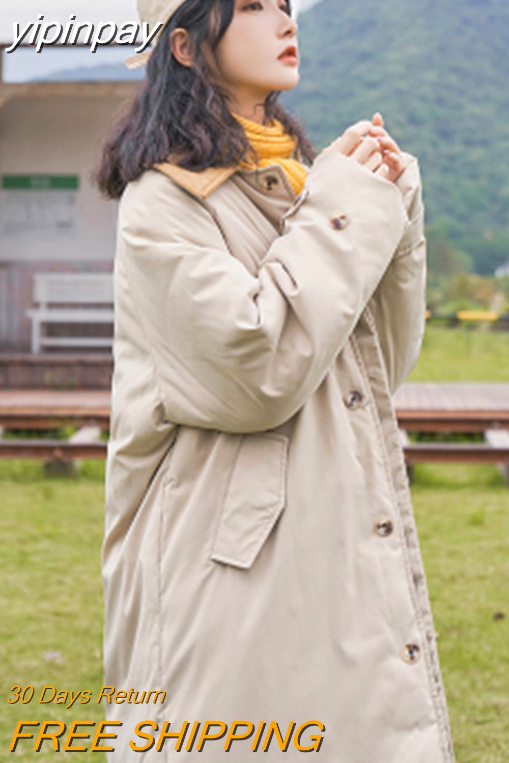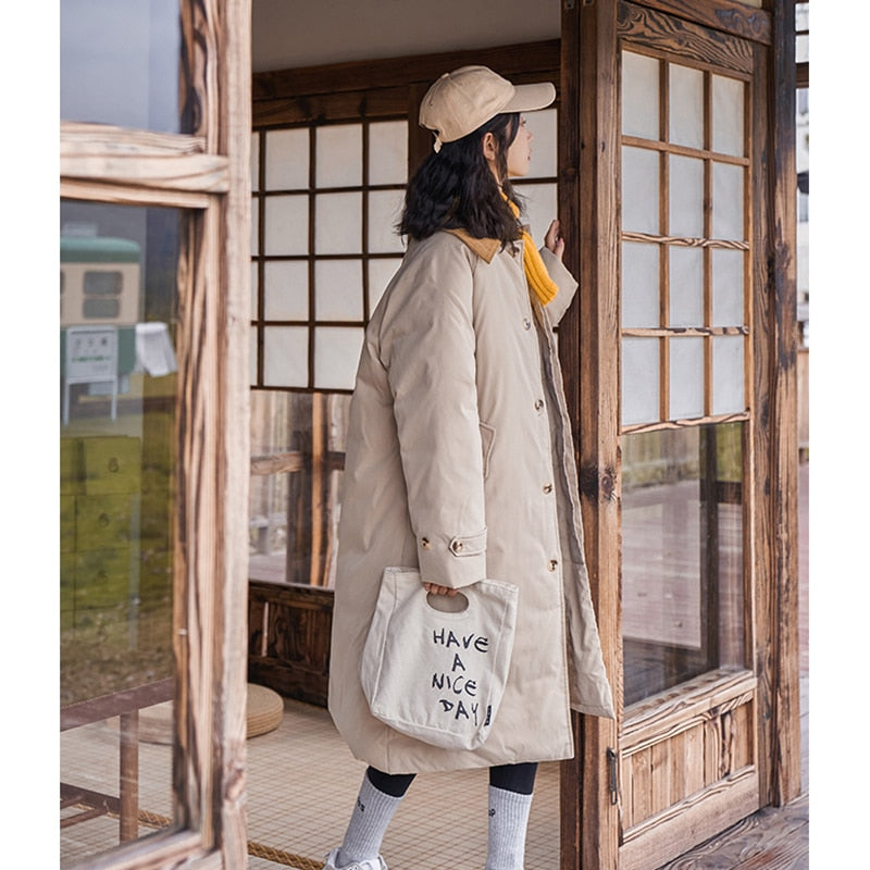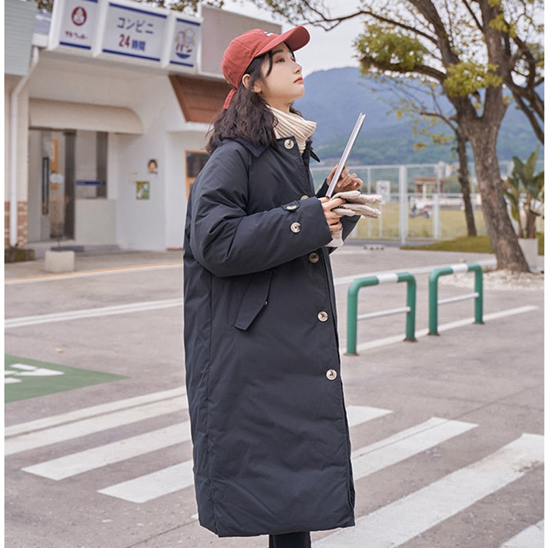 yipinpay Womens White Fashion Warm Down Clothes Korean Simplicity Baggy Coat Casual Medium And Long Ladies Puffer Padded Outwear Winter