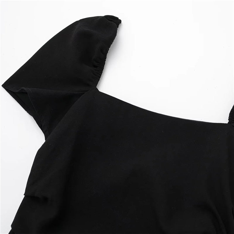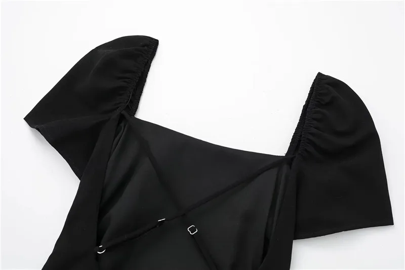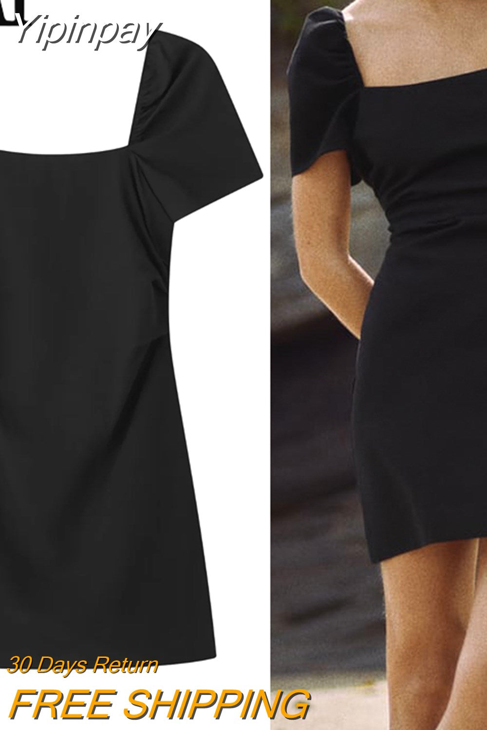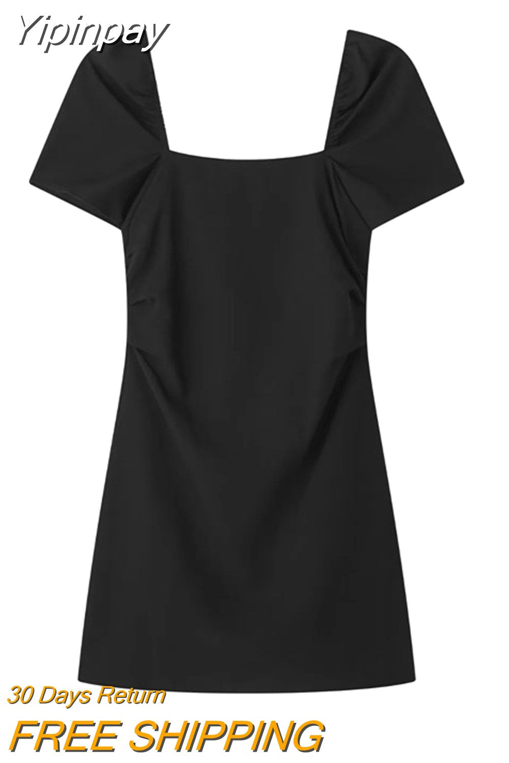 Yipinpay Black Backless Dress Woman Summer Short Dresses For Women 2023 Square Neck Puff Short Sleeve Mini Dress Sexy Party Dresses