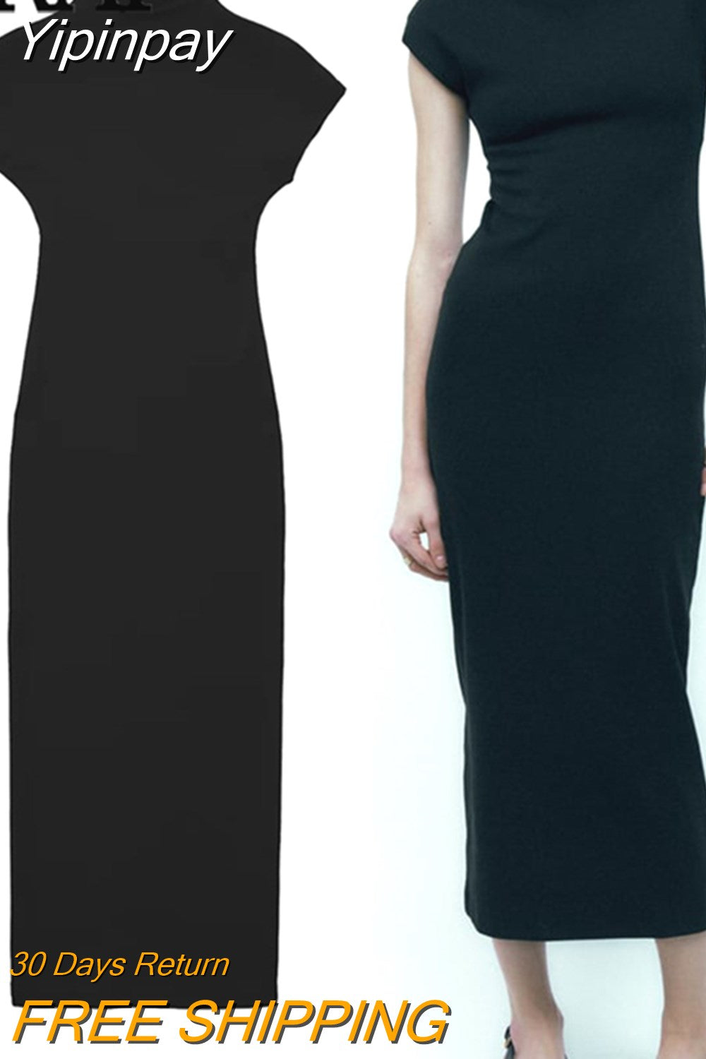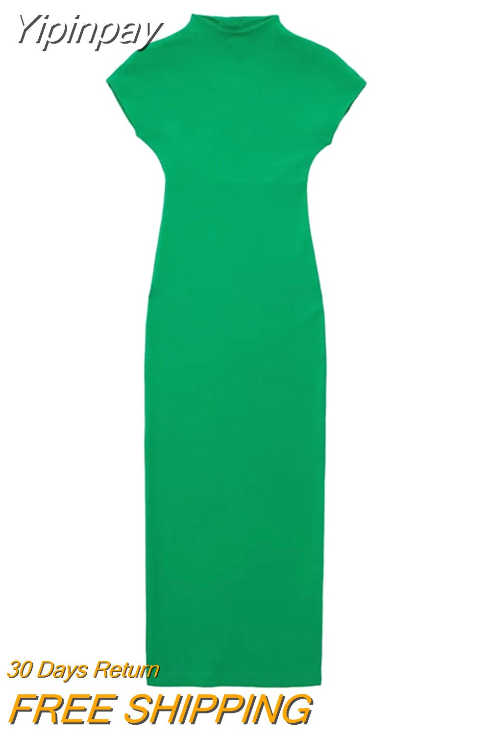 Yipinpay Black Long Dresses For Women 2023 Green Bodycon Dress Women Short Sleeve Midi Dress Woman Summer Elegant Women's Dresses