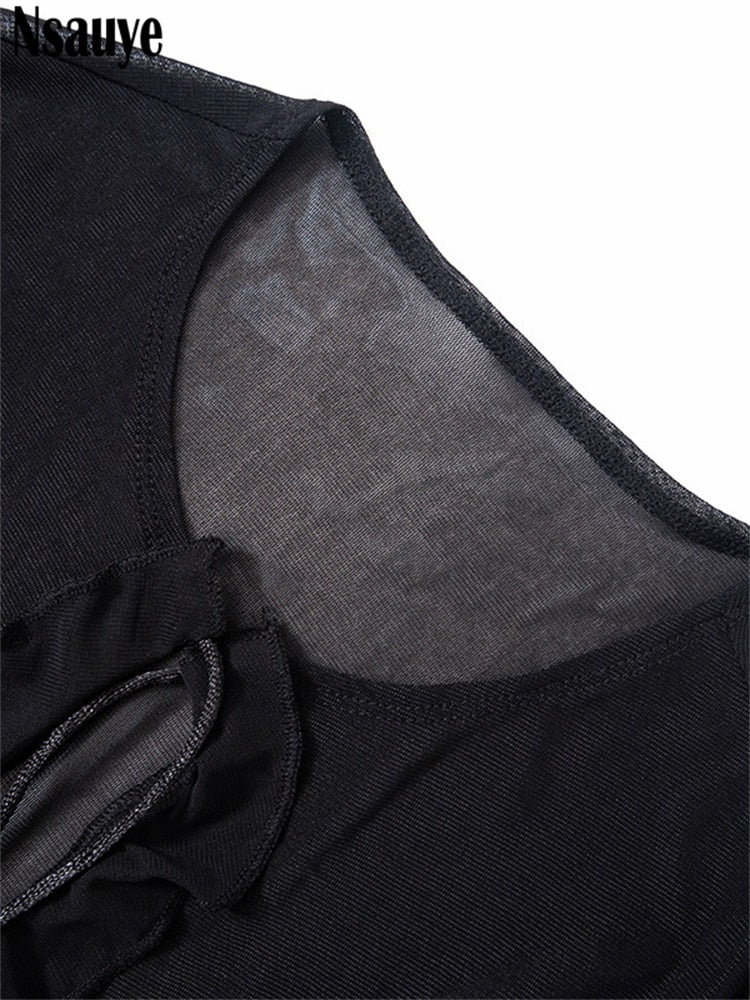 yipinpay Black Y2K Vintage See Though Summer Long Sleeve Beach Ruffles Maxi Dress Mesh Club Party Sexy Bandage Dresses Women 2023 911 920