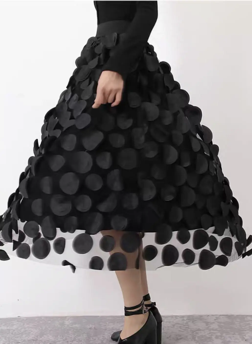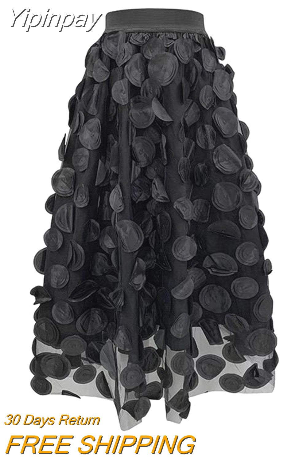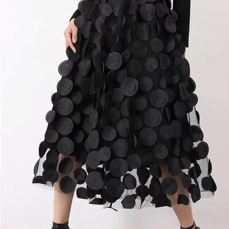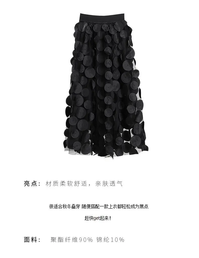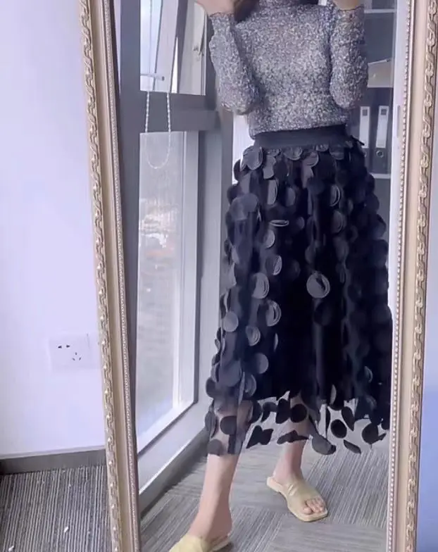 Yipinpay Dot Women Skirt Black 2023 Spring Summer New Korean Fashion Trend Patchwork Mesh Skirt Streetwear Dress Black Largas