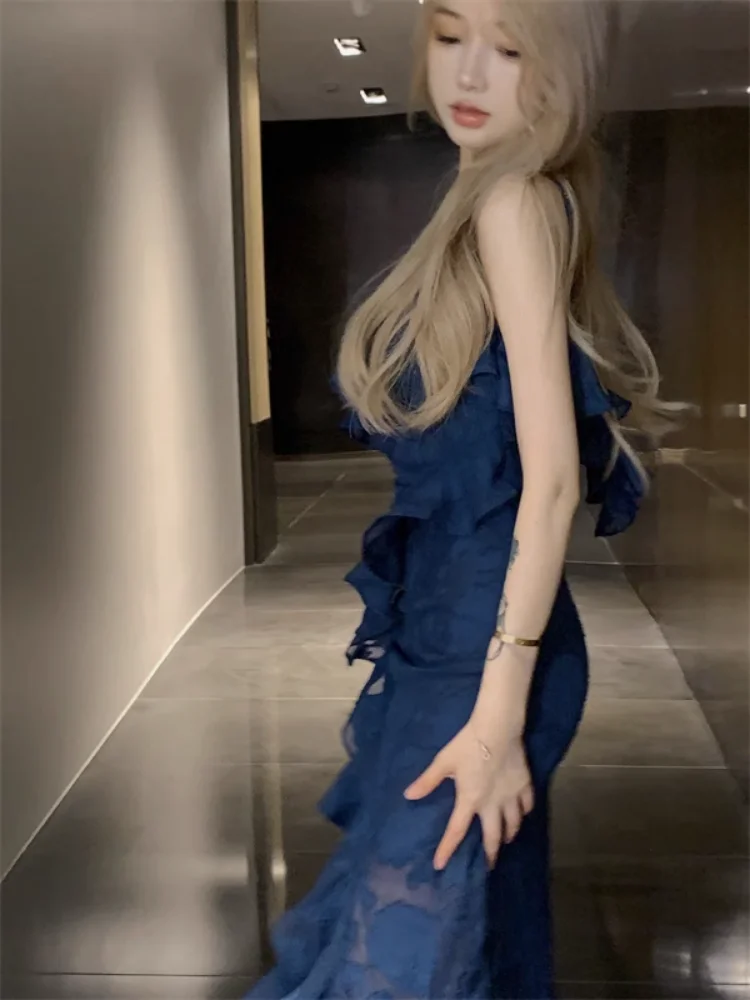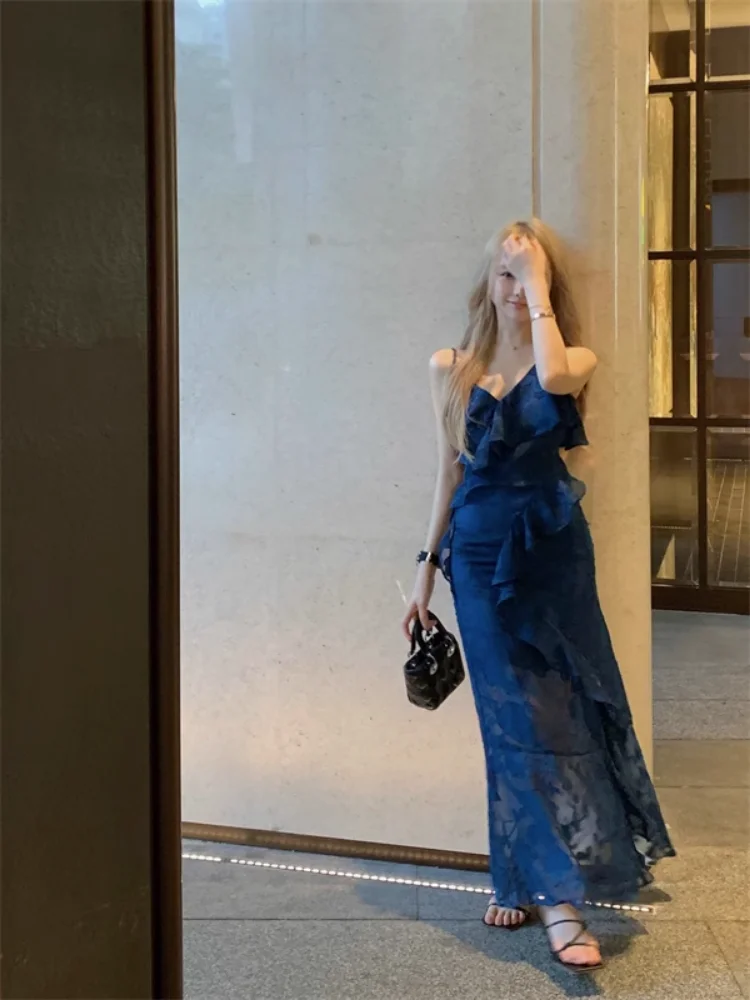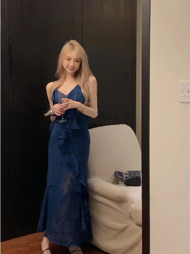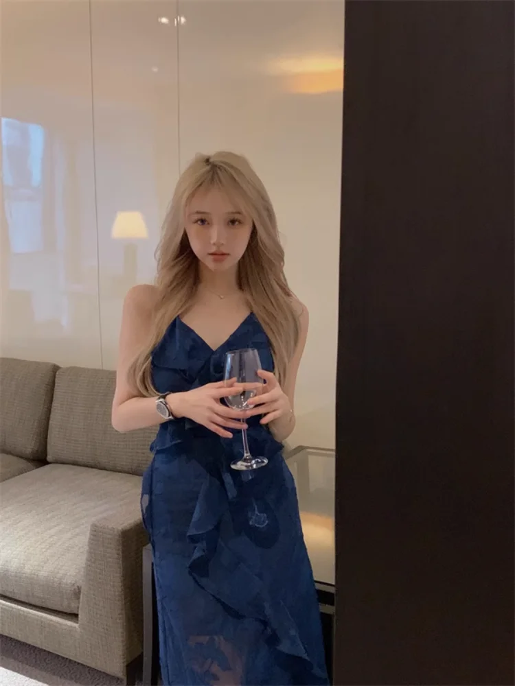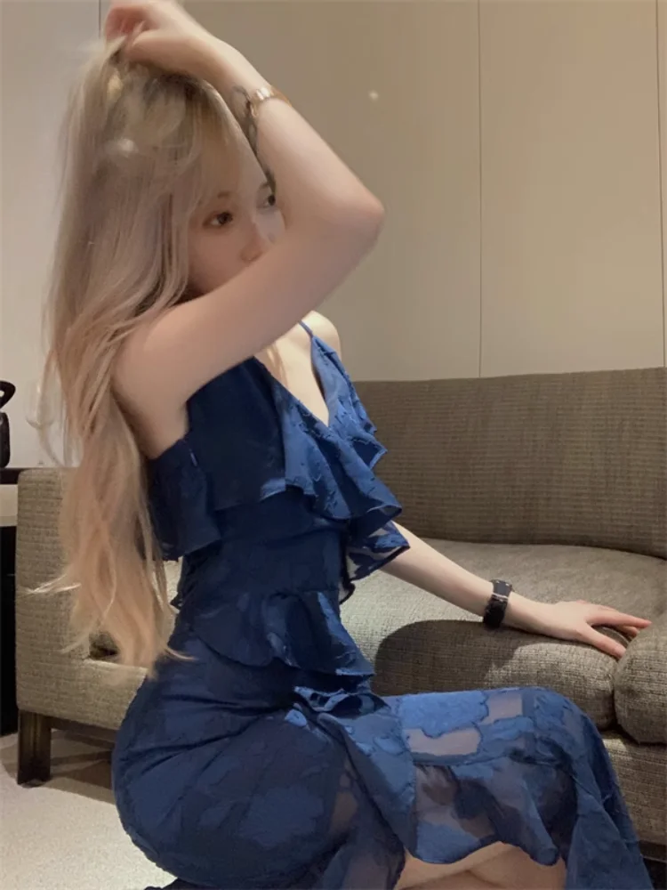 Yipinpay Dresses Women Sexy Elegant French Style Chic Ruffles Slim Sleeveless V Neck Party Dress Ladies Temperament Fashion