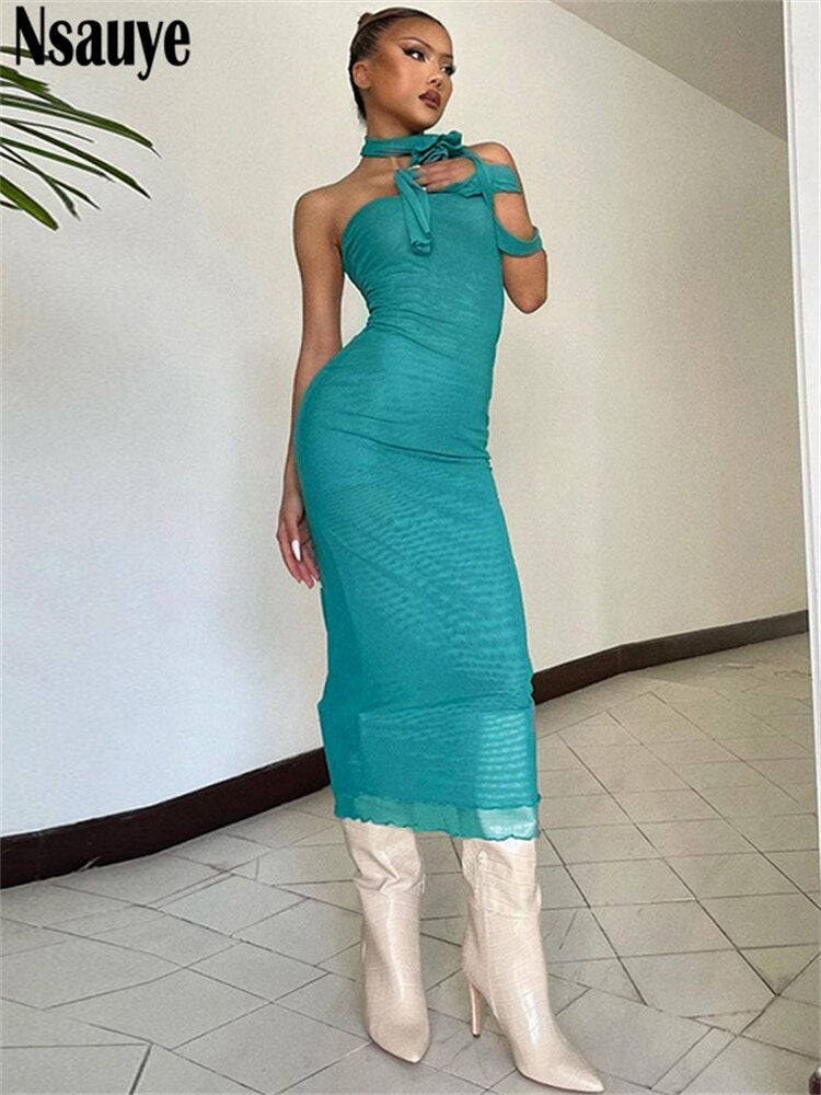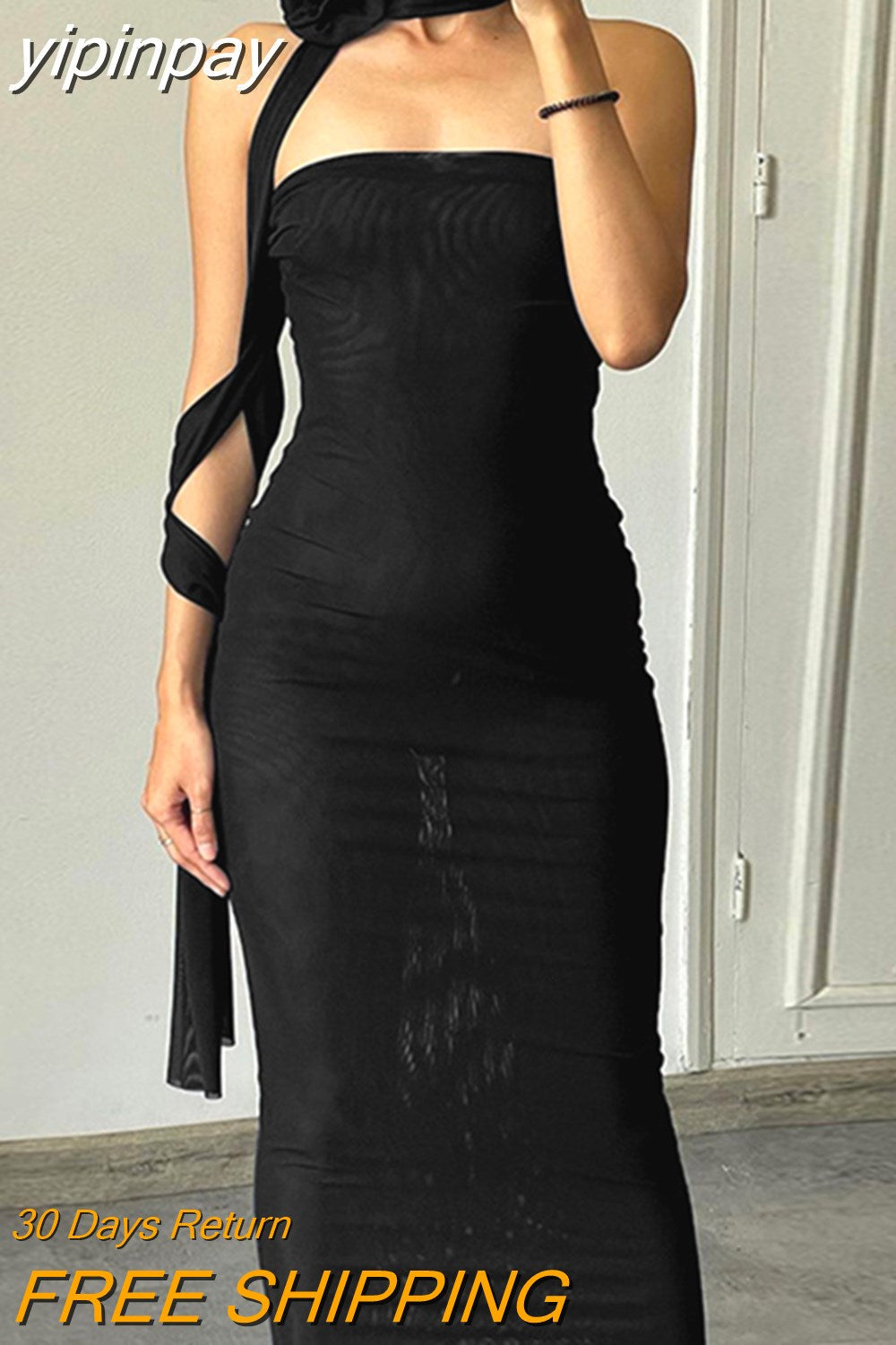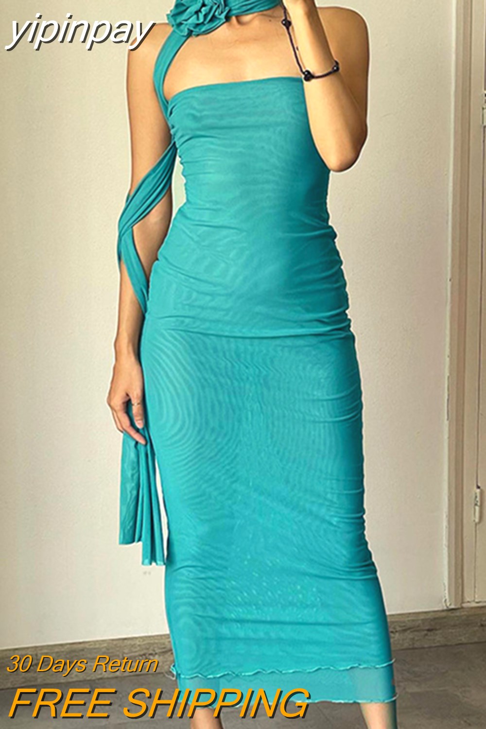 yipinpay Elegant Sleeveless Women Mesh See Through Midi Evening Party Sexy Dress Woman Clothes Summer Beach Fashion Dress Y2K 2023