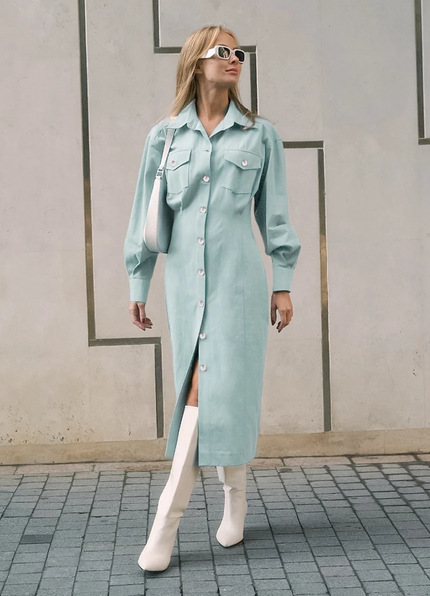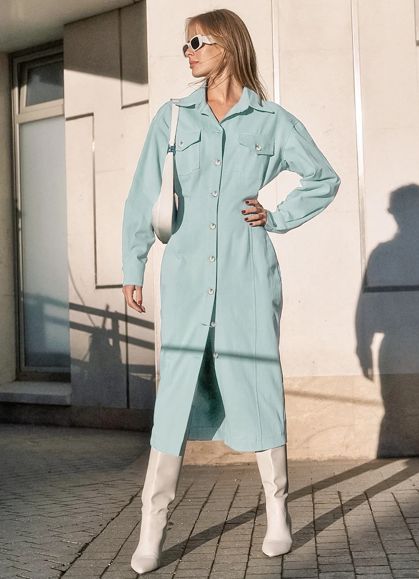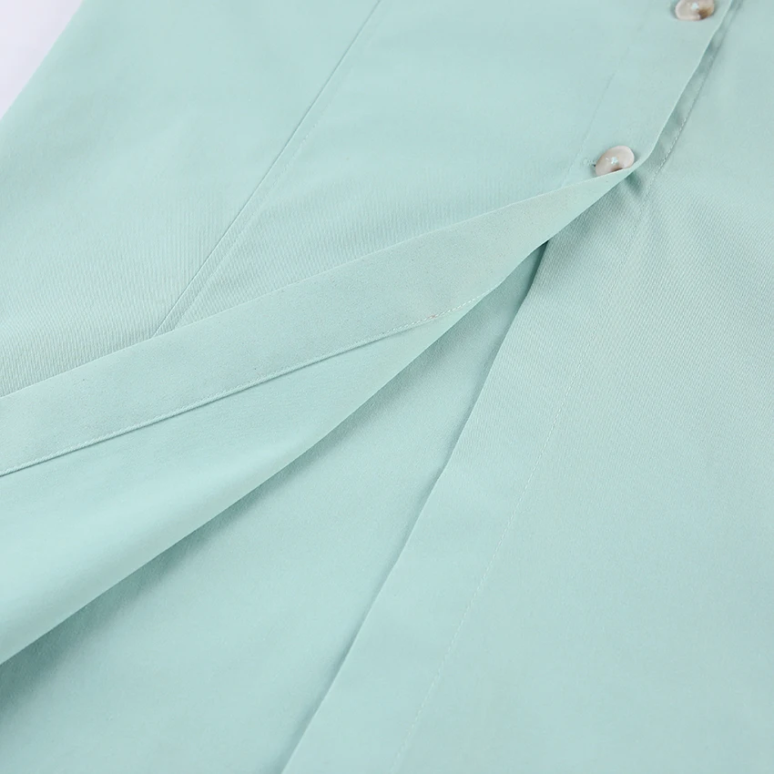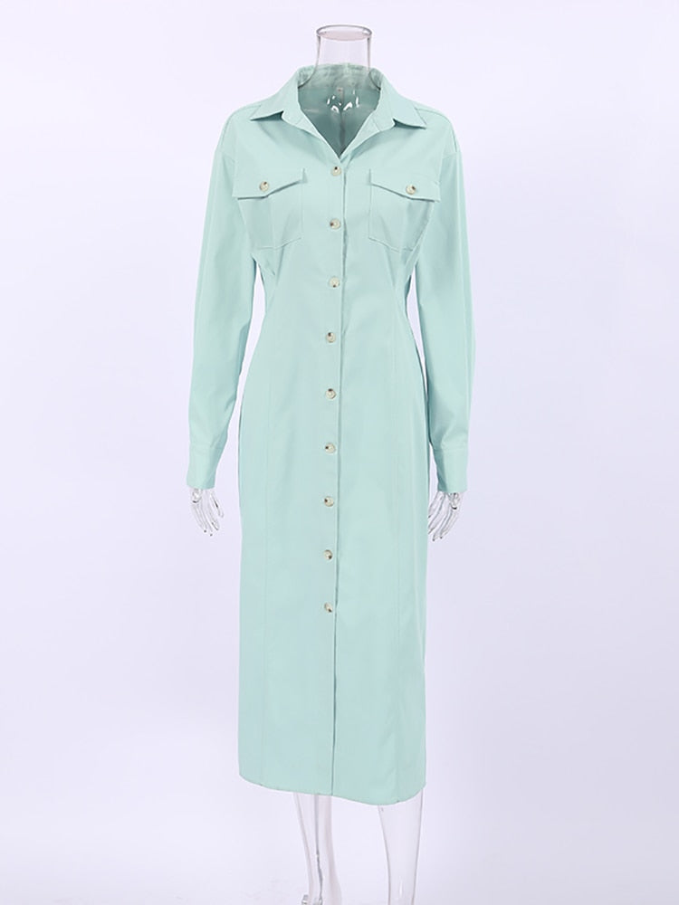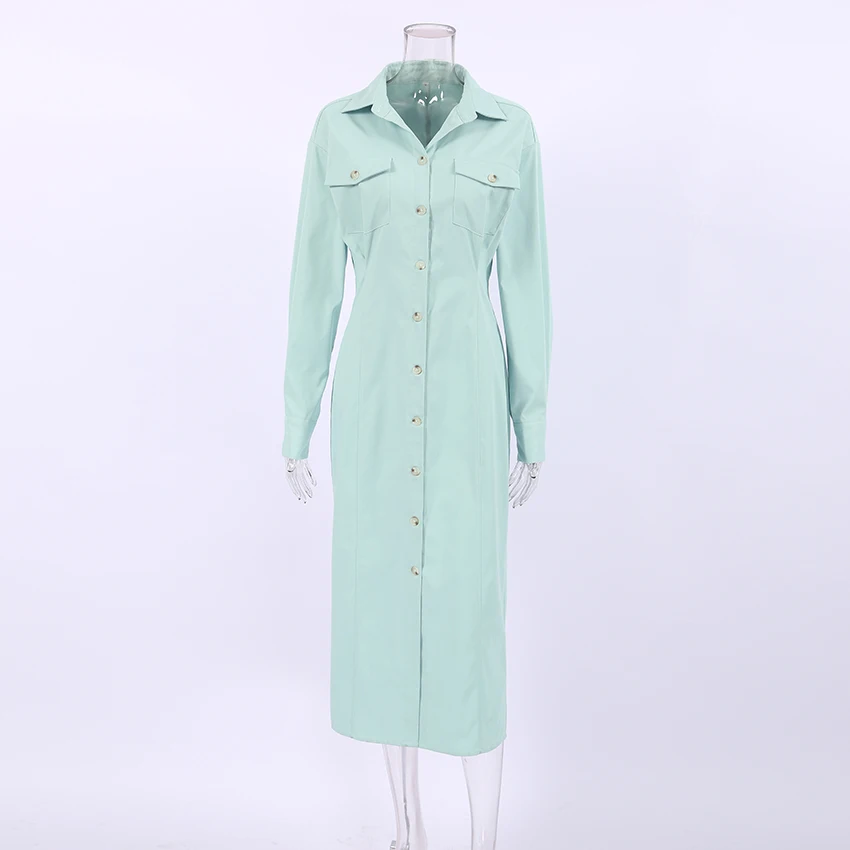 Yipinpay Elegant Women Cyan Office Dress Long Sleeve Split Midi Dresses Fashion 2023 Single-Breasted Ladies Lapel Dress Chic