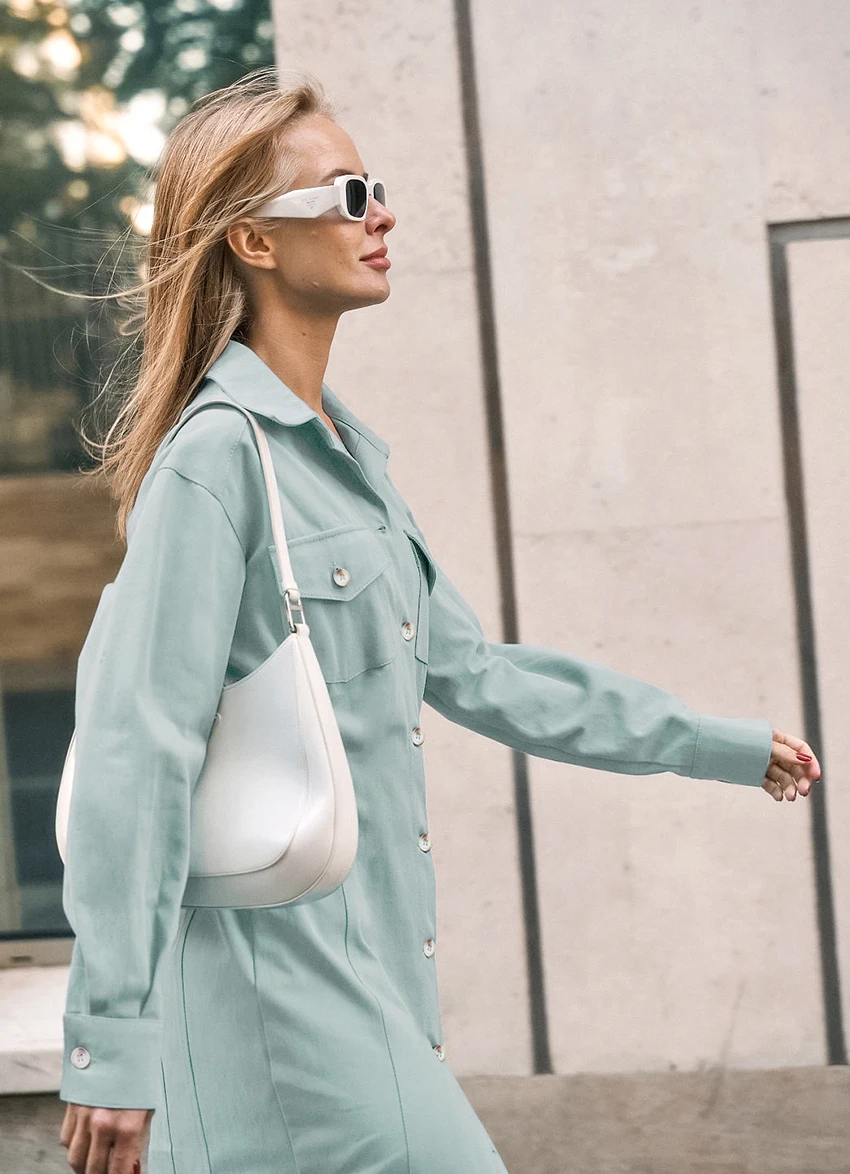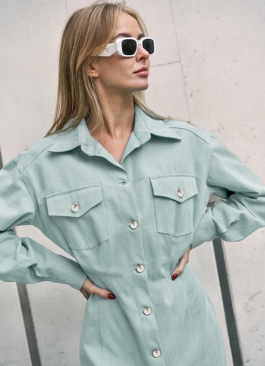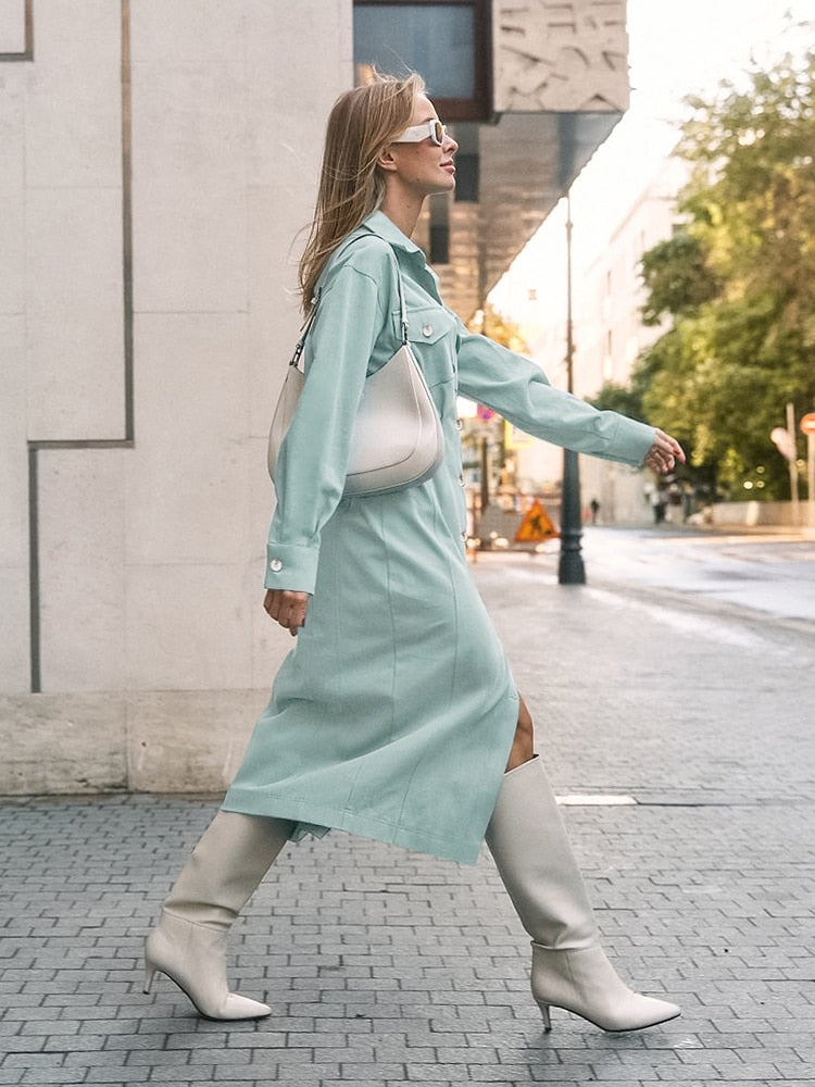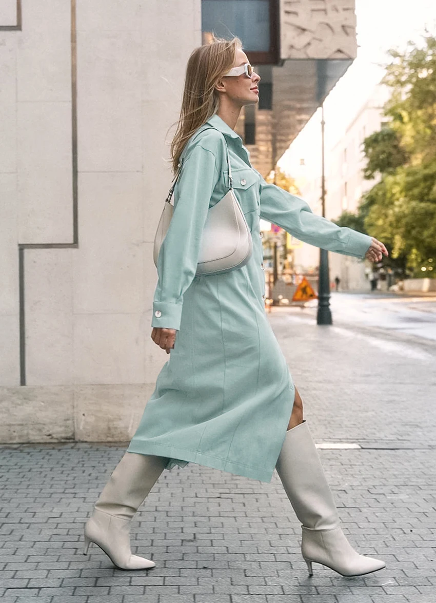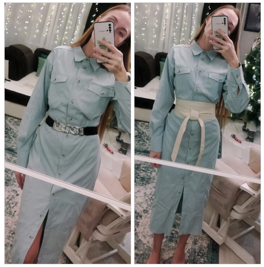 Yipinpay Elegant Women Cyan Office Dress Long Sleeve Split Midi Dresses Fashion 2023 Single-Breasted Ladies Lapel Dress Chic