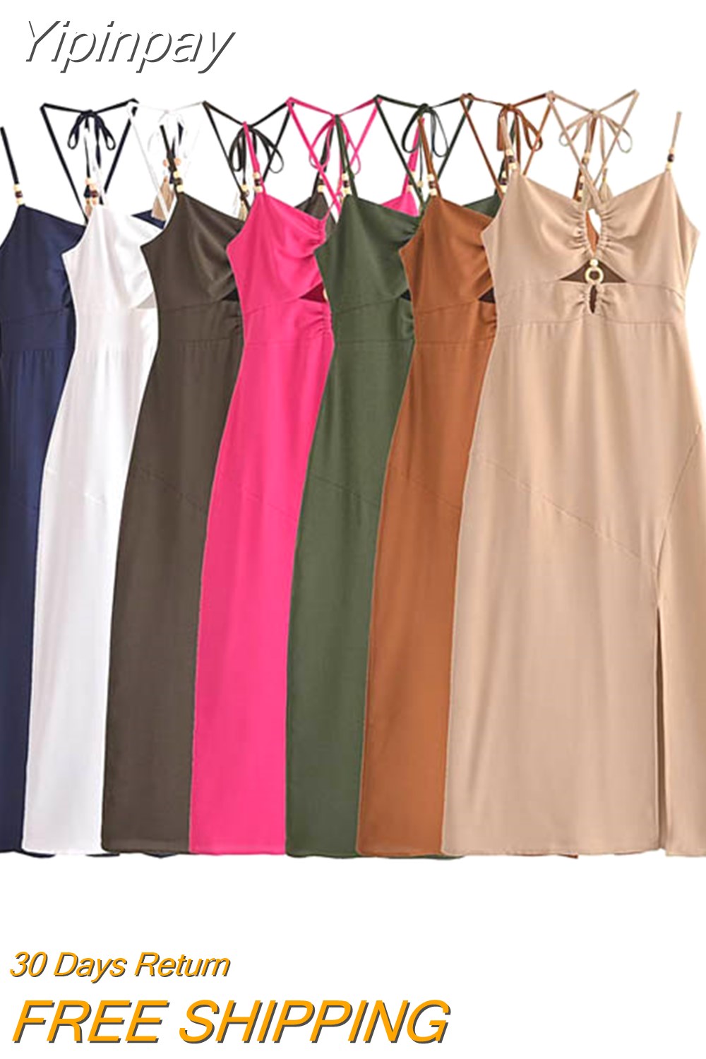Yipinpay Fashion Dresses for Women 2023 Summer New In Dresses Female Chic and Elegant Slip Dress Ladies Slim Backless Sexy Dress